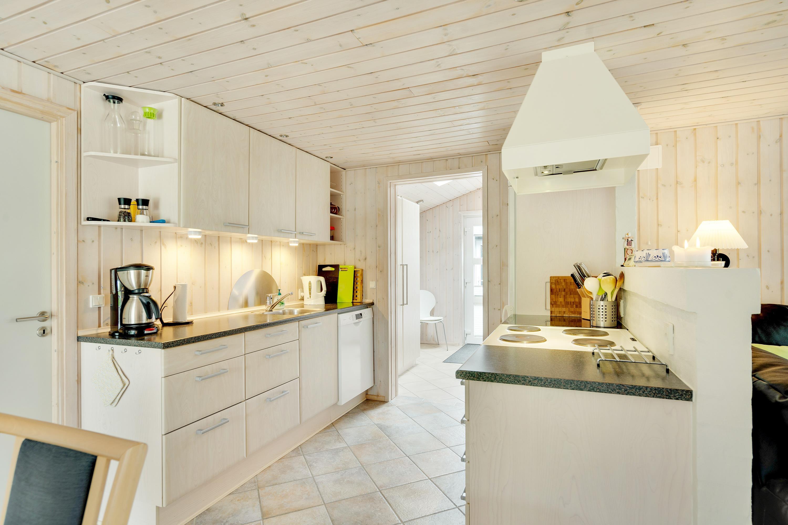 Allerede ved første indtræden vil I føle, hvordan feriestemningen sænker sig over jer. Omgivelserne er både lyse og indbydende, og den moderne indretning med både opvaskemaskine, vaskemaskine og tørretumbler sørger for, at I får en dejlig afslappende ferie. Køkkenet er udstyret med alt, hvad feriekokken behøver.