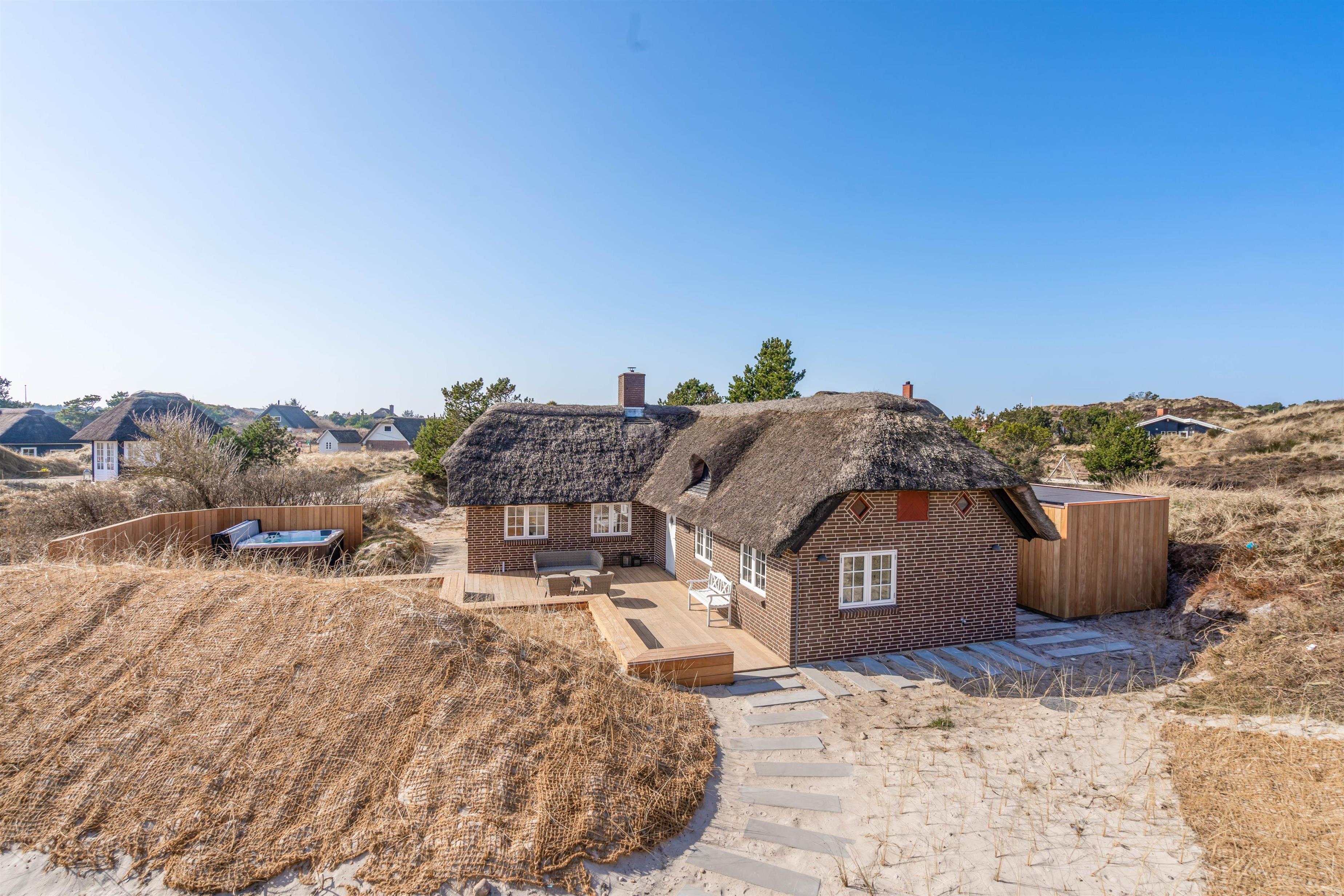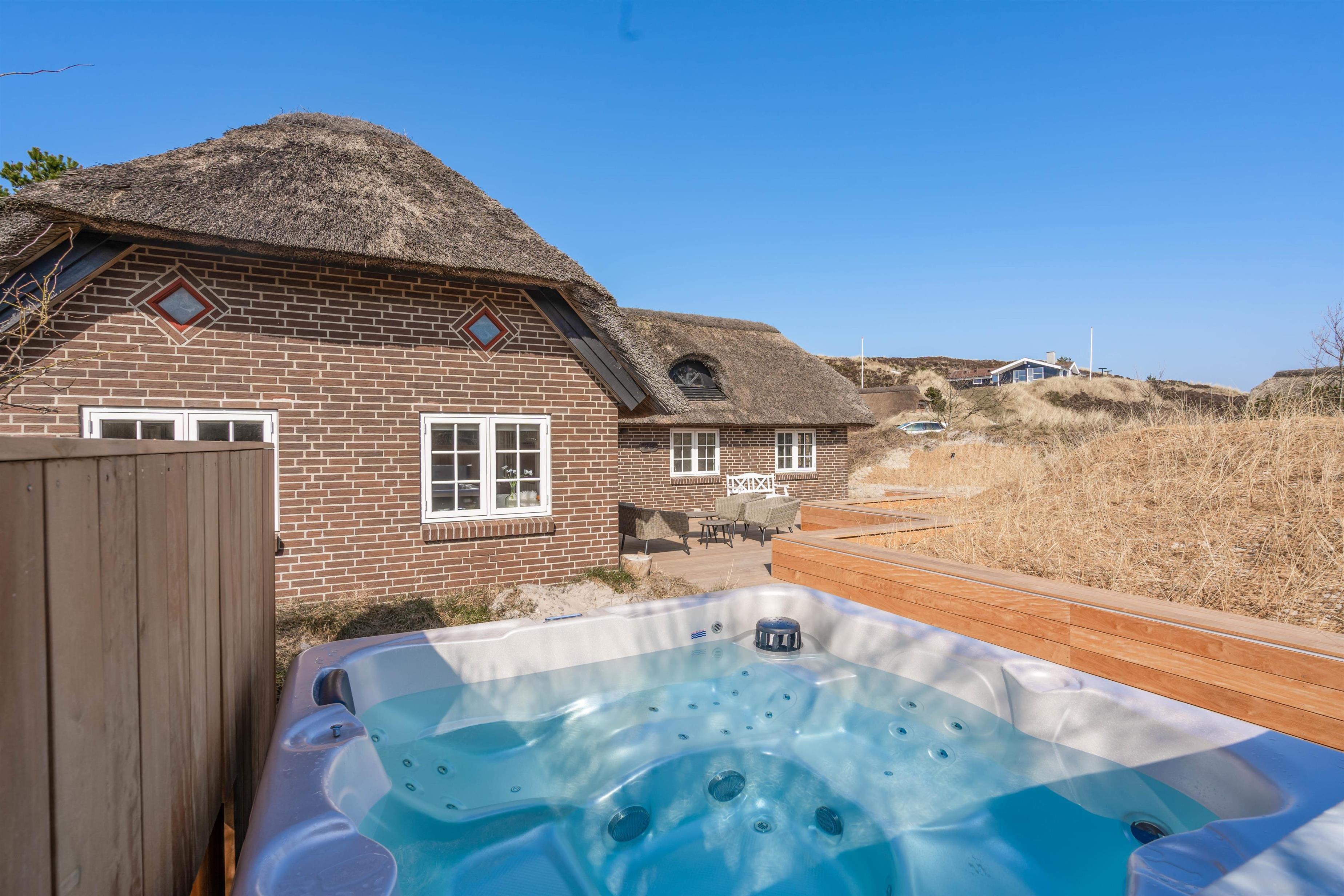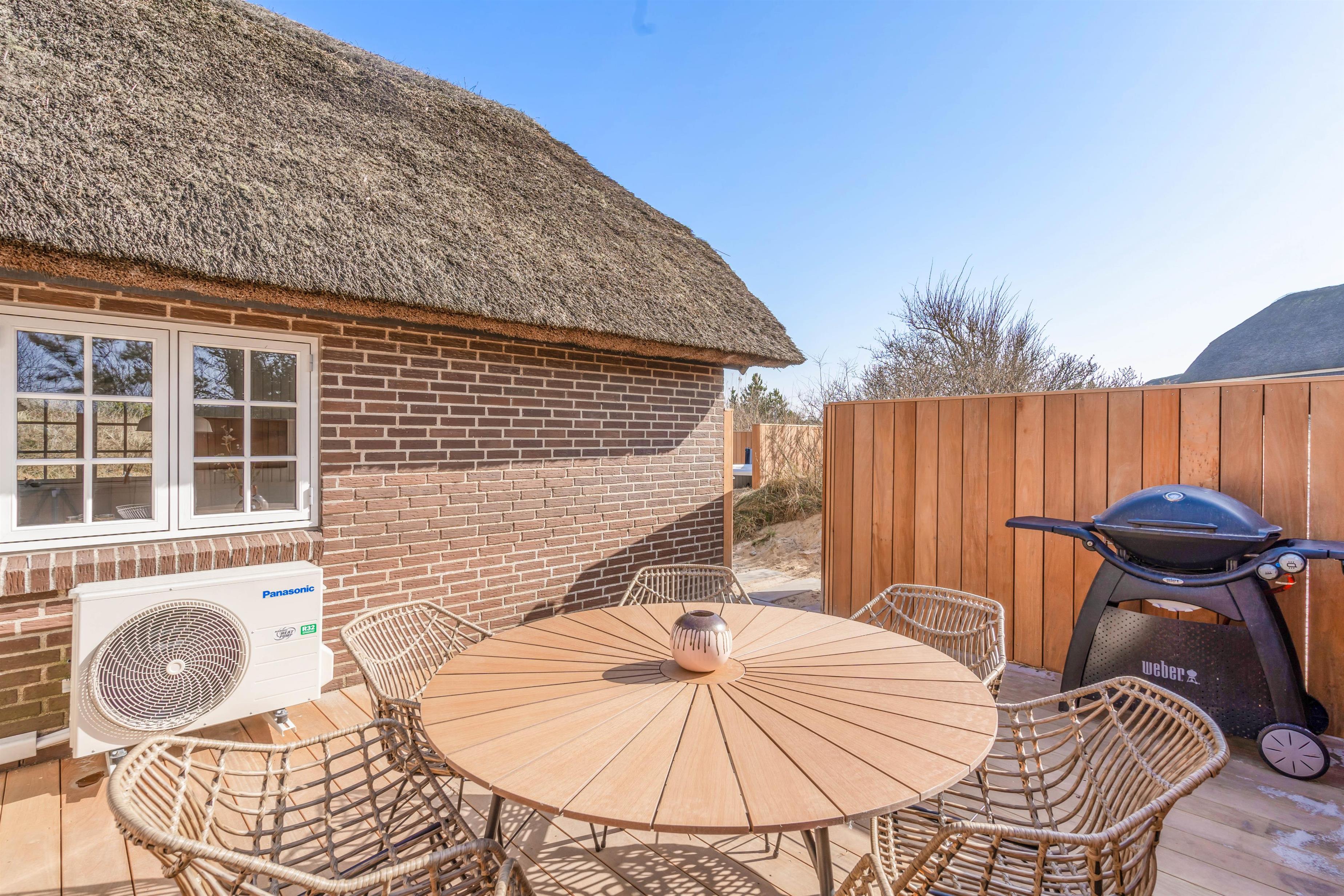 Feriehuset ligger på en dejlig let kuperet naturgrund. Husets terrasse ligger fint i læ og indbyder ikke kun til solbadning og afslapning, men til lange hyggelige grillaftener med familien eller vennerne. I 2022 fik feriehuset også en lækker opgradering udendørs med blandt andet en ny, stor terrasse, trampolin, udendørs spa og en udebruser.
