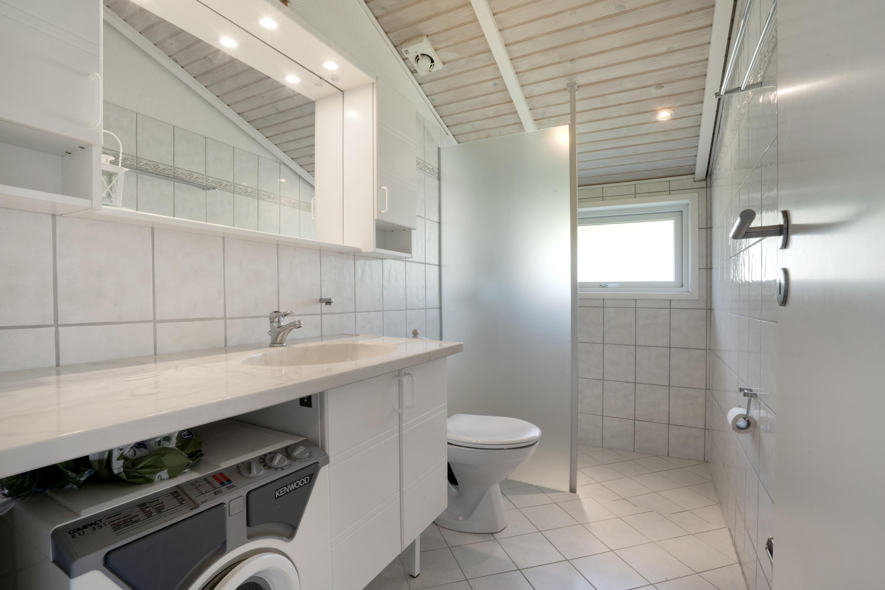 Udover alrummet er der 3 soveværelser i feriehuset, hvor I kan få jeres skønhedssøvn om natten, så I er klar til de kommende feriedage. Derudover er der også 1 badeværelse i sommerhuset (med gulvvarme). På badeværelset står der også en vaskemaskine, så I kan få vasket tøj på ferien.