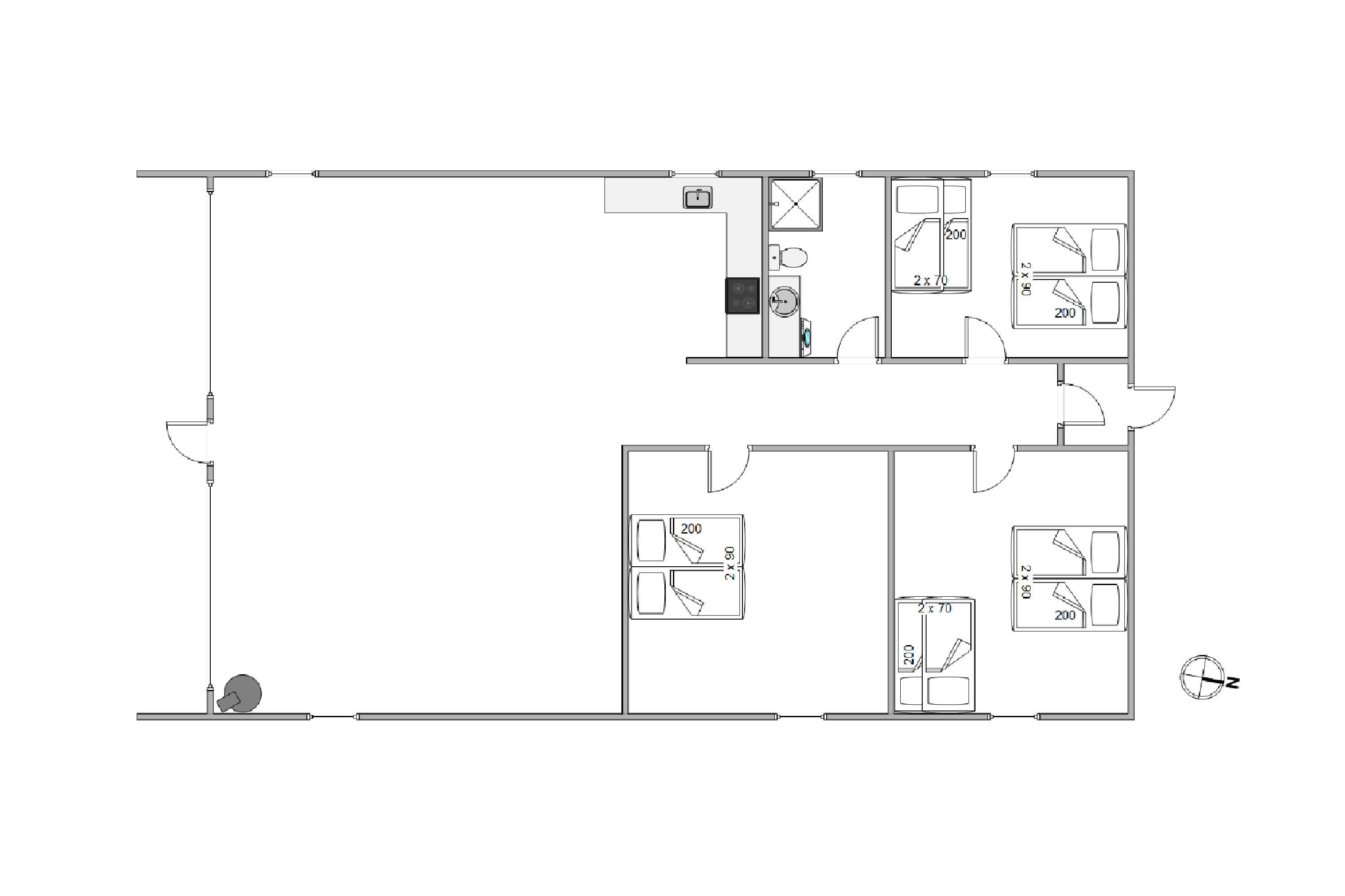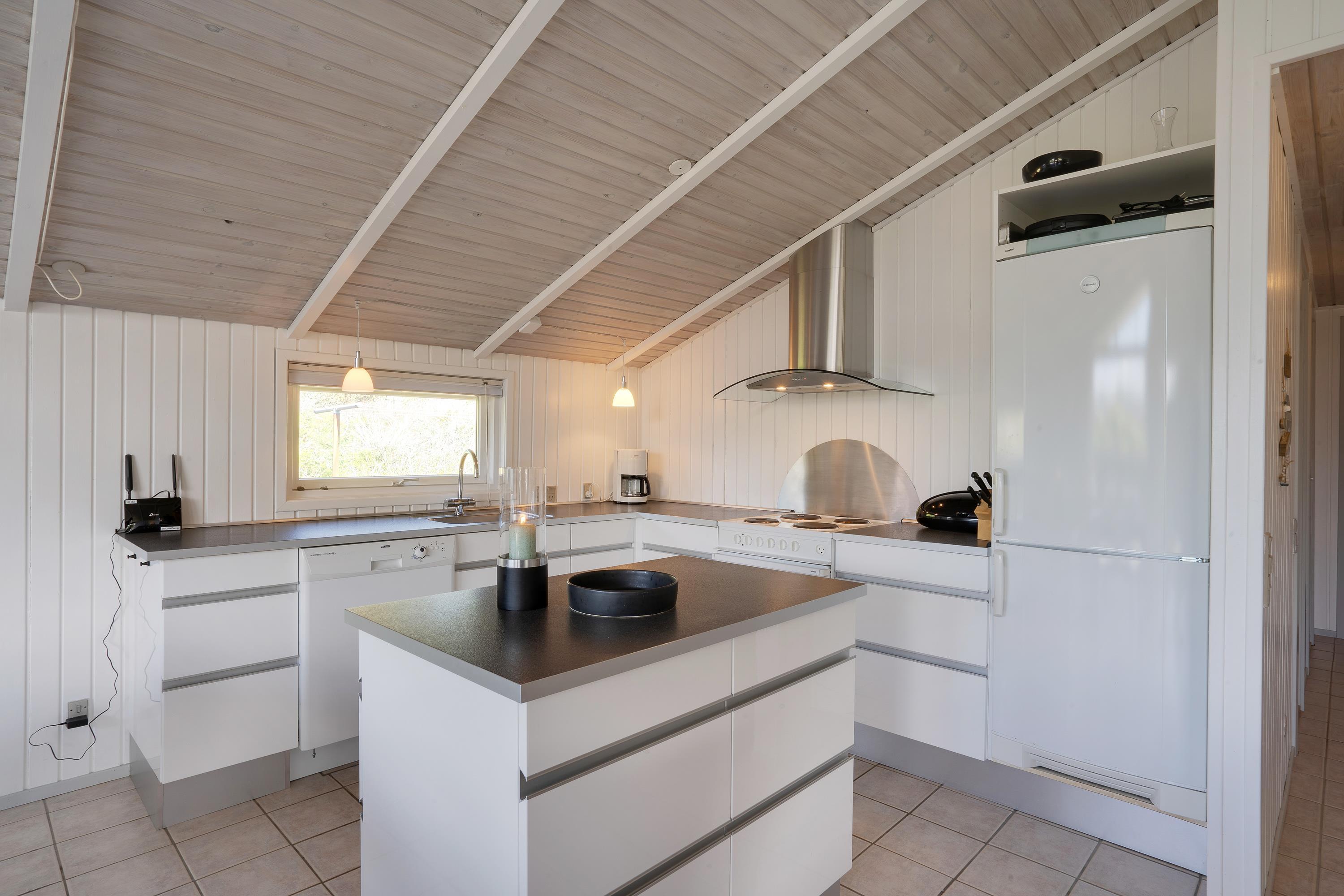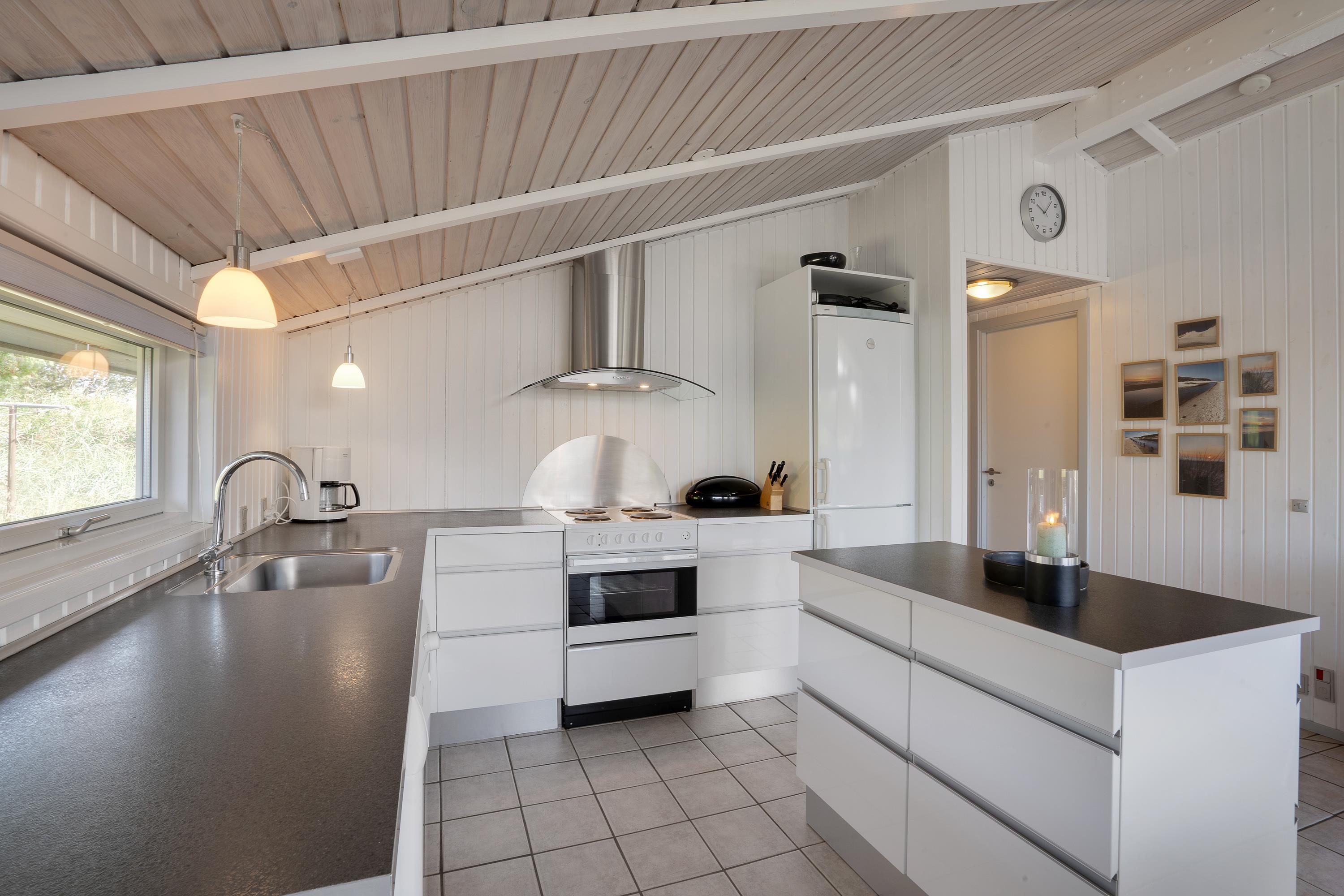 Det store alrum, der forener køkken, stue og spiseafdeling, bliver jeres store samlingspunkt på ferien. I køkkenet kan I være sammen om madlavningen, som I efterfølgende kan samles om og nyde ved spisebordet. Efter middagen skal I ikke bekymre jer om opvasken – den klarer opvaskemaskinen.