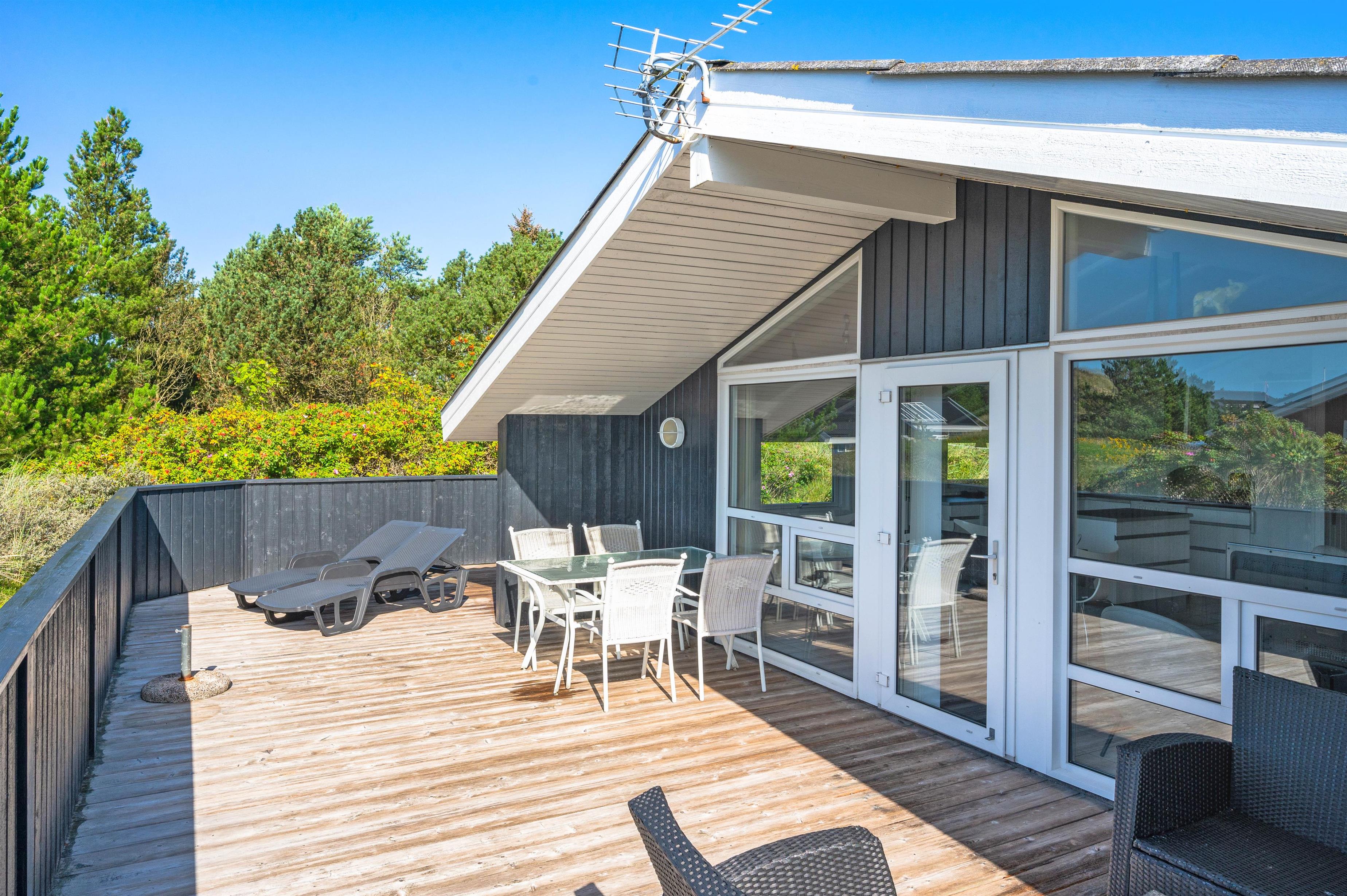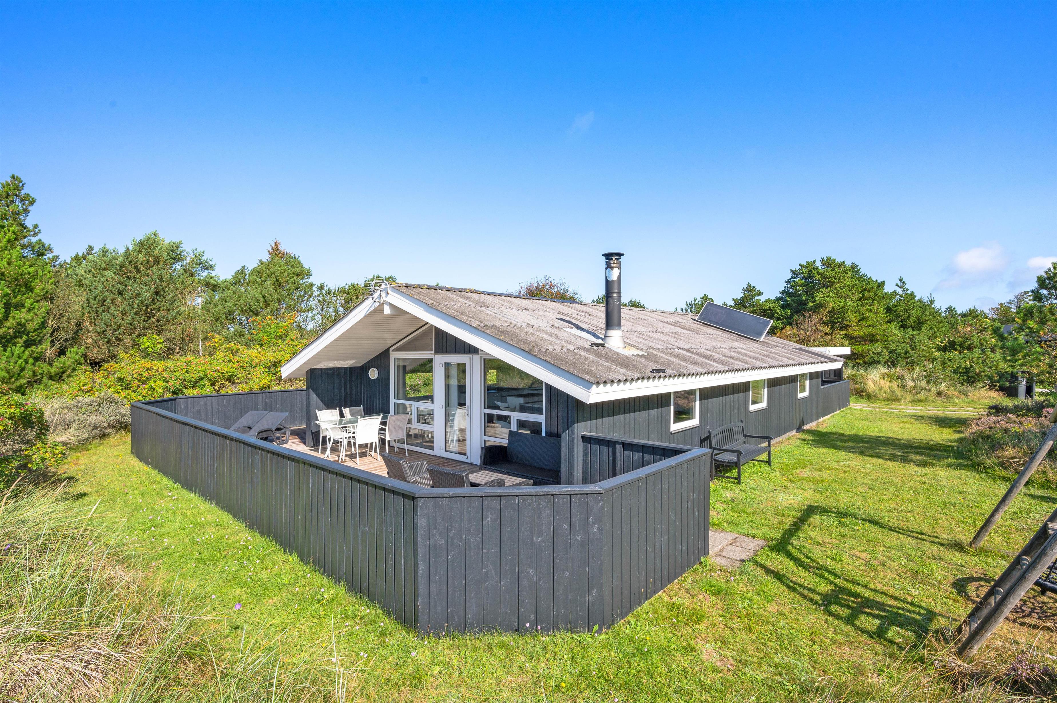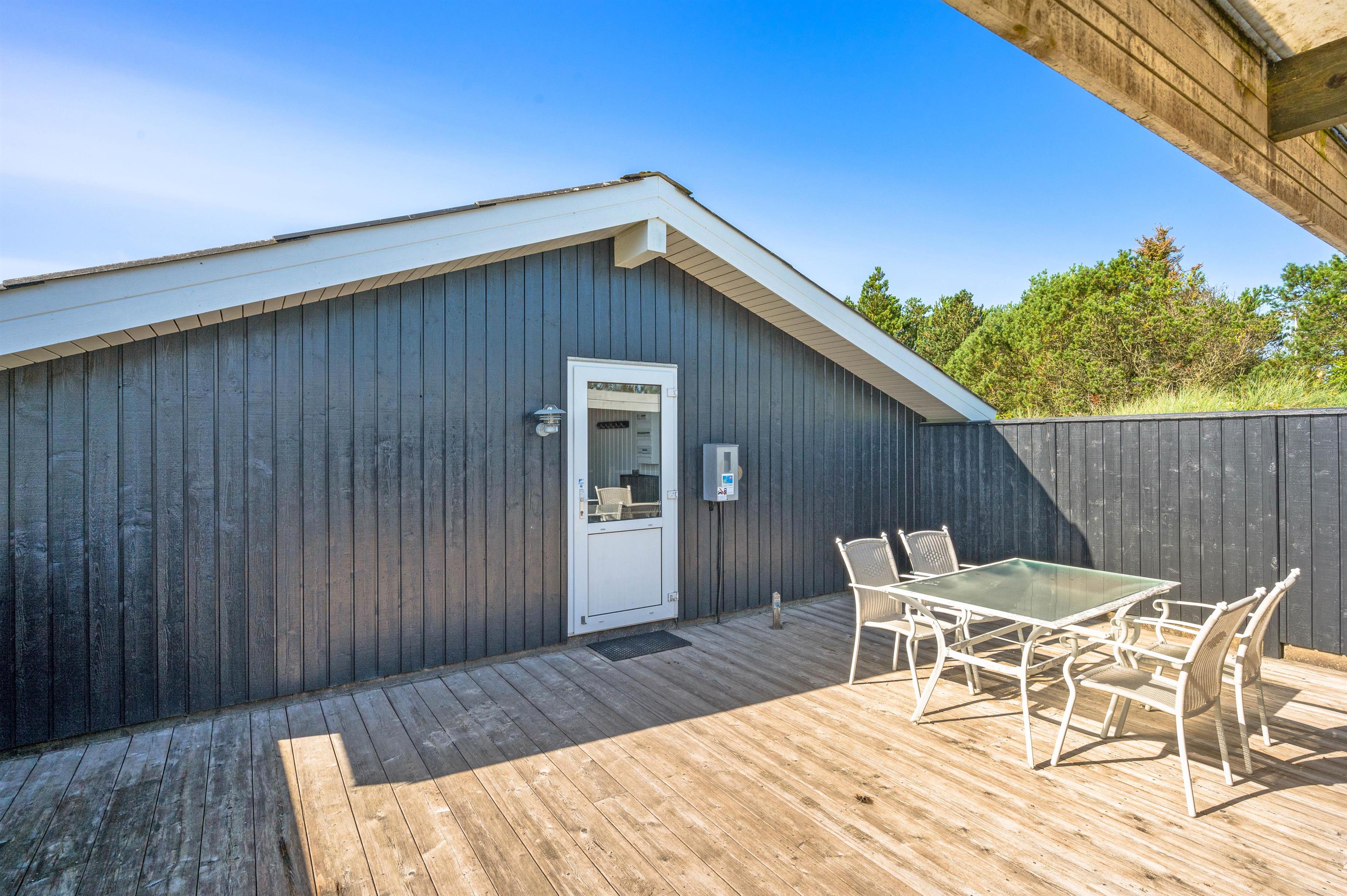 På de varme feriedage kan I rykke ud på sommerhusets terrasse. Her har I både havemøbler, liggestole og en grill til rådighed, så I kan få mest muligt ud af de varme feriedage. Terrassen er sydvendt, så her kan I nyde solens varme stråler det meste af dagen. Terrassen er desuden lukket og delvist overdækket, så I både kan sidde i ly og læ.