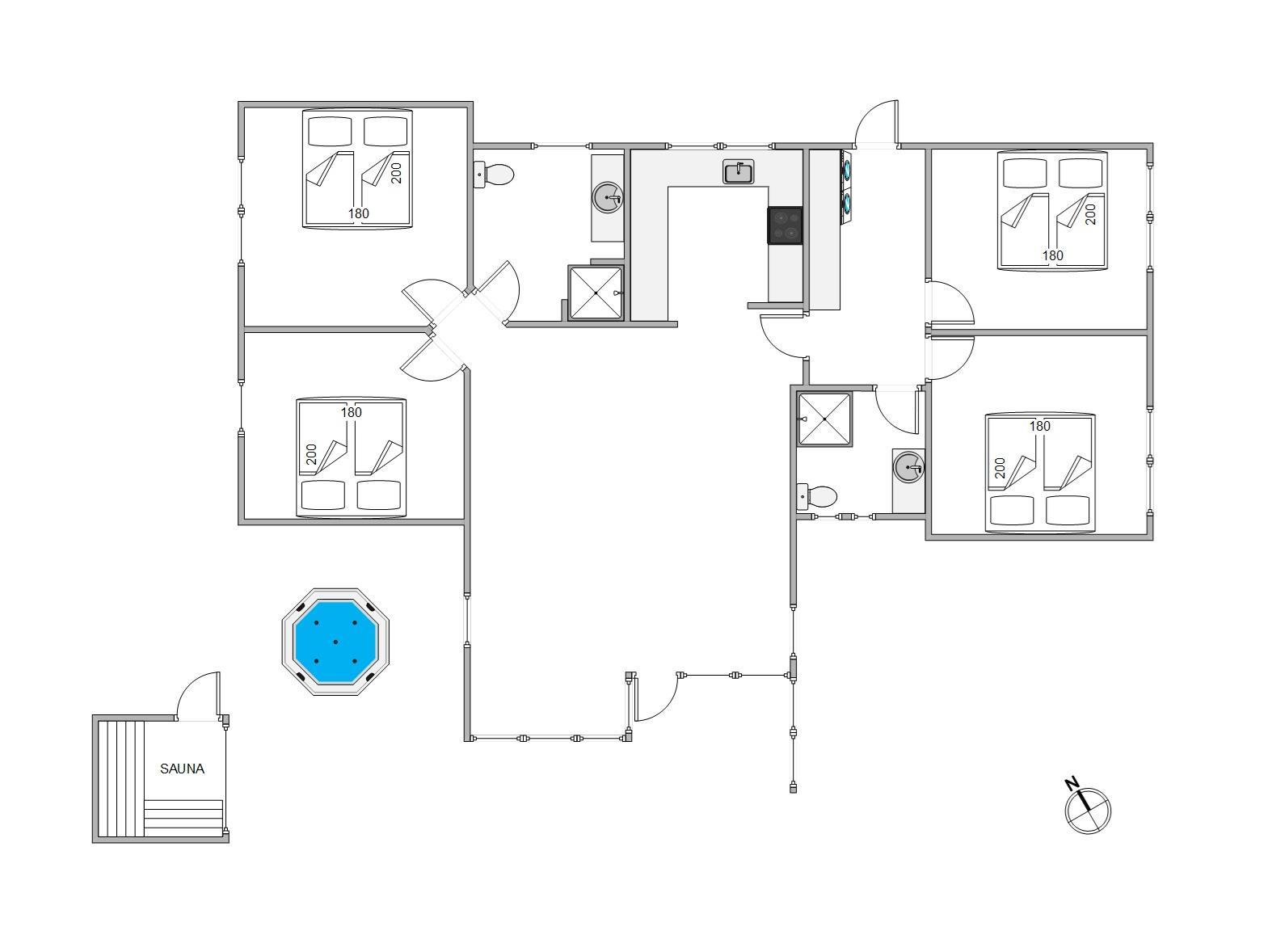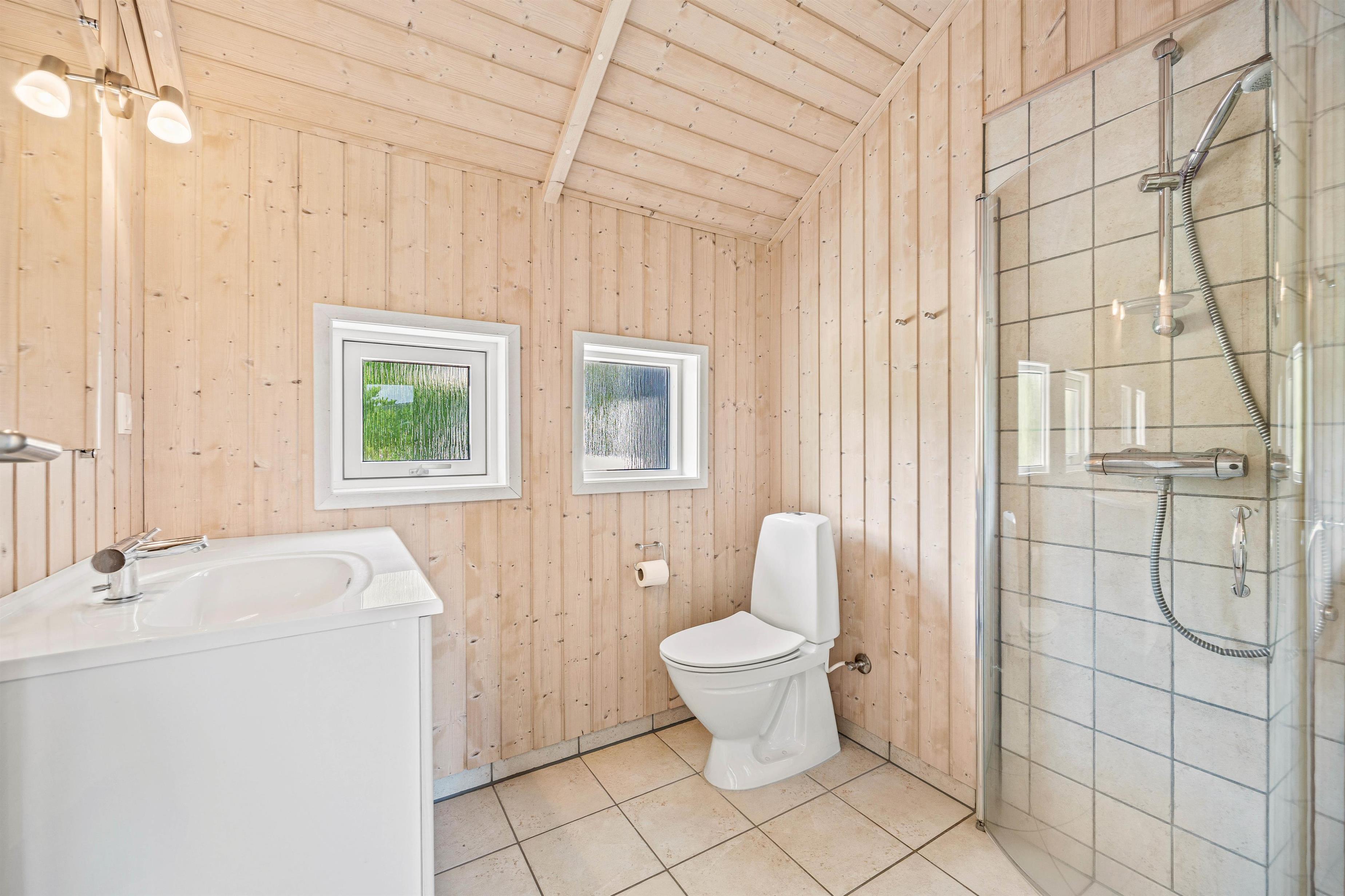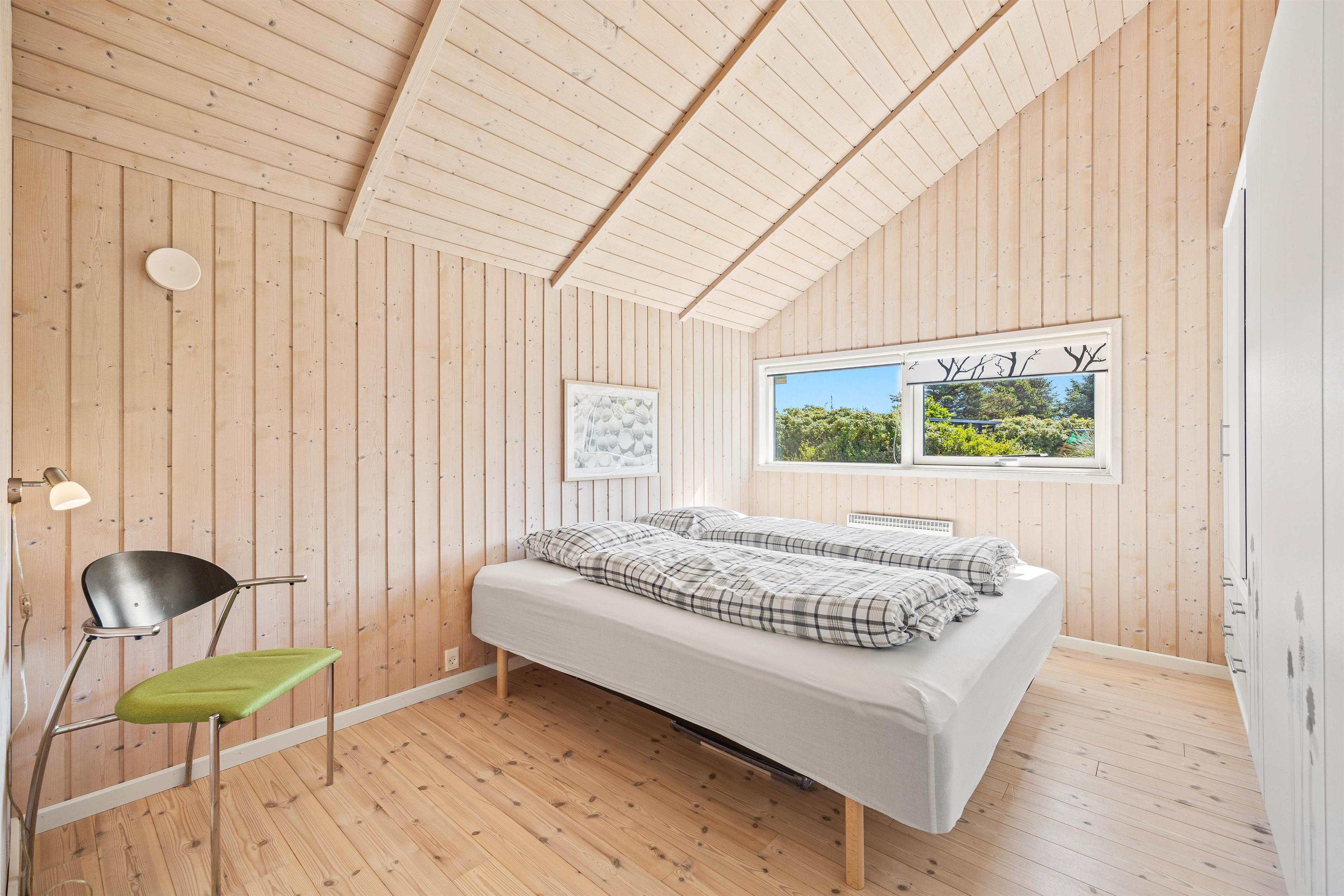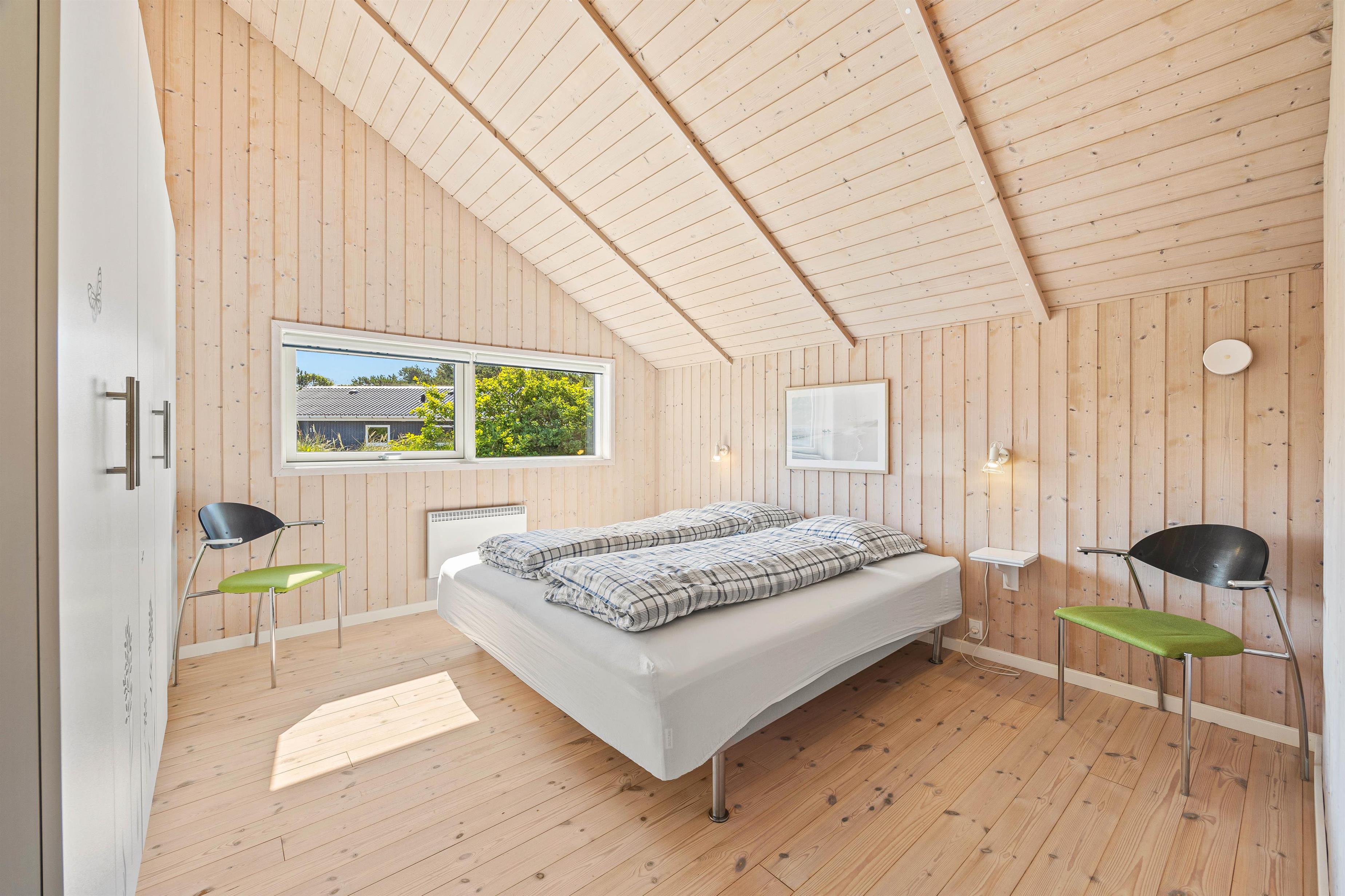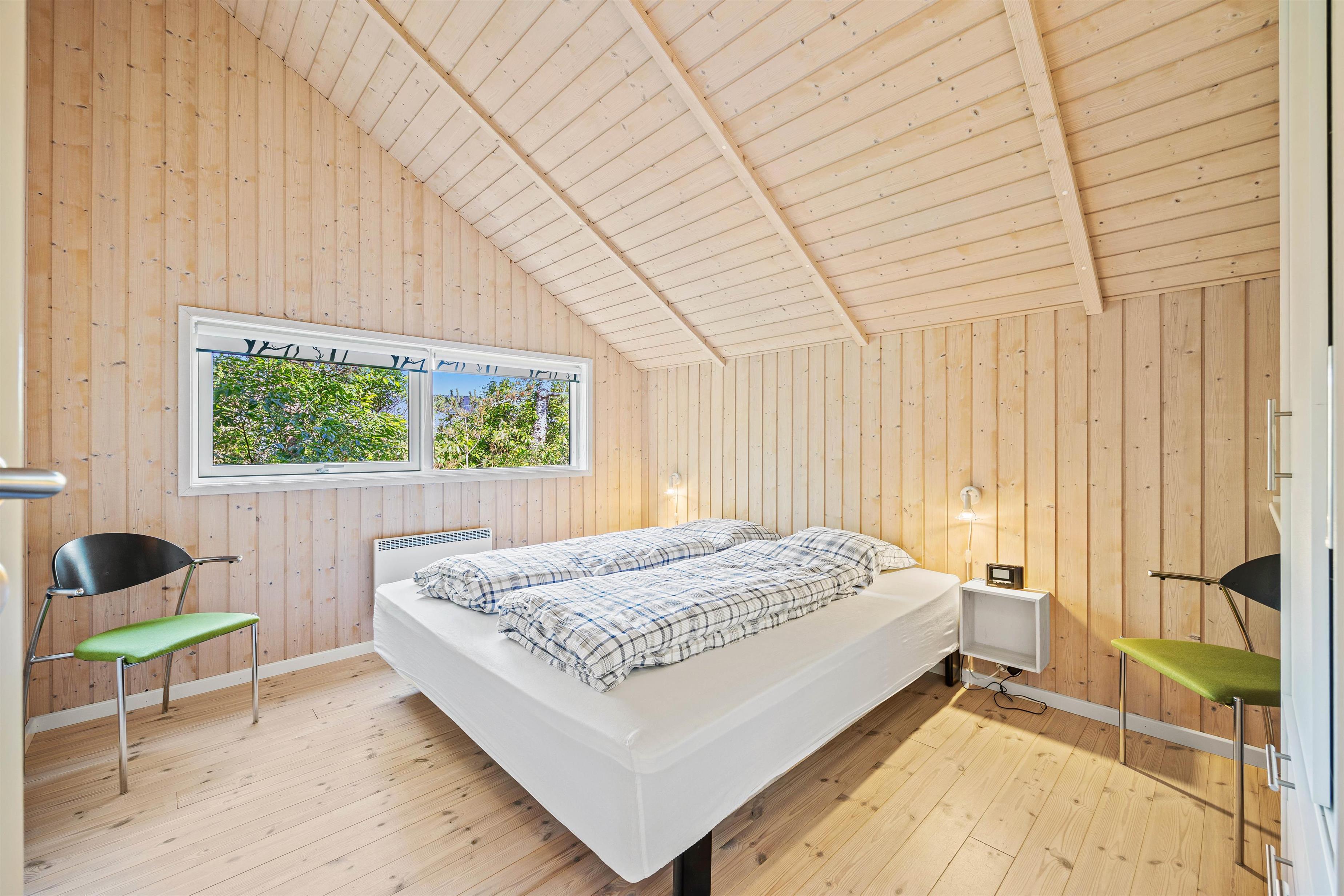 Det 121m² store sommerhus har 4 yderst rummelige soveværelser. Alle soveværelser er indrettet med dobbeltsenge, og det ene af soveværelserne indeholder, udover en dobbeltseng, også en køjeseng – et ideelt værelse til børnefamilien. Sommerhusets lyse og praktiske badeværelser har indlagt gulvvarme.