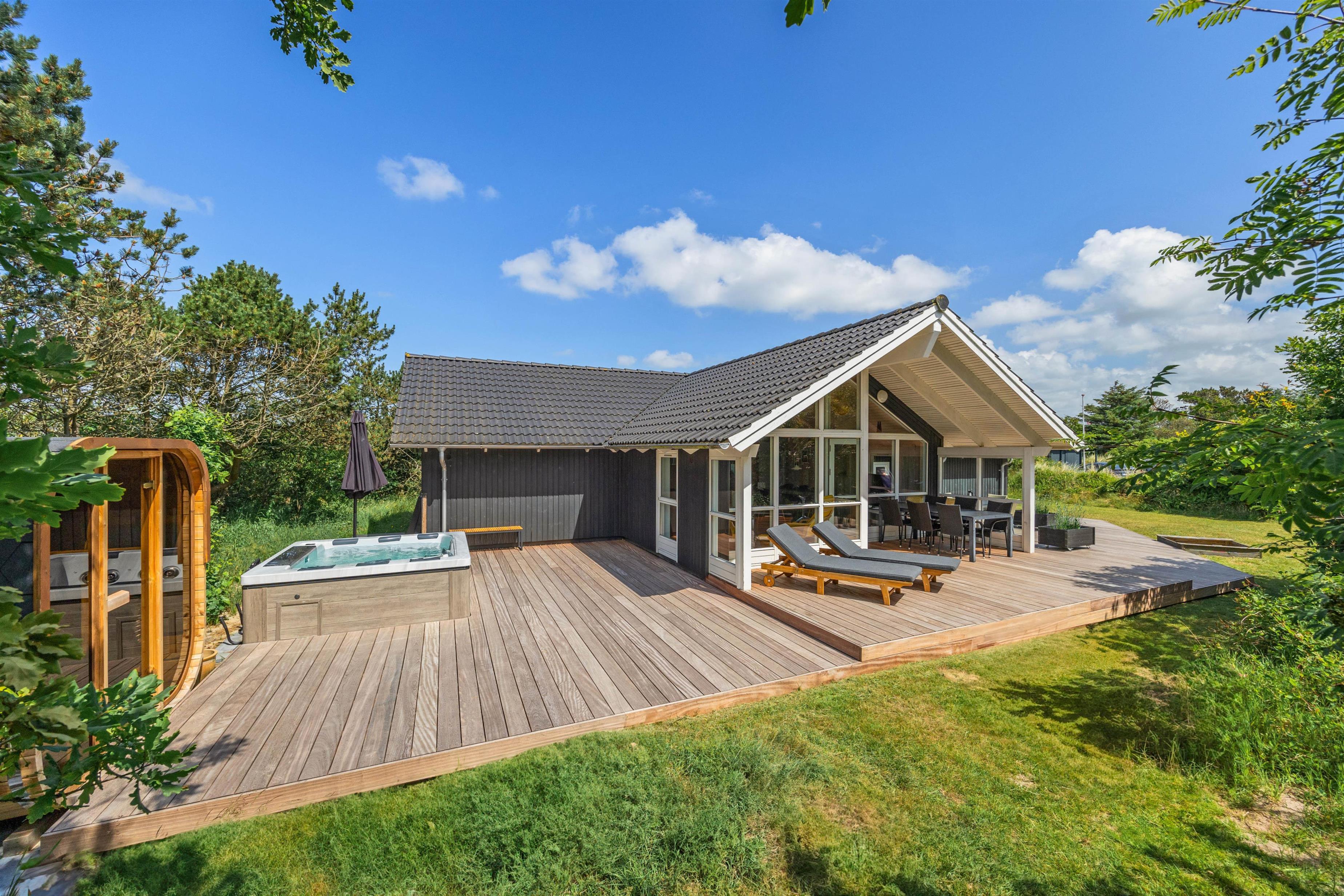 Er I på udkig efter et hyggeligt sommerhus med udespa, der ligger i rolige og naturskønne omgivelser? Så er dette skønne sommerhus på Musvågevej 13 beliggende i Henne Strand, med plads til op til 8 personer, et oplagt sted til en skøn ferie – om enten I er flere familier eller flere par, der gerne vil tage af sted sammen.