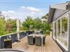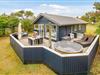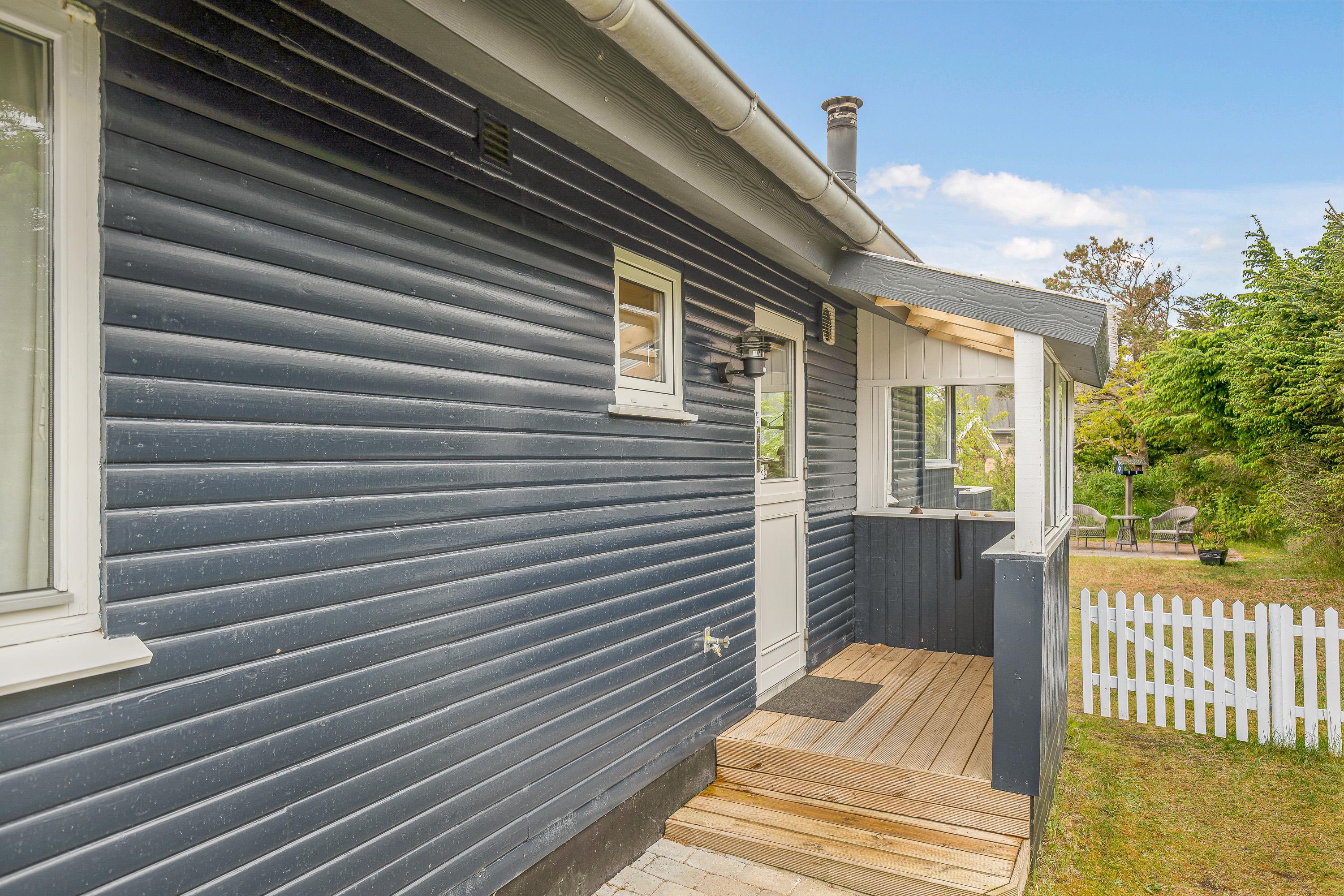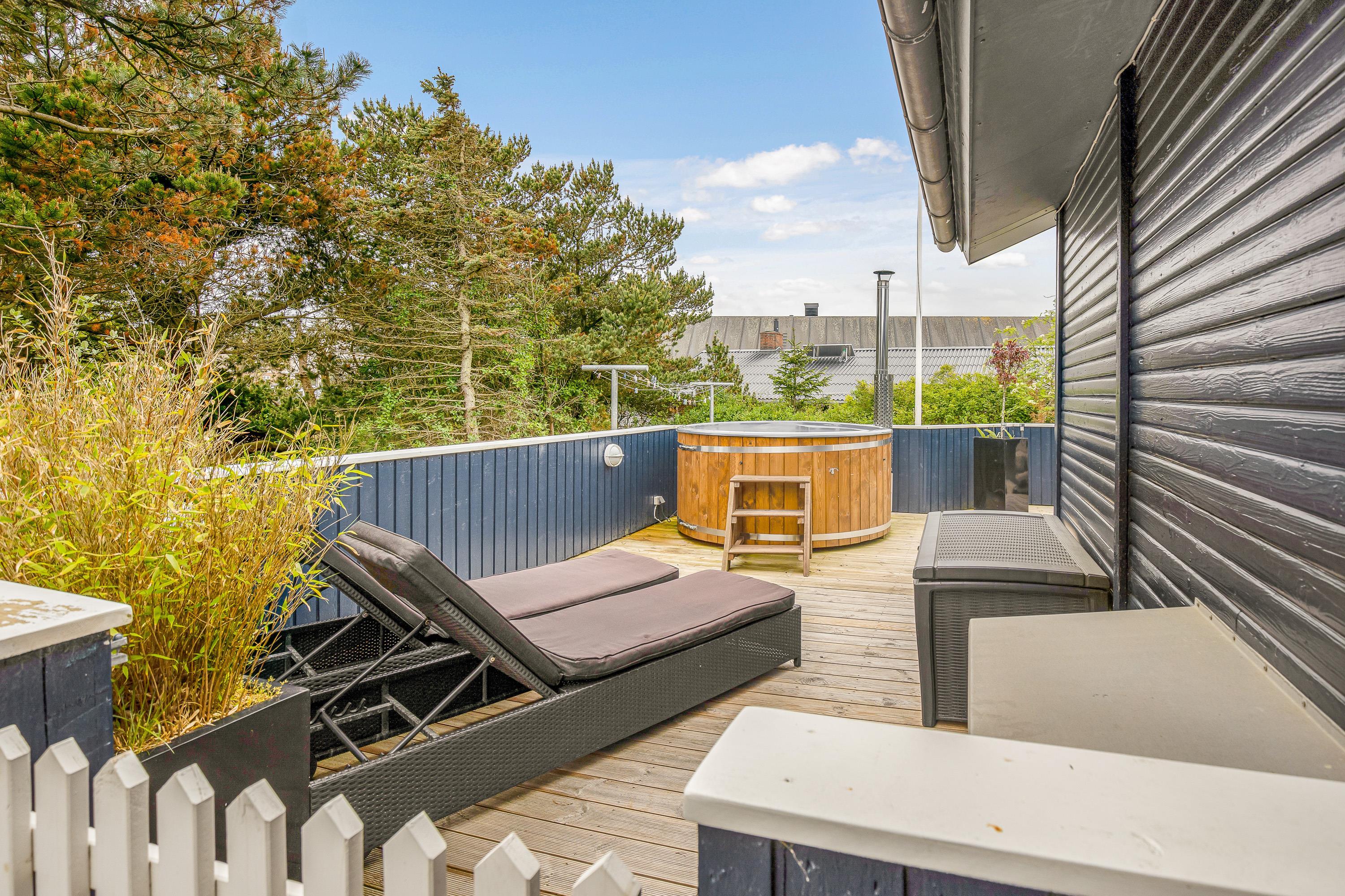 På den store, lukkede terrasse i baghaven finder I gode muligheder for at nyde vejret udenfor. Sommerhuset har grill, havemøbler, solvogne og parasol, så her kan I opholde jer og tilberede de lækreste feriemåltider på grillen. Her finder I også vildmarksbadet, så når mørket falder på, kan I sætte jer til rette i det det store kar og bare slappe af mens I nyder varmen.