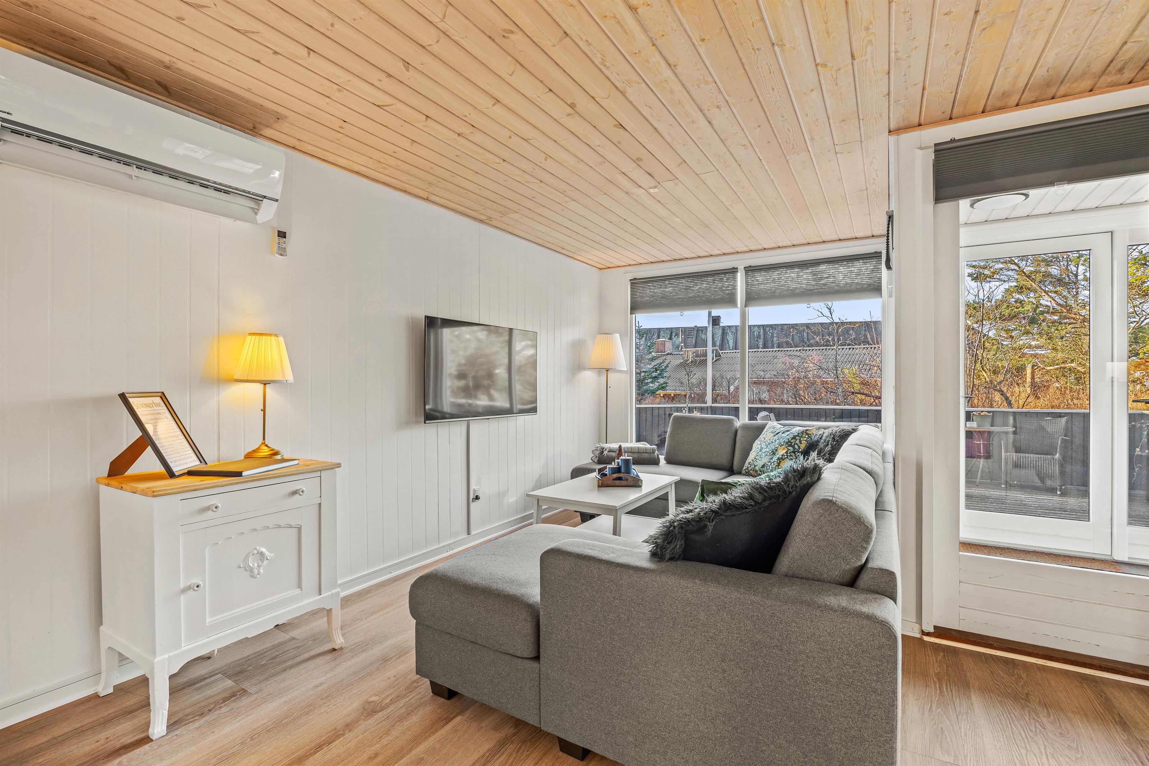 Derudover er der også både vaskemaskine og tørretumbler, så skulle der komme en plet på yndlingstrøjen, kan den være ren igen på kort tid. Badeværelset, der også blev renoveret i 2011, er udstyret med gulvvarme og i den åbne stue og spisestue er en varmepumpe, der sørger for en behagelig temperatur året rundt. Her finder I også brændeovnen, der spreder hygge og varme med sine knitrende flammer.
