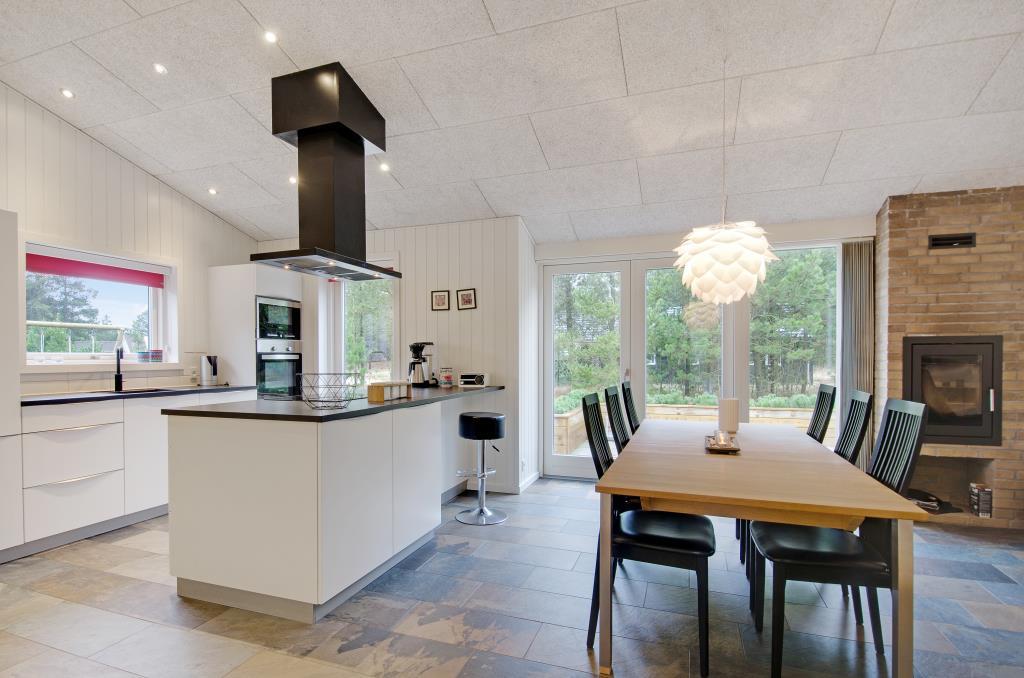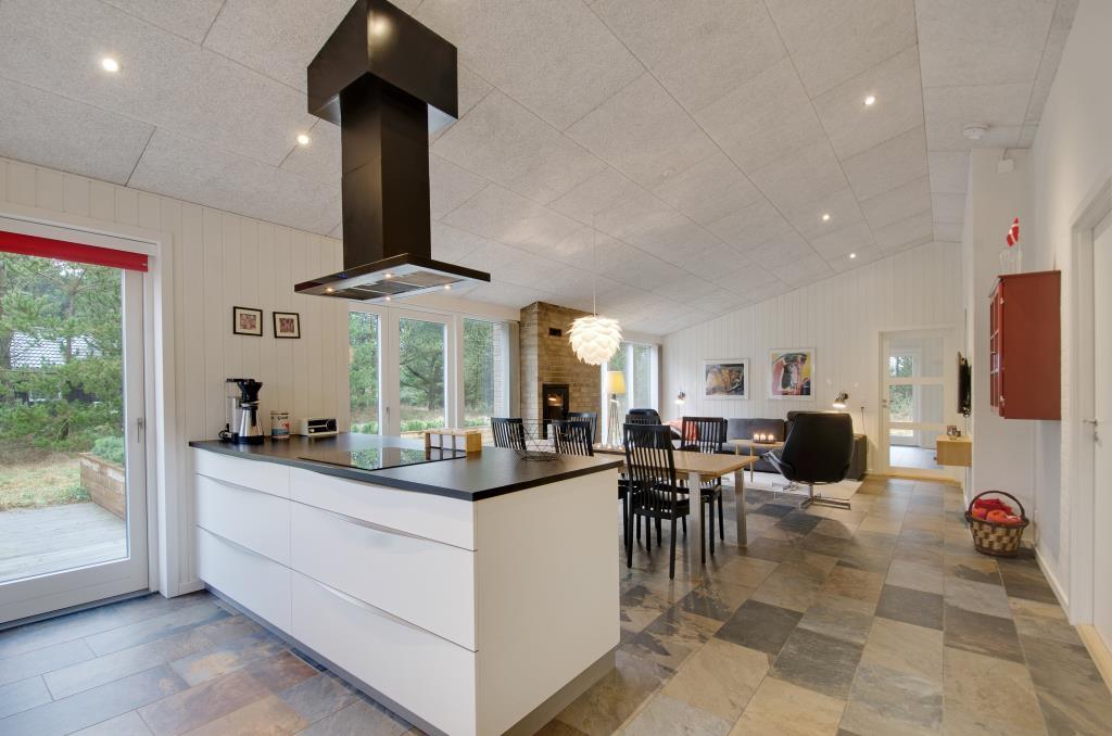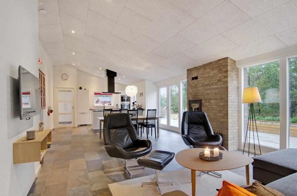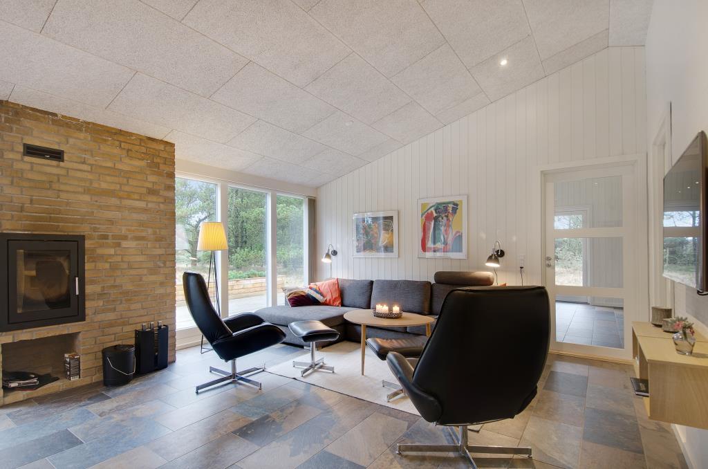 Det lækre luksushus er moderne og stilfuldt indrettet, og her er ikke sparet på noget. Der er tre rummelige soveværelse, hvoraf det ene er udstyret med fjernsyn. Feriehusets midtpunkt er den store opholdsstue med det åbne køkken, der råder over alt, hvad feriekokkene har brug for. På kolde dage sørger brændeovnen for varme og masser af feriestemning.