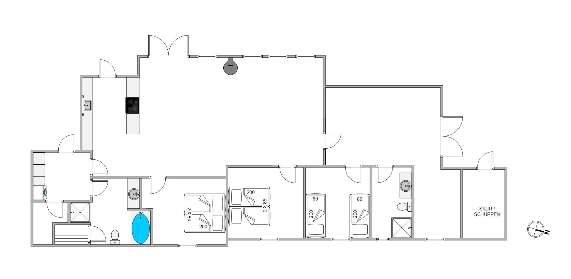 Sommerhuset i Henne råder over 2 badeværelser, og det ene gemmer på en ekstra god overraskelse i form af en sauna og et spabad. Her kan I slappe af og tanke ny energi efter en dag i den friske havluft.