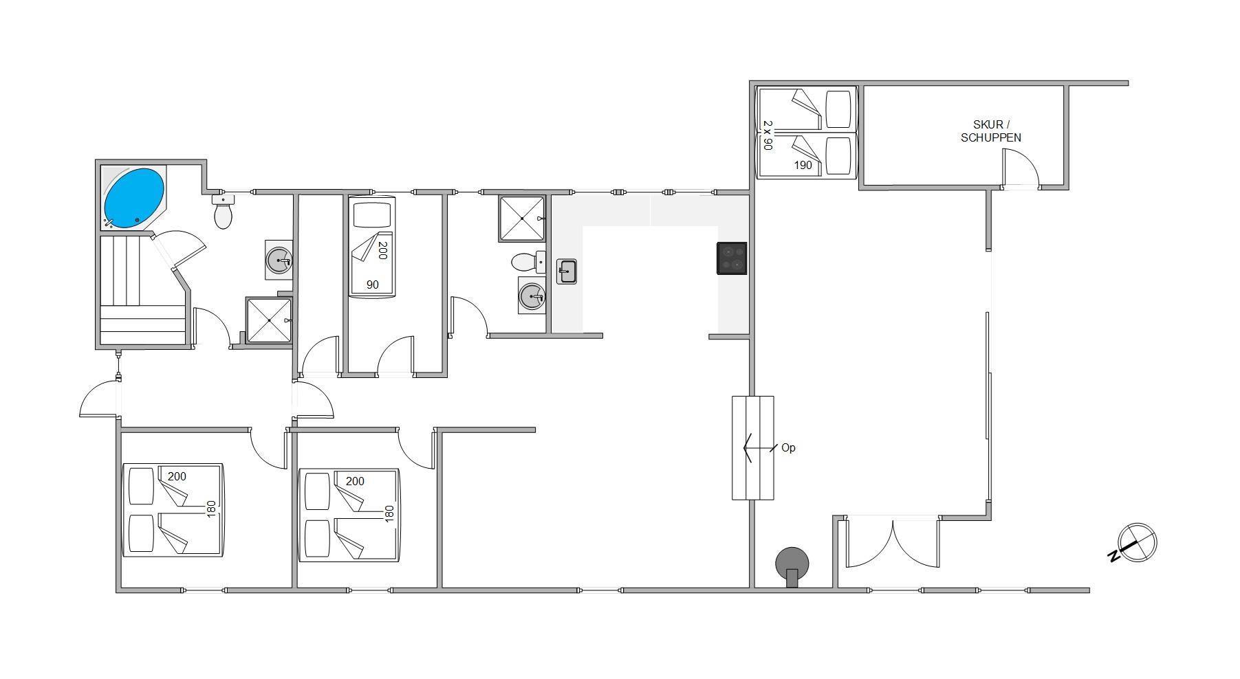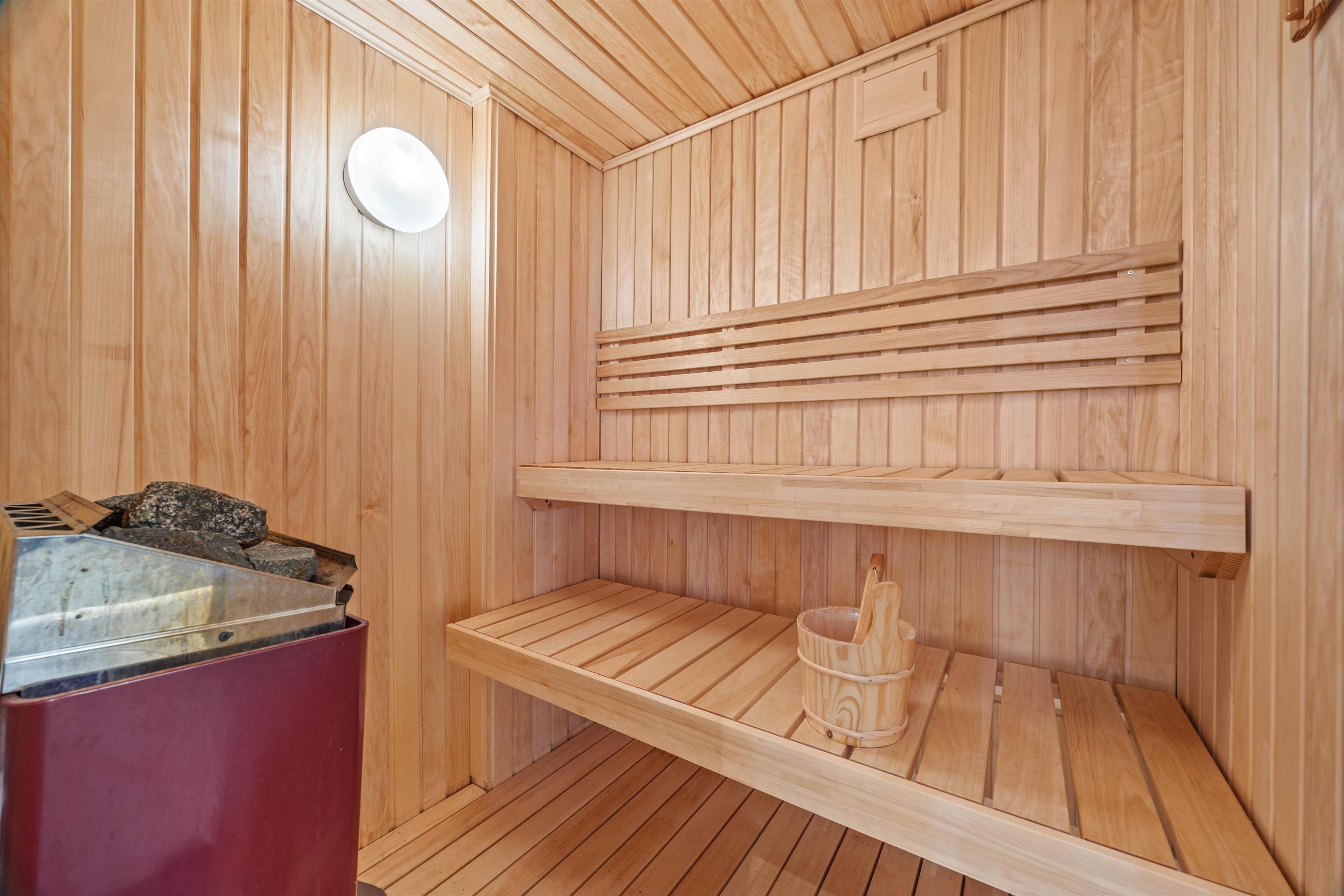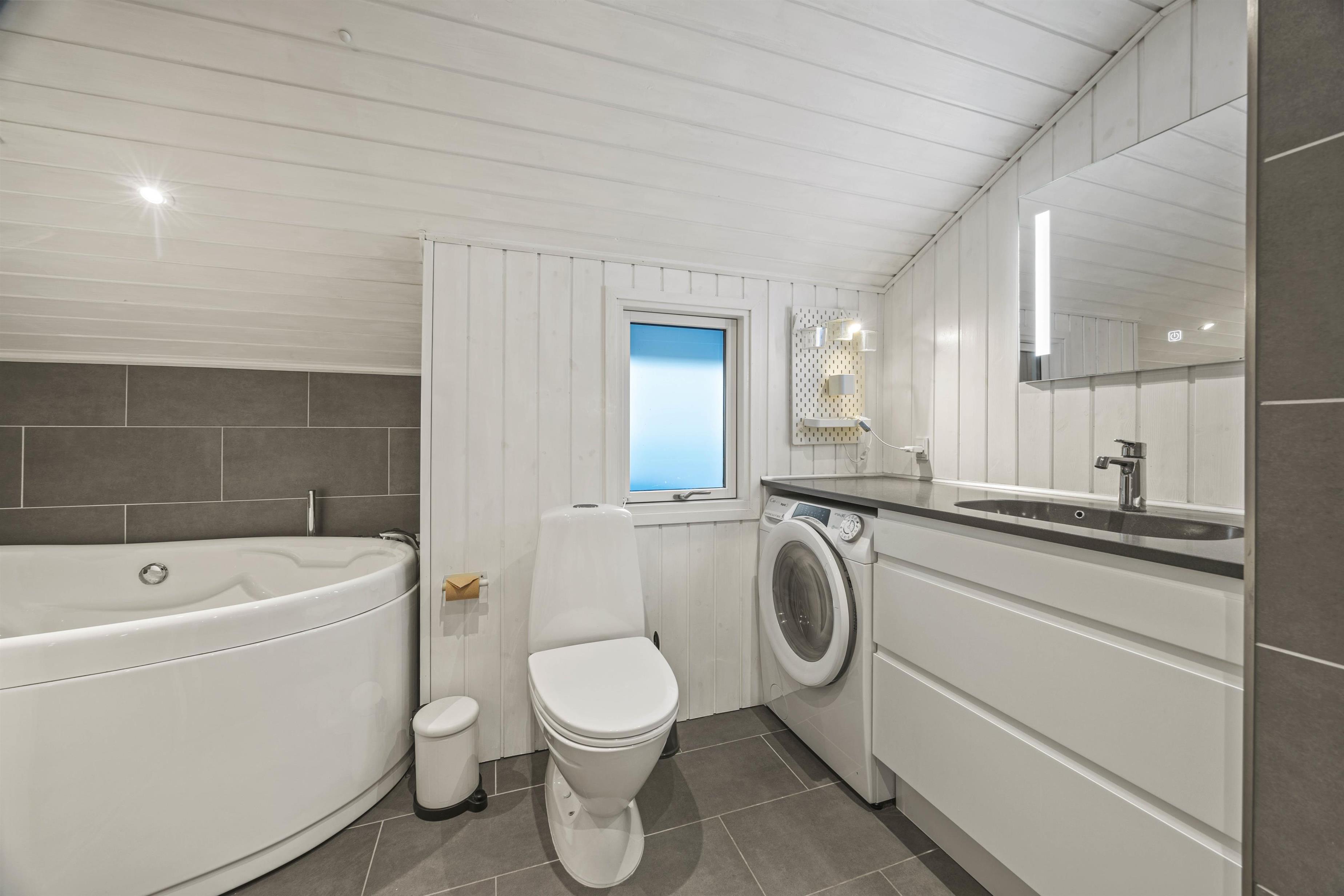 I opholdsstuen kan I nyde godt af gulvvarmen. Det samme kan I på sommerhusets 2 badeværelser. På det ene af badeværelserne finder I desuden en wellness-afdeling med spa og sauna. Her kan I for alvor kan blive forkælet med masser af afslapning i det boblende spabad og den varme sauna - her vil selv de fladeste batterier blive ladt fuldt op igen.