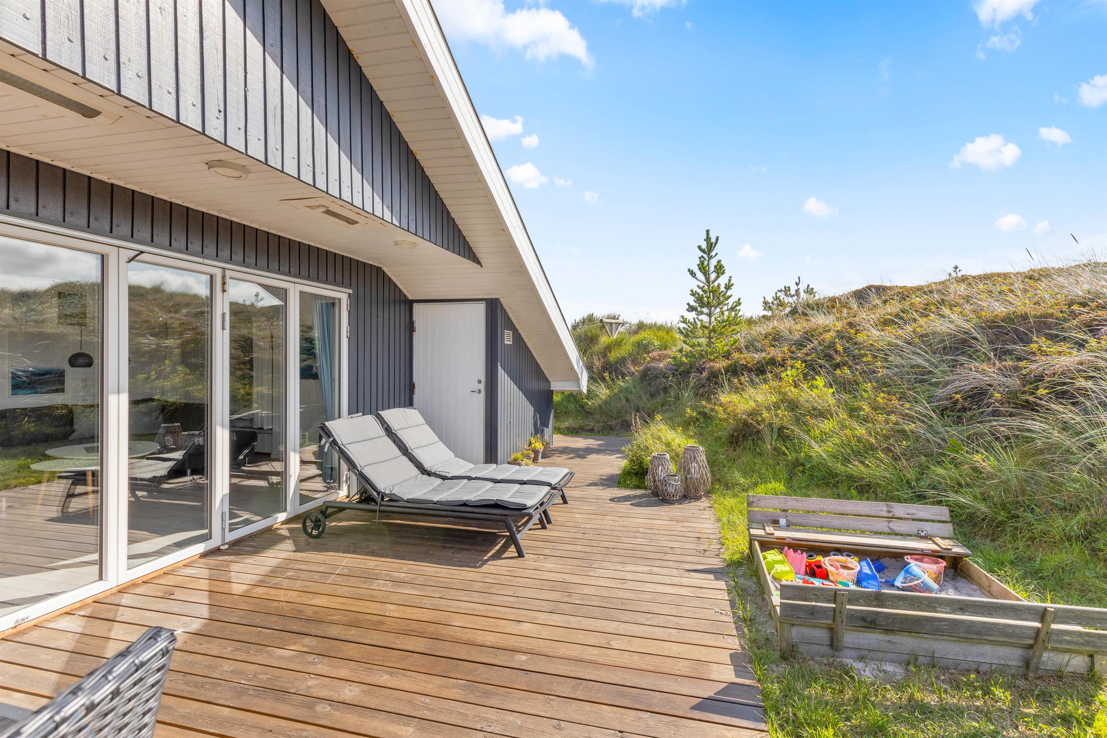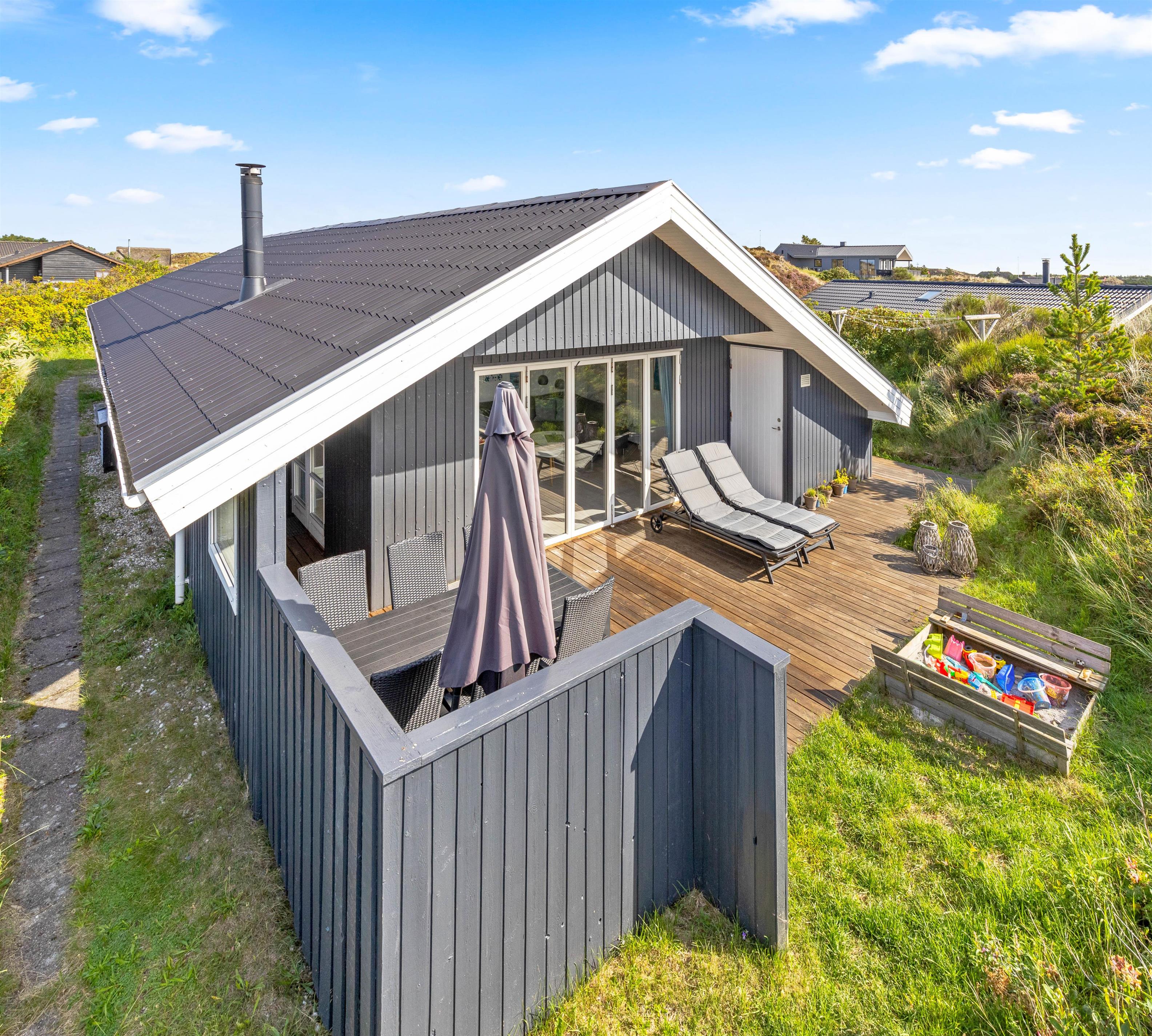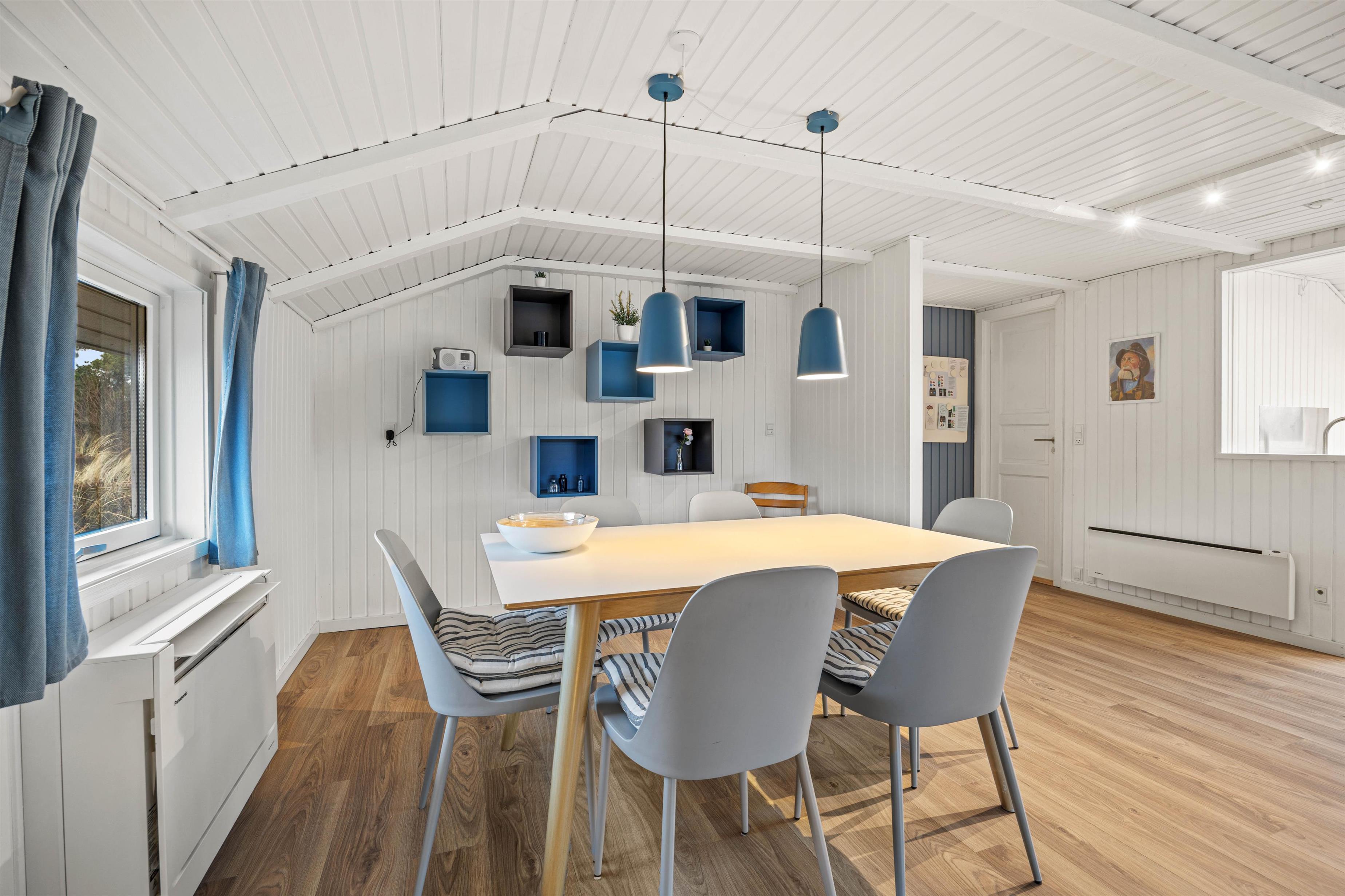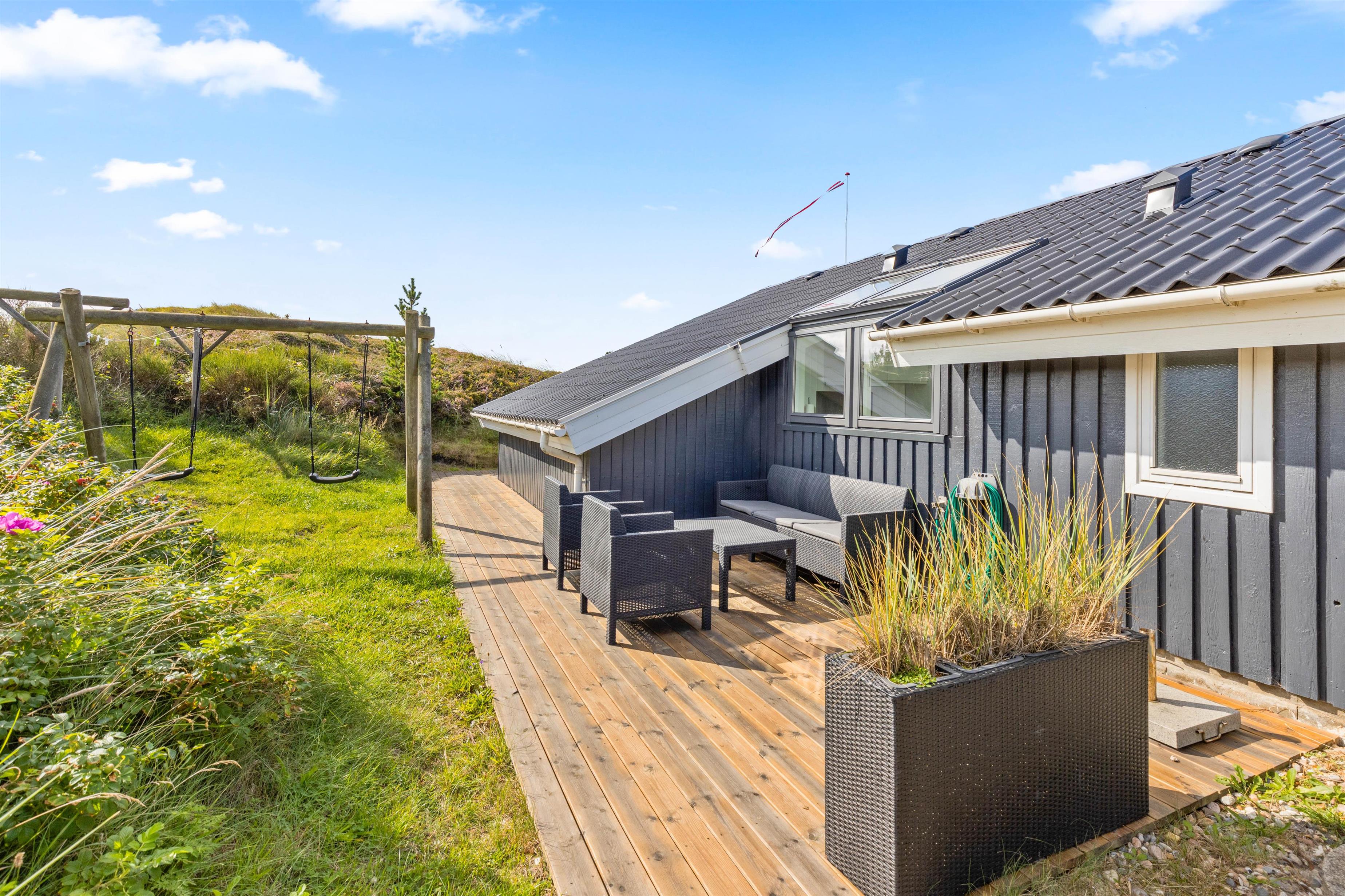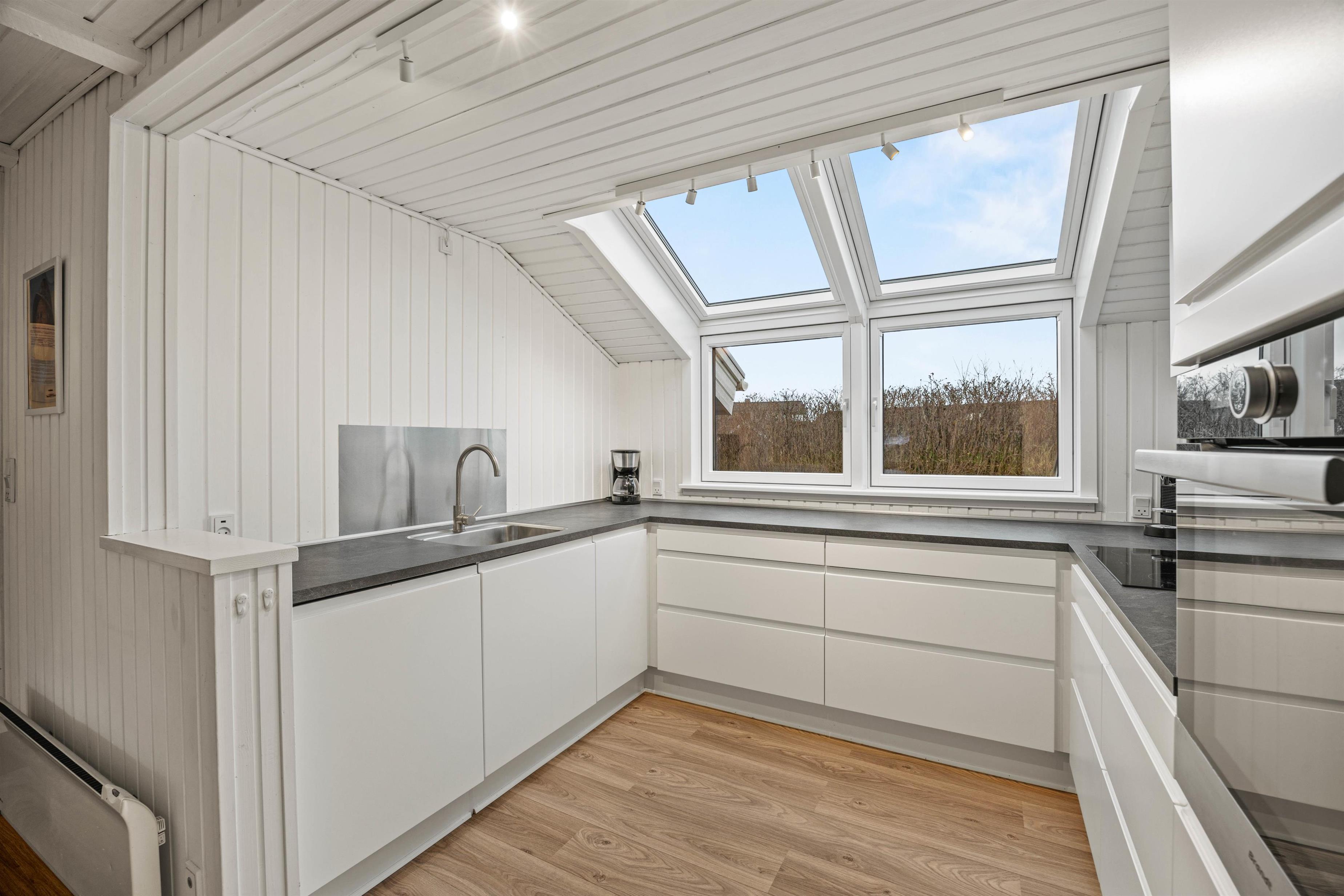 Sommerhusets moderne indretning bliver på bedste vis komplimenteret af det store lysindfald, der kommer fra de mange vinduer, som tilsammen skaber en fantastisk ferieatmosfære. Gennem vinduespartiet i stuen har I desuden en skøn udsigt til klitterne.