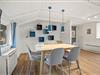 Sommerhuset på Hjelmevej 132, som blev renoveret i 2021, har en moderne og stilfuld indretning, der emmer af hygge. Gennem hele sommerhuset bliver I mødt af lækre møbler, som I kan finde jer godt til rette i på jeres ferie i Henne Strand.