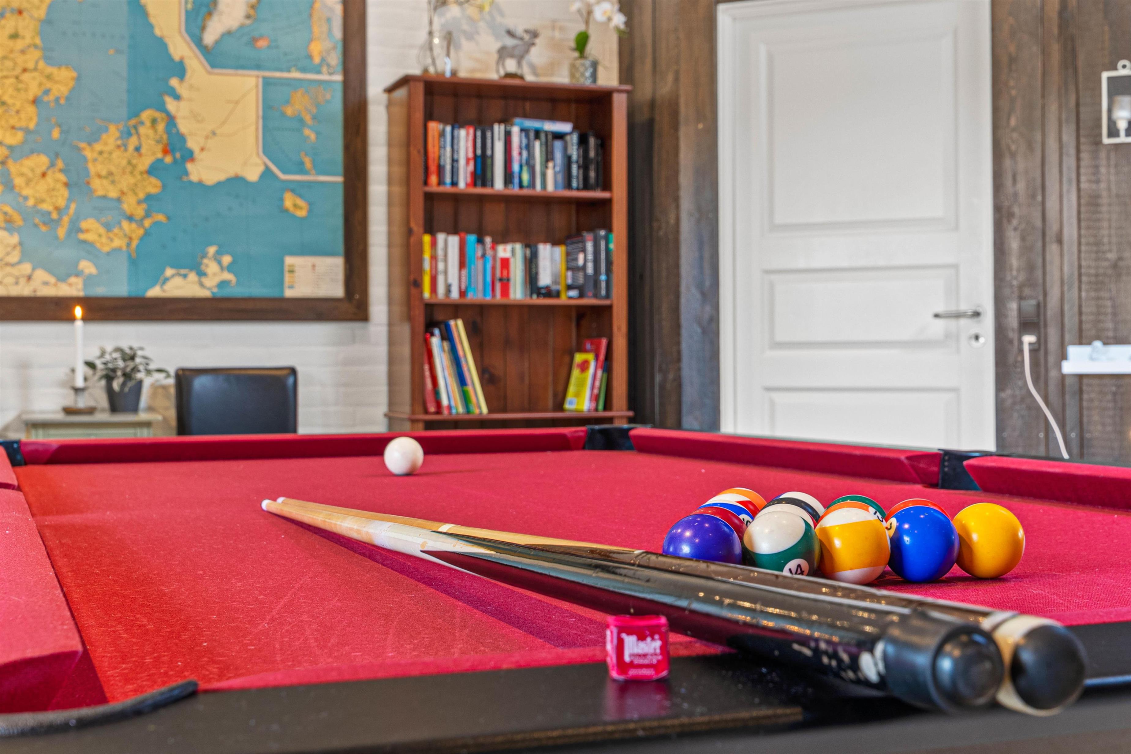 Et andet højdepunkt i sommerhuset er aktivitetsrummet. Her er rammerne sat for mange timer i underholdningens tegn, hvor I kan give jer i kast med at spille billard, bordtennis og airhockey. I kan også afholde en turnering for at finde den helt store spilmester – måske på en aften med snacks og drikkevarer til?
