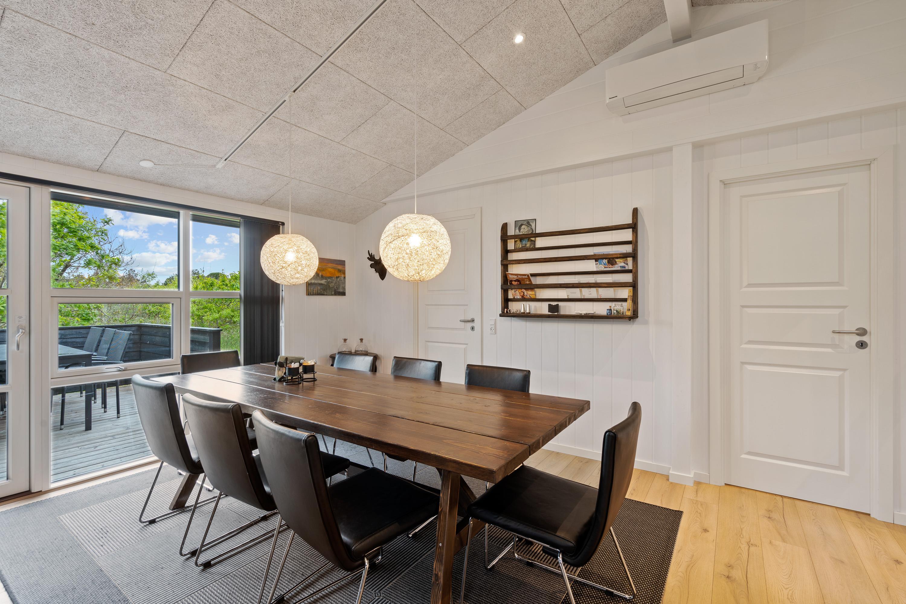 Til 2 små familier er dette sommerhus på Granvej 4 i Henne Strand et oplagt sted at holde jeres næste ferie. Sommerhuset, der er renoveret i 2020, rummer plads til op til 8 personer. Her kan I nyde masser af afslapning i spa og infrarød sauna eller give jer i kast med et spil billard, bordtennis eller airhockey i aktivitetsrummet. Mulighederne er mange, og her er der noget for enhver smag! Desuden har sommerhuset på Granvej 4 en skøn beliggenhed kun 900 meter fra stranden.