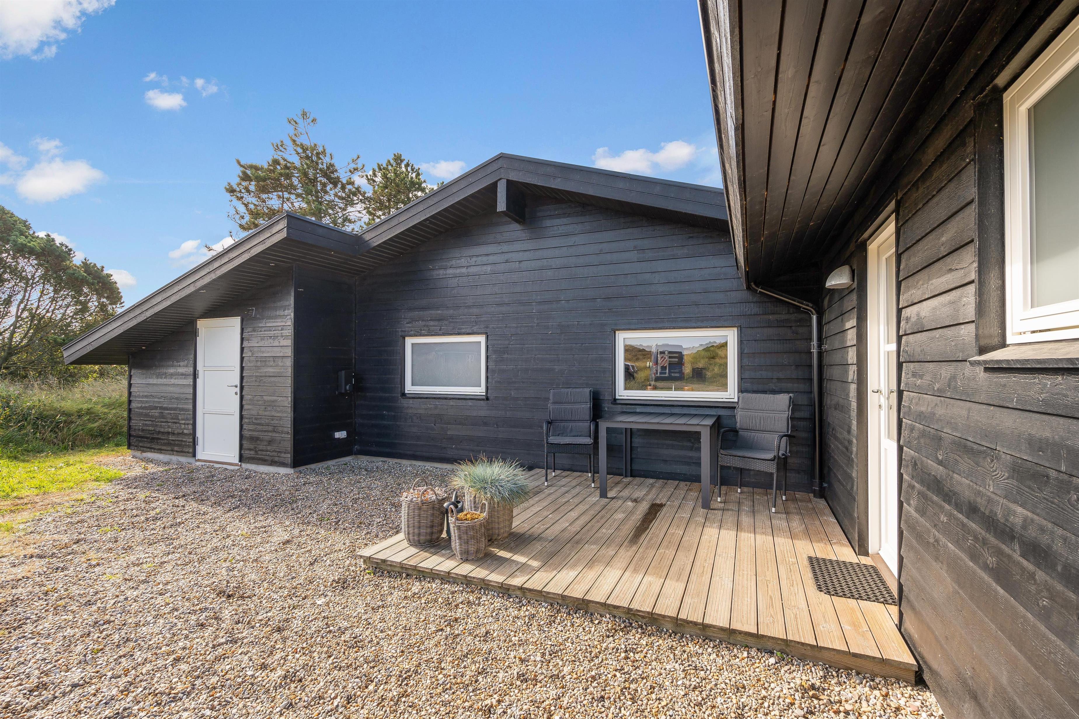 Sommerhusets udeområde er også helt fantastisk, og I har mange gode muligheder for at kunne komme ud at nyde de solrige og varme feriedage. Feriehuset byder på flere skønne terrasser, hvoraf 2 af dem er afskærmede, så I kan sidde i læ for vinden.