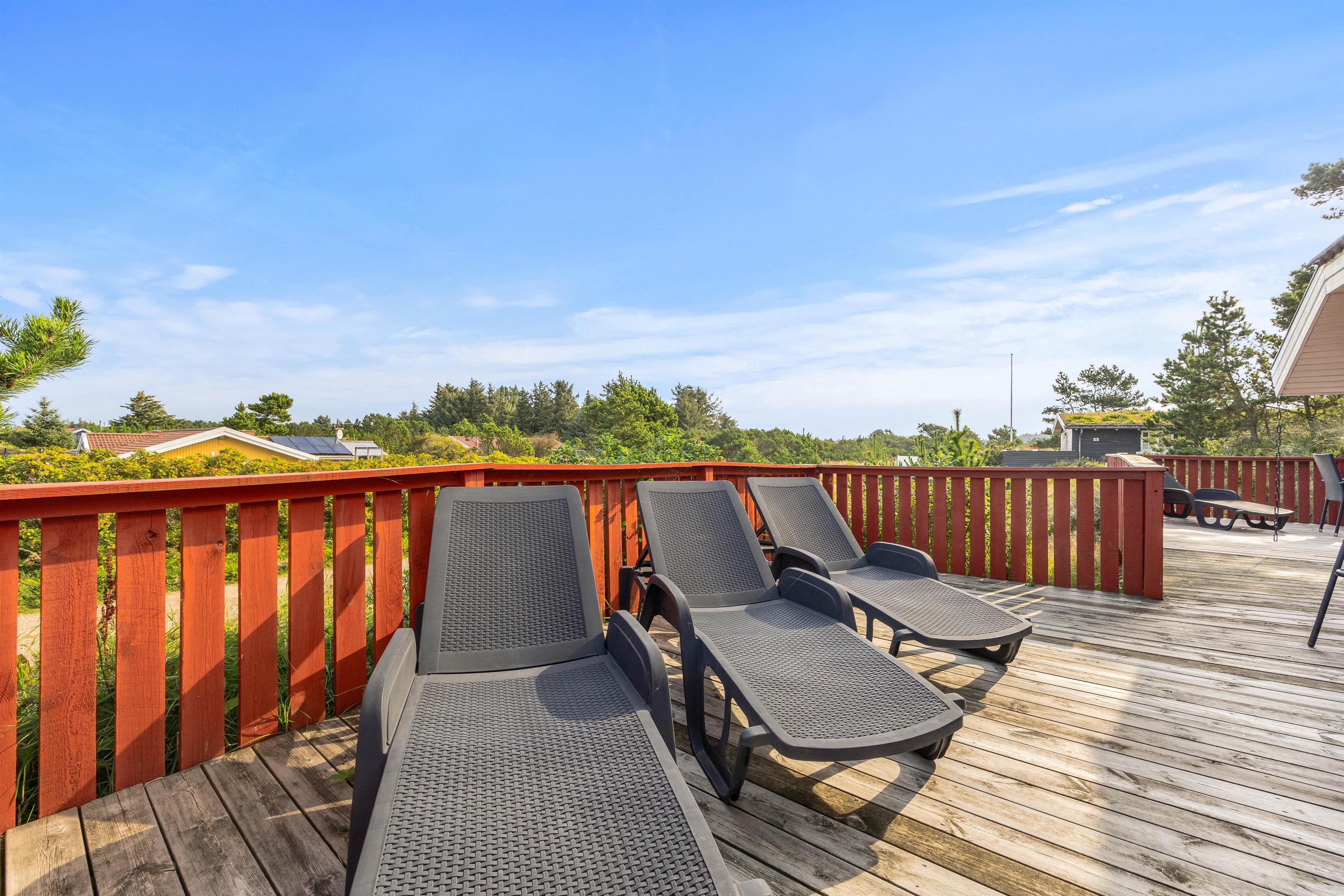 Her er et sommerhus, som er lige noget for jer, der ønsker hyggelige ferieminder i Henne. Sommerhuset har ferieadressen Gejlbjergvej 35 og har plads til 6 personer. Hvis I har lyst til lidt ekstra wellness, så har sommerhuset både en spa og en sauna. Hvis børnene er med på ferie, vil de helt sikkert få glæde af sandkassen og gyngen, der er placeret i haven. En bonus ved sommerhuset er den fantastiske panoramaudsigt, som kan ses fra en klittop ved siden af feriehuset.