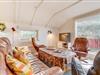 Træd inden for i dette hyggelige sommerhus, hvor de lyse omgivelser og ferieatmosfæren byder jer velkommen. Køkkenet og stuen er i åben forbindelse, så I kan nyde hinandens samvær, uanset om én laver mad, og en anden slænger sig i sofaen. Om aftenen kan hele familien samles foran fladskærms-tv’et, hvor brændeovnen øger hyggen til næste niveau.