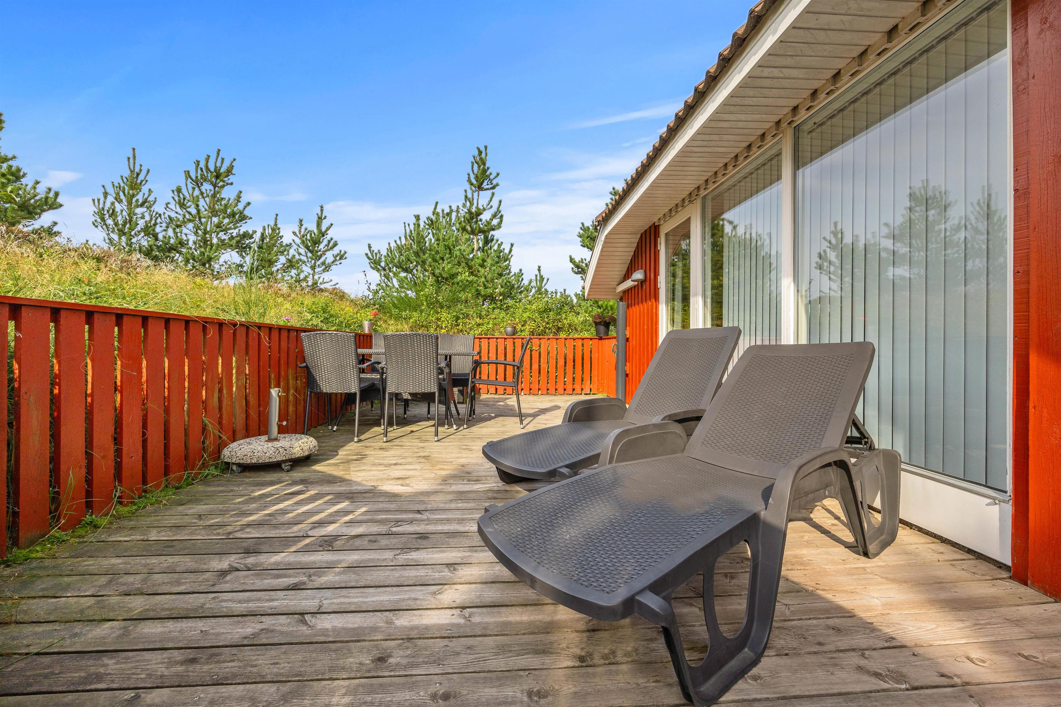 På sommerhusets terrasse kan I hive grillen frem og tilberede et lækkert måltid under blå himmel. Eller læn jer tilbage i diverse havemøbler eller liggestolene og nyd vejret. Terrassen befinder sig ved 3 af sommerhusets 4 sider, så I kan helt sikkert finde en solspot, når solen er fremme. Herfra kan I holde øje med børnene, som kan lege i sandkassen.