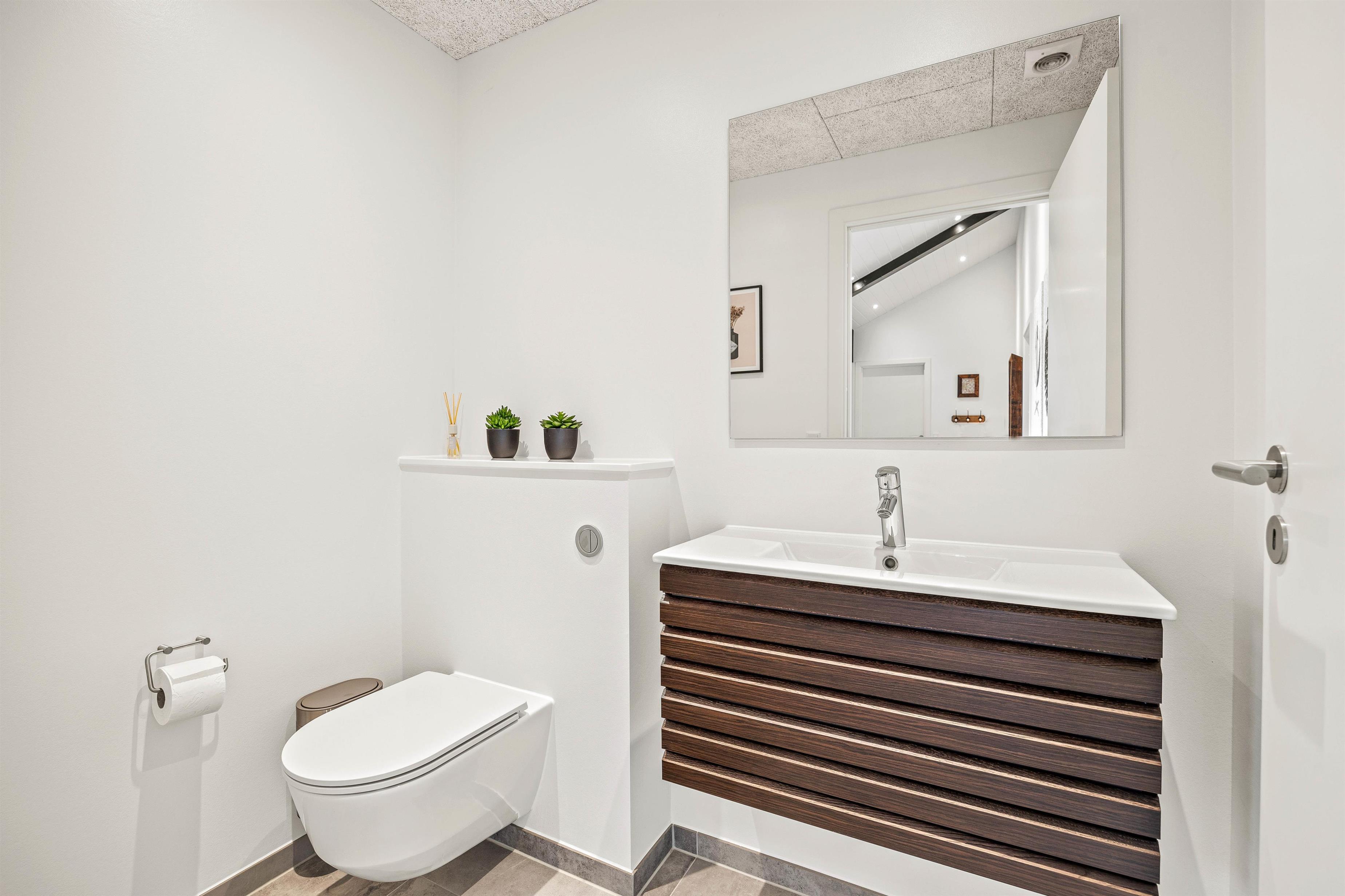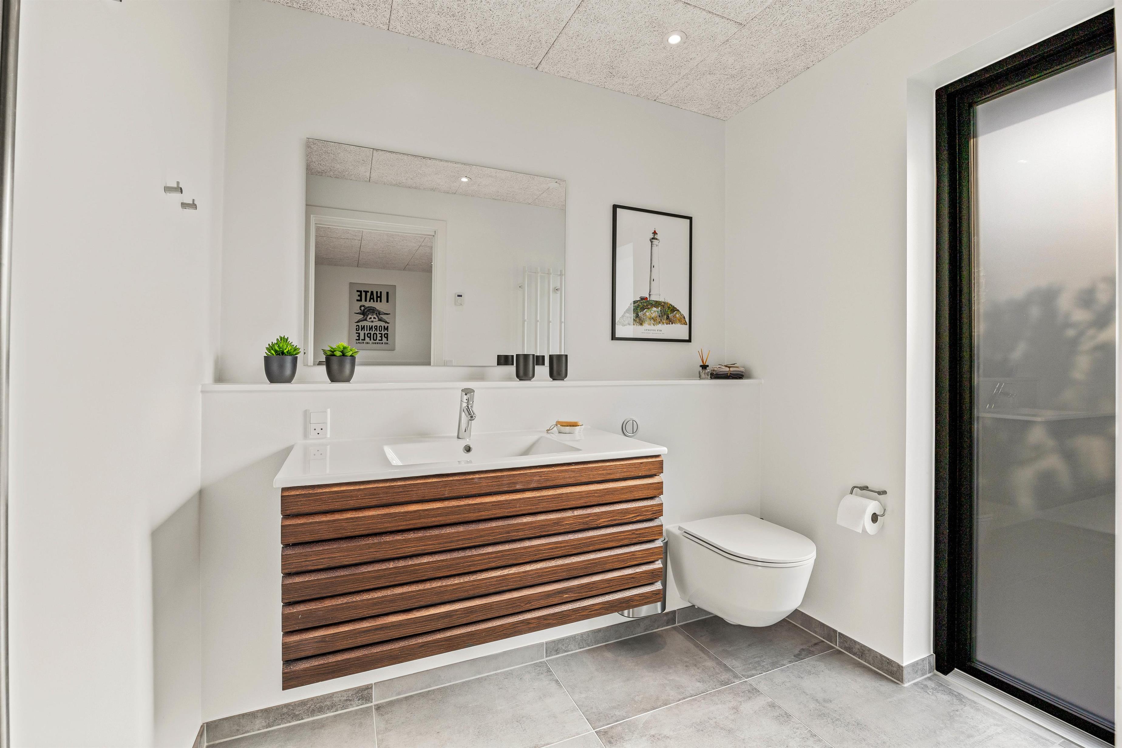 Når I står op efter en god nats søvn, skal I slet ikke bekymre jer om kø til toilettet, for sommerhuset har nemlig hele 3 badeværelser samt 1 gæstetoilet. På både badeværelser, gæstetoilet, soveværelser og i stuen er der gulvvarme, så I slipper for kolde tæer. Derudover har sommerhuset også en energibesparende varmepumpe, der sørger for et godt indeklima hele året rundt.