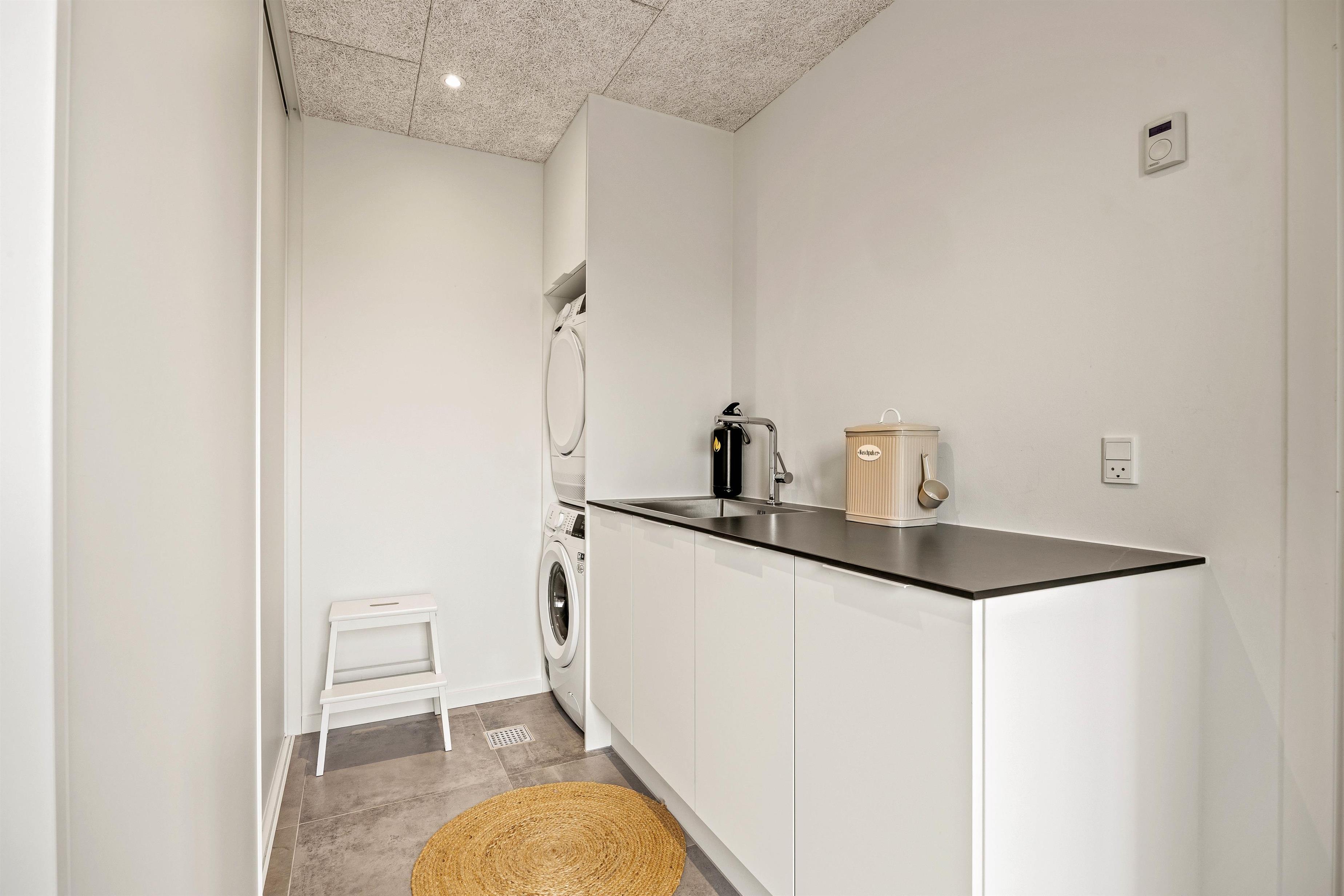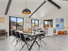 I det 150 kvadratmeter store sommerhus, udgør alrummet hjertet. Her er køkken, spiseplads og stue samlet i ét, og rammerne er derfor sat til mange hyggelige feriestunder med at lave mad, spille spil og se film. Når I har lavet mad i køkkenet, skal opvaskemaskinen nok sørge for at klare den efterfølgende opvask.