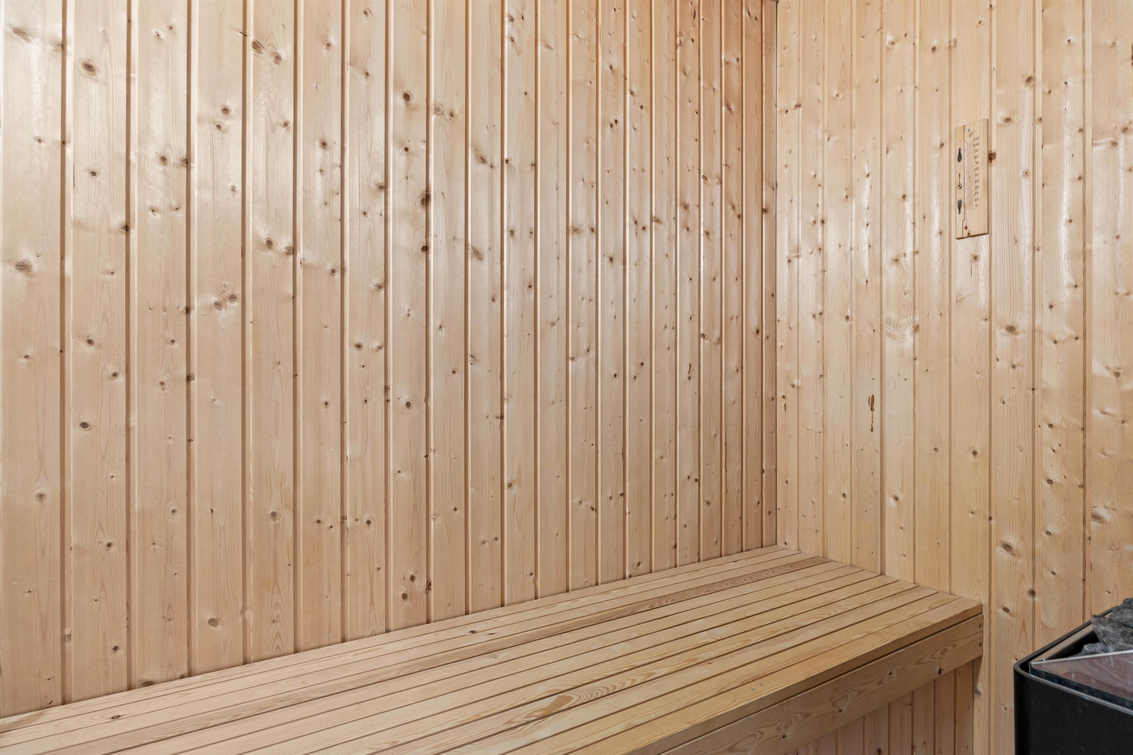 Den overdækkede terrasse og de mange terrasser omkring sommerhuset er perfekte til at nyde grundstykket og de smukke omgivelser. Sommerhuset er udstyret med komfortable havemøbler, så I kan læne jer tilbage og slappe af. For de, der ønsker en luksuriøs afslutning på dagen, er der en sauna, hvor I kan lade dagens aktiviteter sive ud af kroppen. En luft-til-luft varmepumpe sikrer, at sommerhuset har en behagelig temperatur indendørs, uanset vejret udenfor.