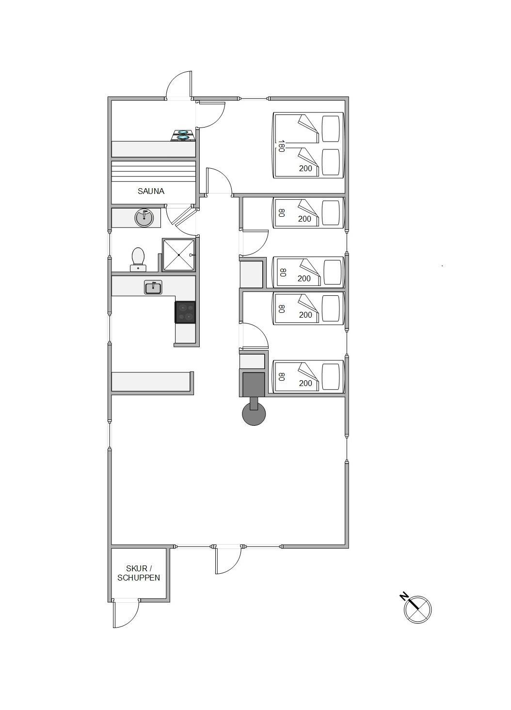 Dette indbydende sommerhus har 3 soverum; ét med en komfortabel dobbeltseng og 2 soveværelser med hver 2 enkeltsenge, hvilket giver rig mulighed for at tilpasse sovepladserne til familiens eller venners behov. Rumfordelingen er ideel til at sikre privatliv og komfort, når dagens eventyr er ovre.