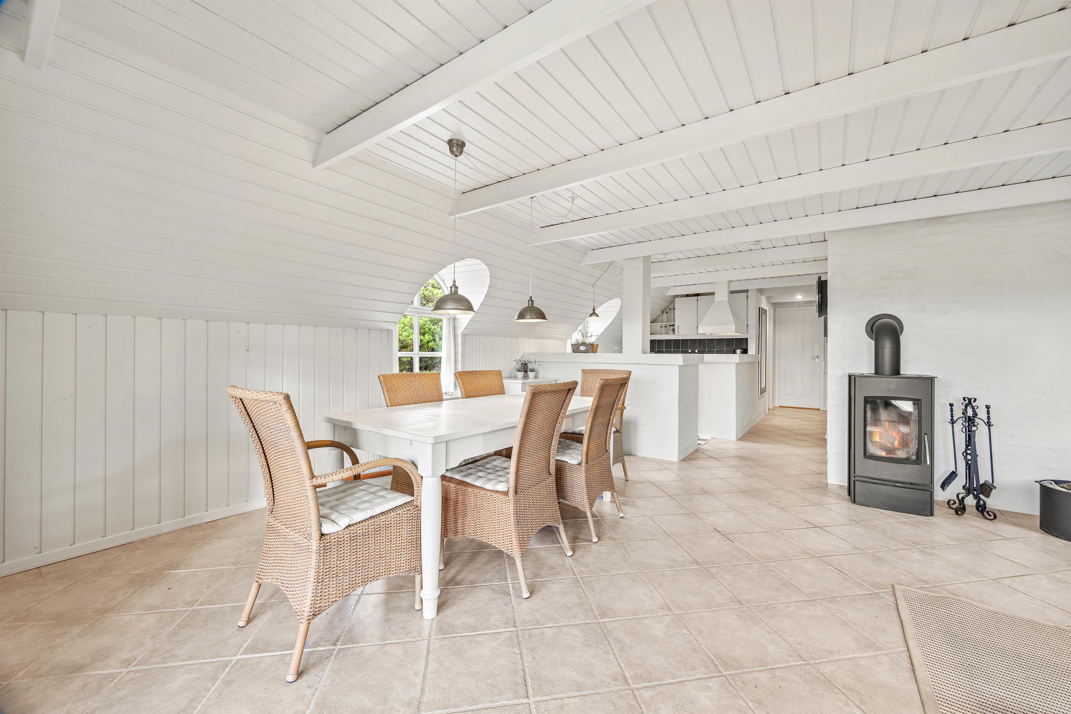 Sommerhuset på Hyldebærvej 4 i Henne Strand er udstyret med alle de bekvemmeligheder, der er nødvendige for et hyggeligt og afslappende ophold. Den skønne stue byder på en hyggelige brændeovn, som skaber varme og hygge – også på kølige aftener. Med Chromecast tilgængelig kan I streame og nyde jeres yndlingsfilm og -serier under opholdet.