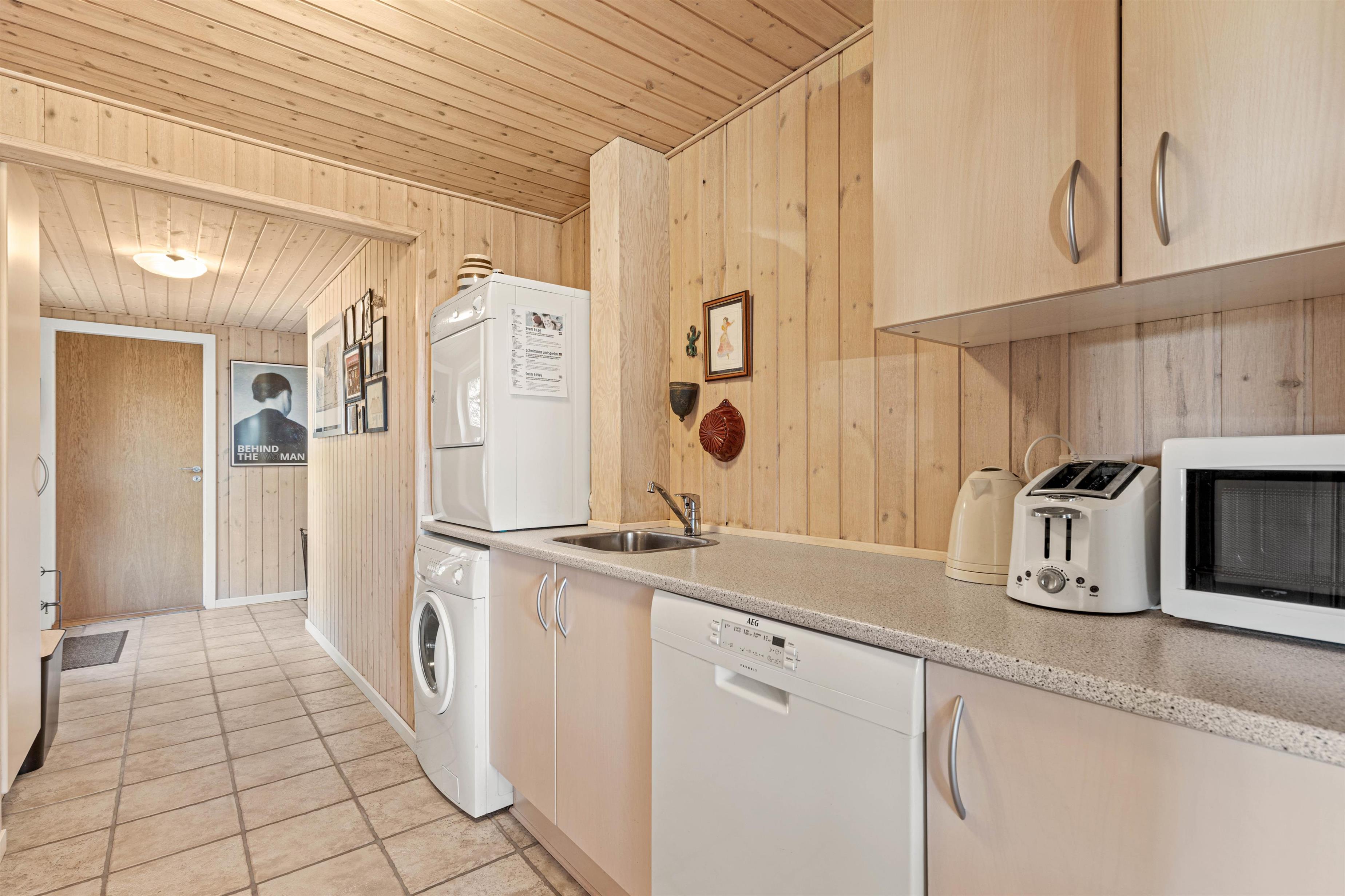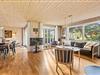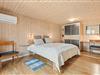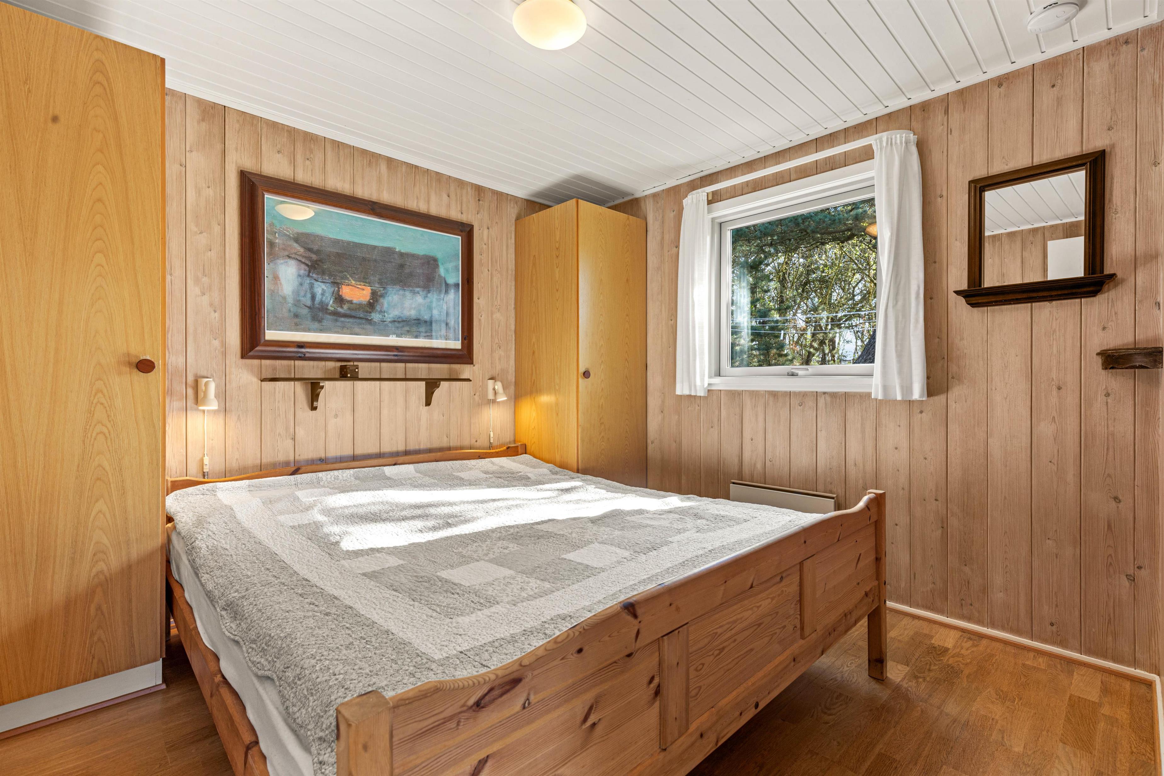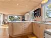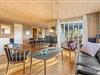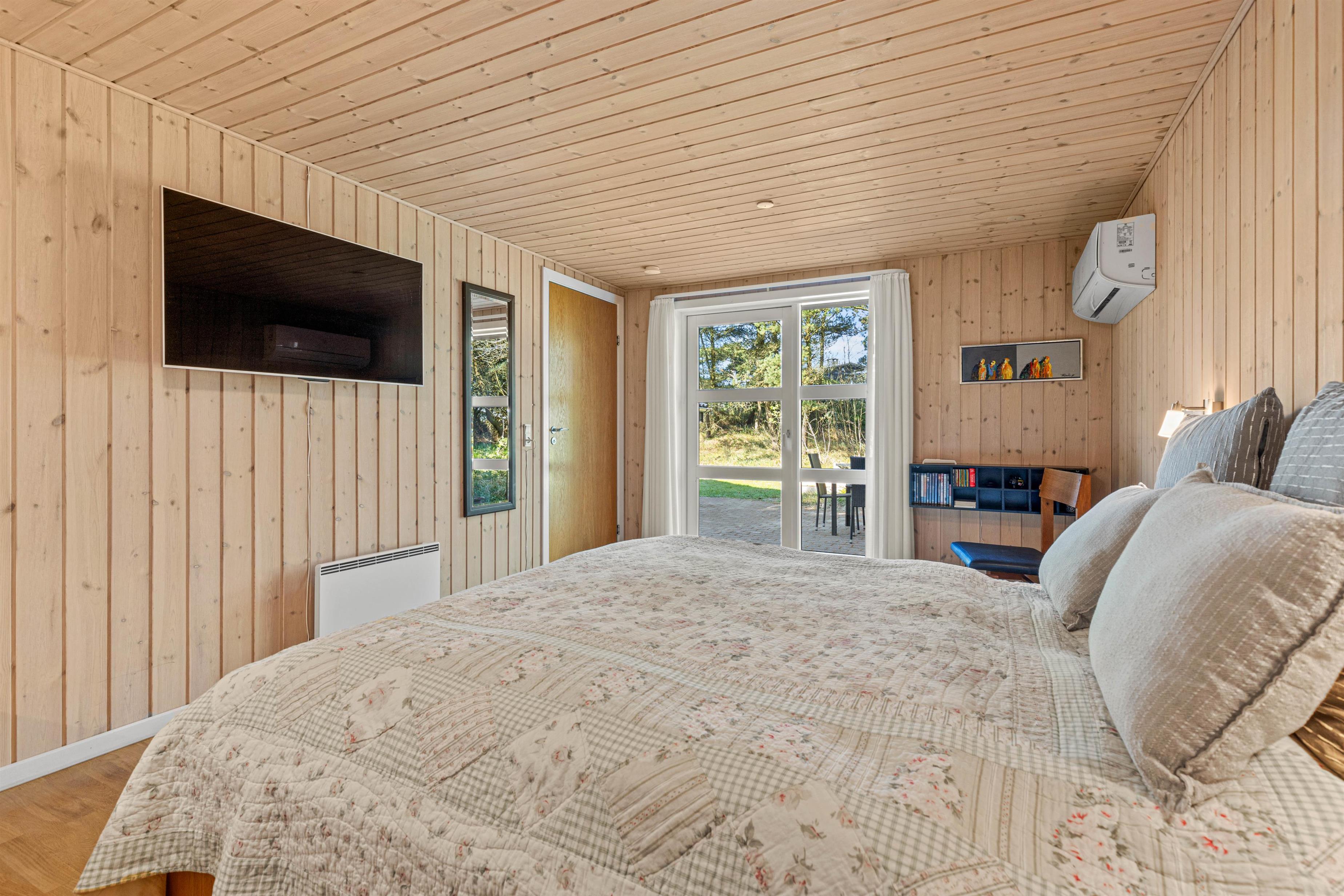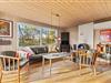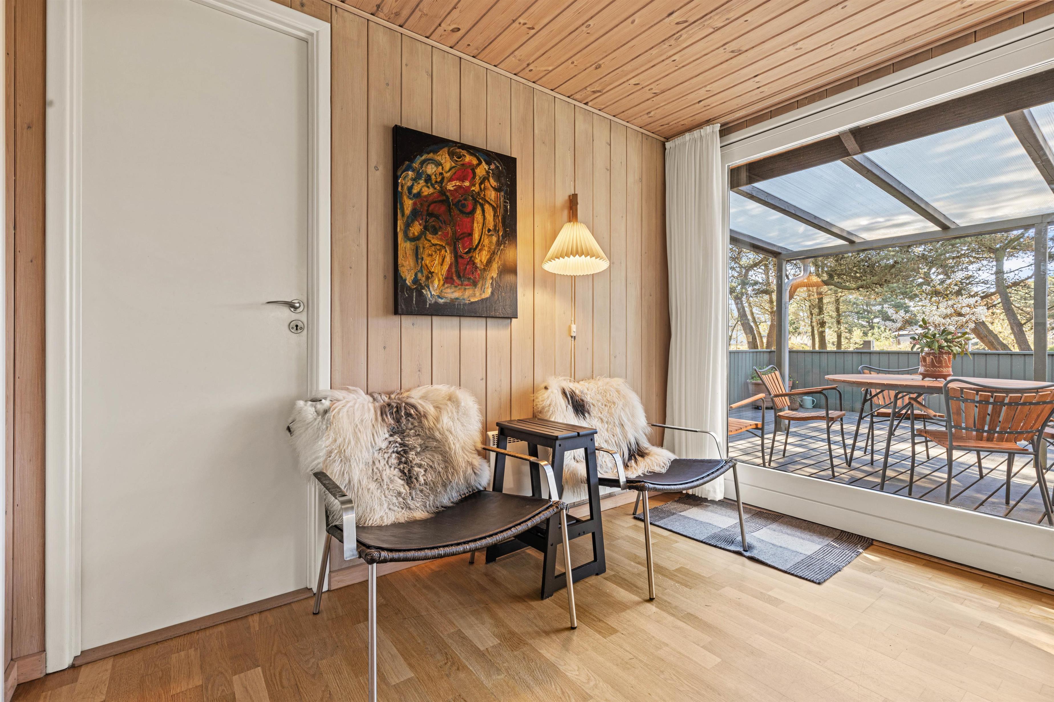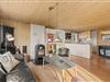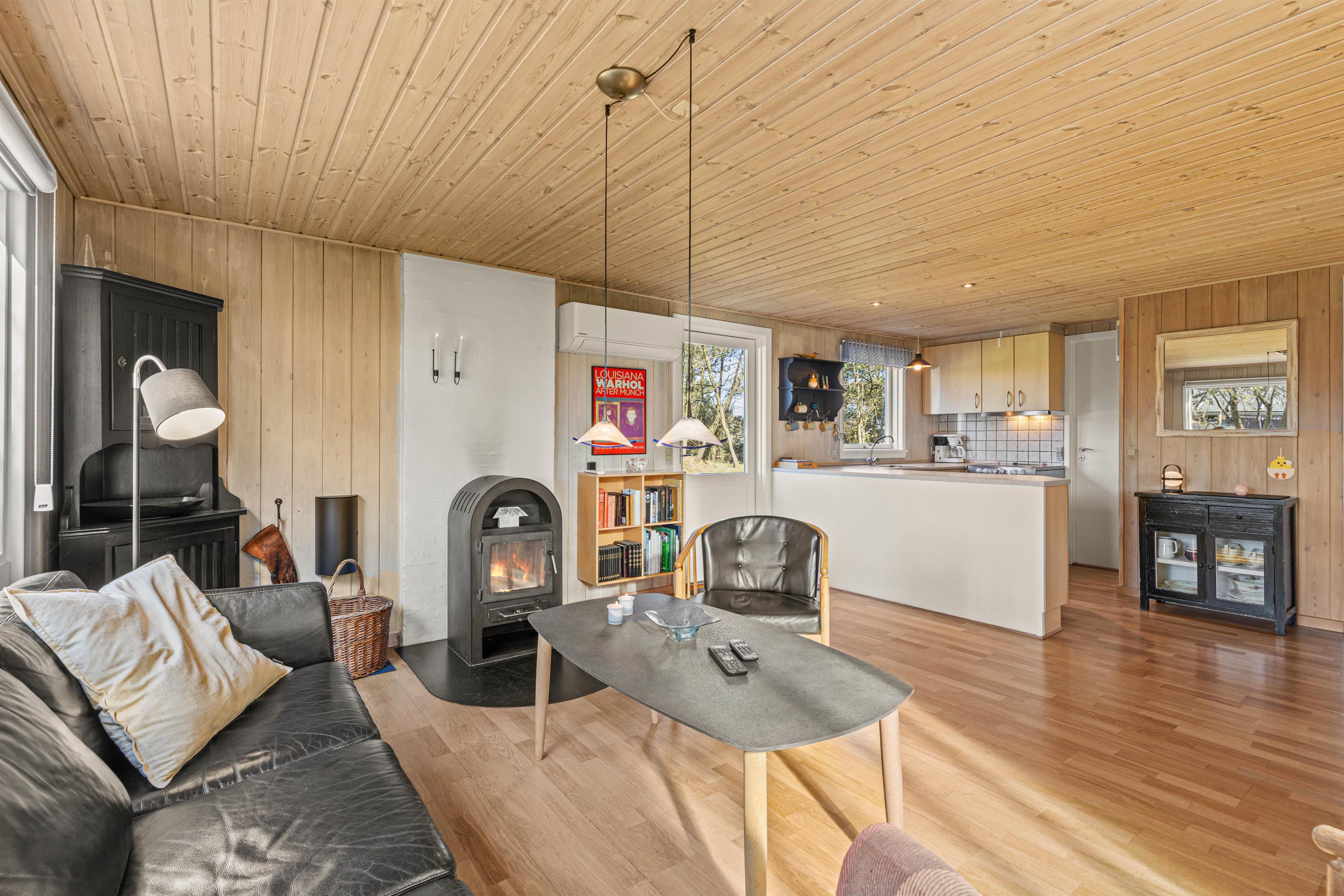 De lyse trævægge og lofter sammen med de store vinduespartier sørger for en behagelig og afslappende ferieatmosfære, og brændeovnen i stueafdelingen vil sprede både varme og god stemning på de sene aftener og de kolde vinterdage, hvor I kan samles rundt om sofabordet til en kop varm kakao.