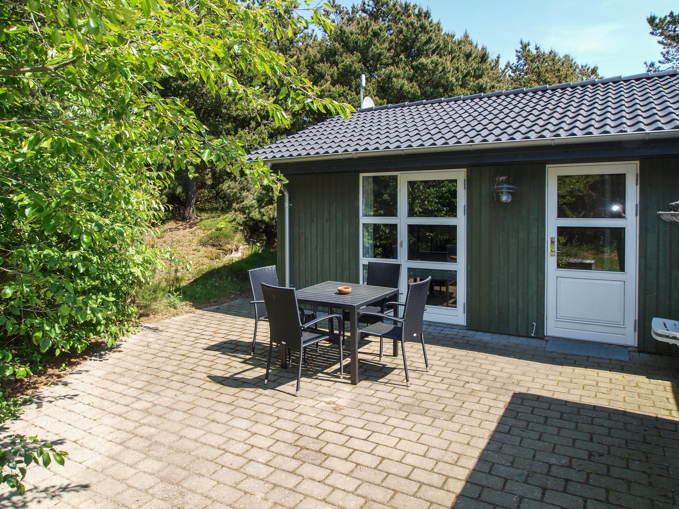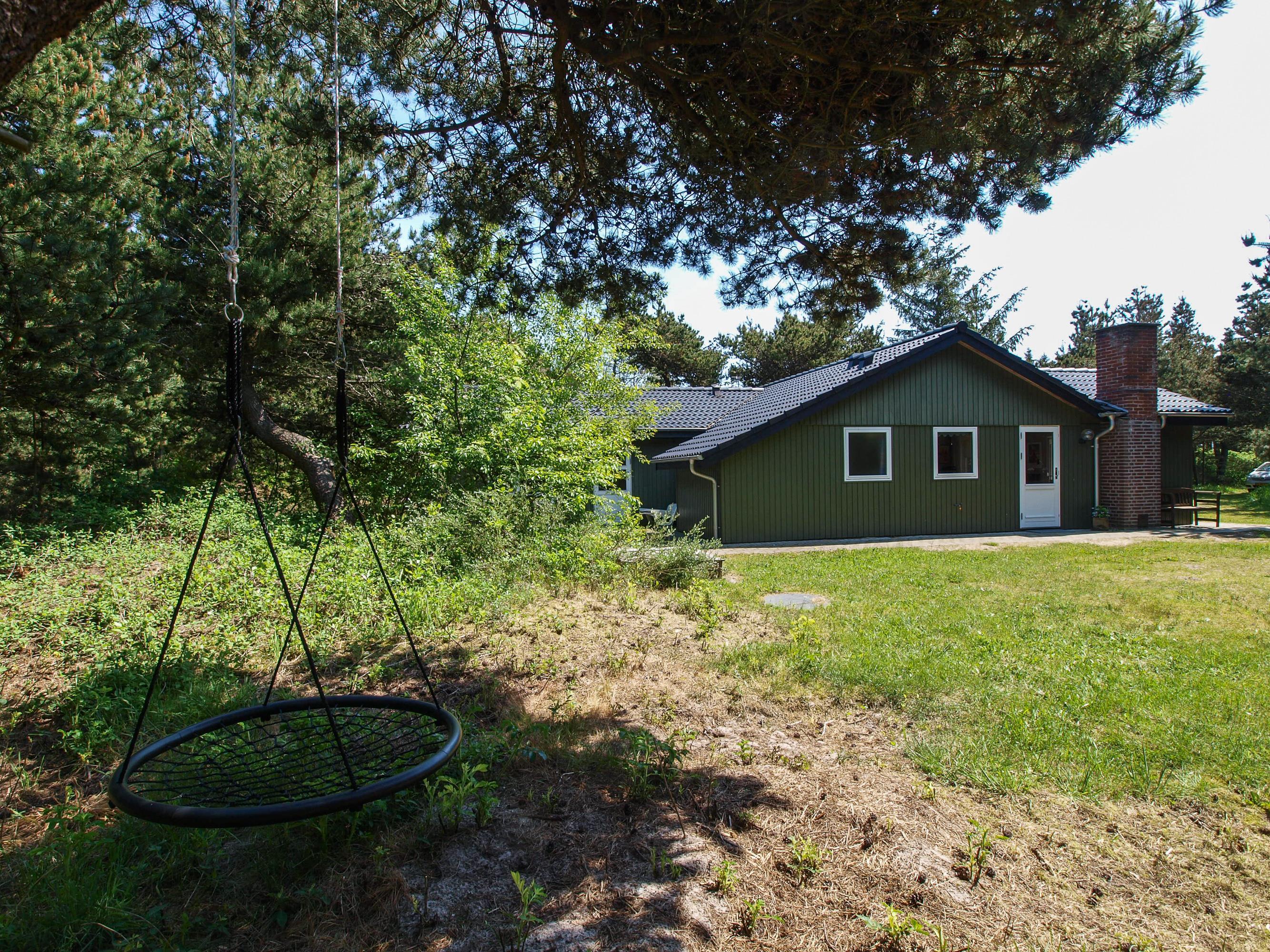 Feriehuset har en fantastisk ugeneret beliggenhed på en stor plænegrund omkranset af høje træer, og på den fine terrasse kan I nyde solen og fuglenes fløjten i god ro og fred fra liggestolene. Her er også tænkt på de mindste feriegæster, og med en sandkasse og et gyngestativ på grunden skal de nok blive holdt godt beskæftiget, mens I slapper af.