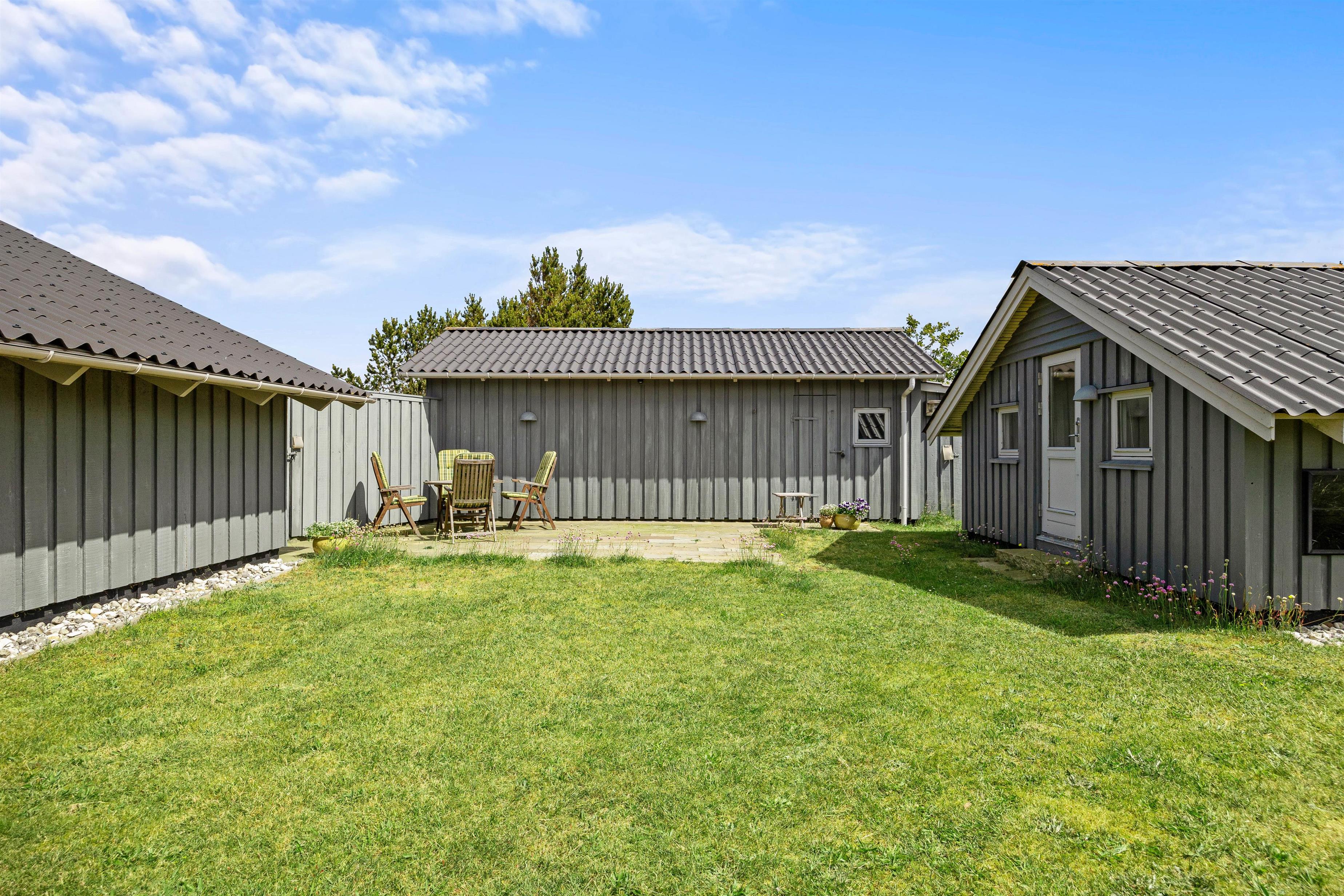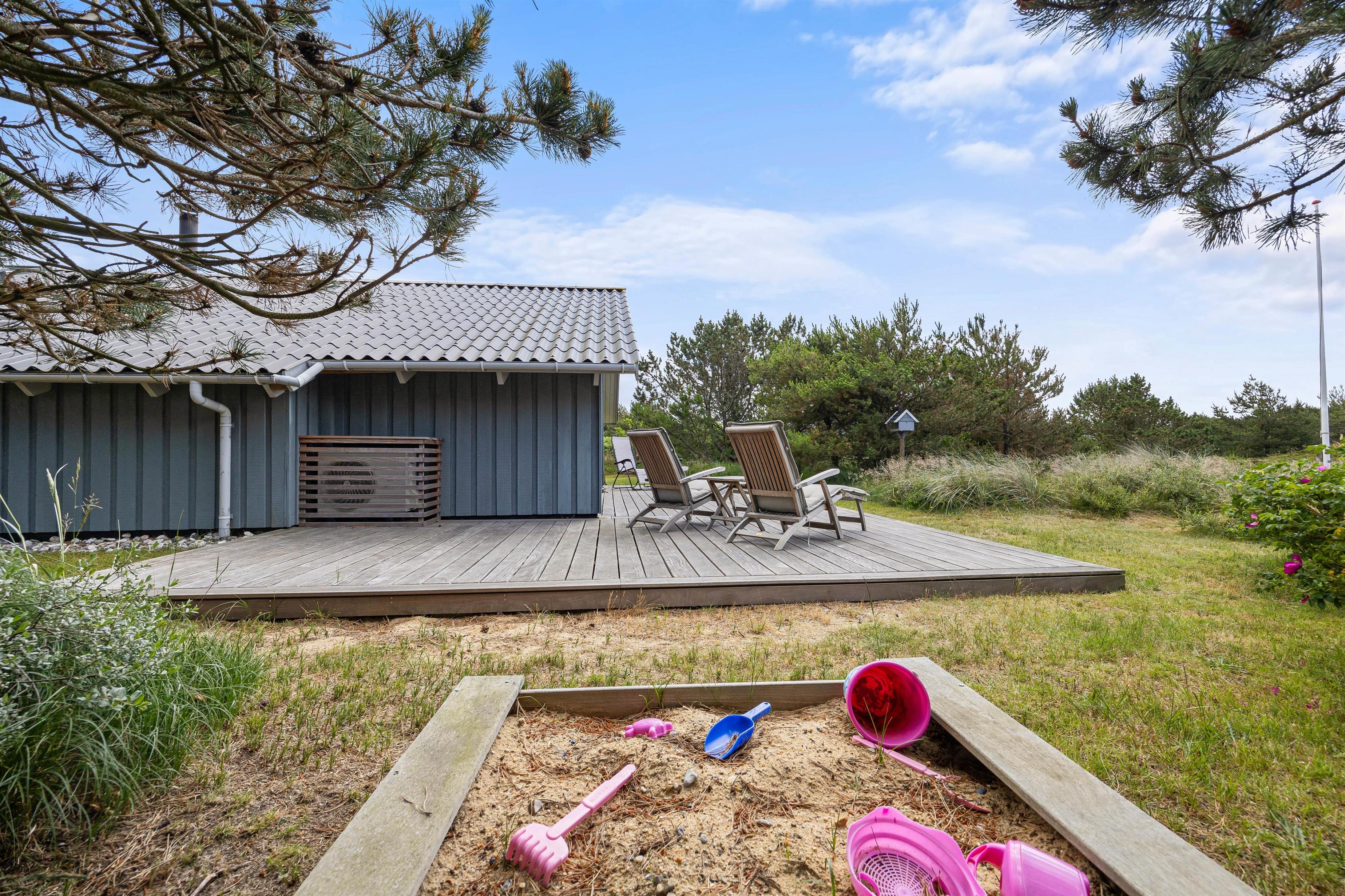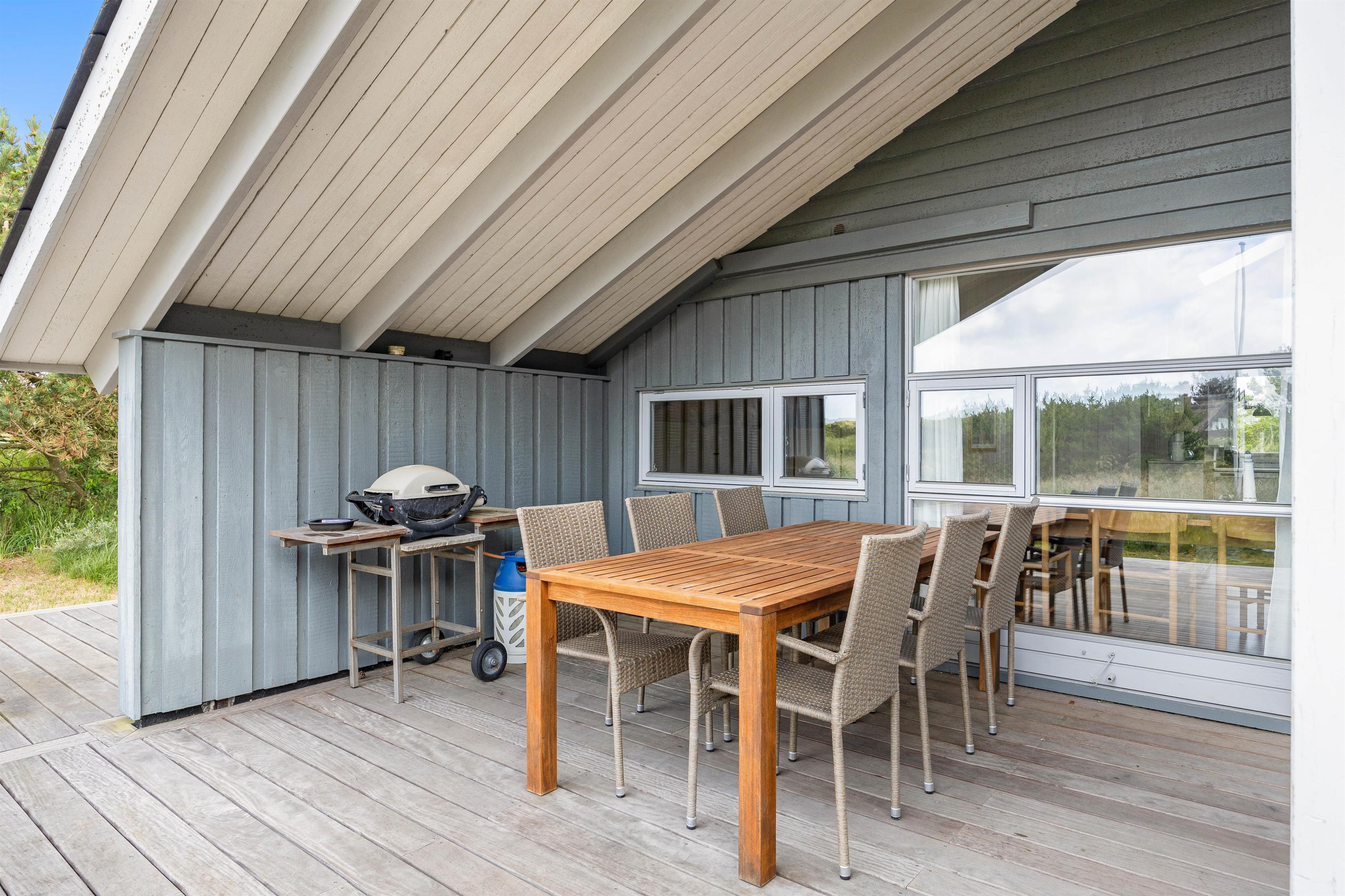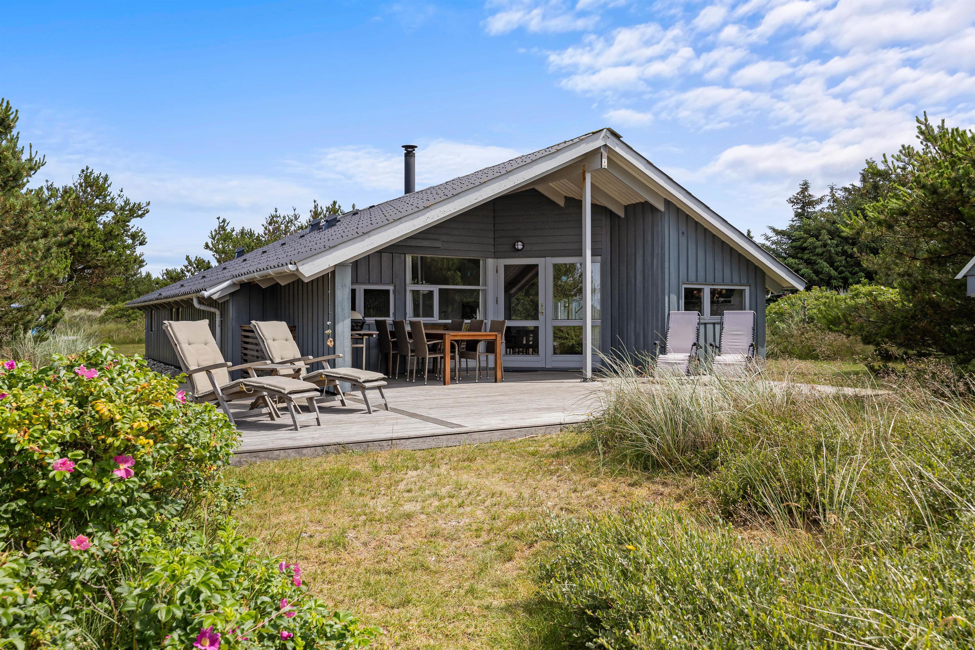 Nær byen og stranden ved Henne Strand findes dette skønne sommerhus. Mågevej 3 kan danne rammerne omkring en dejlig ferie for seks gæster, og her er gode faciliteter såsom sauna, pejsen og det fine anneks. Udenfor venter jer også en stor terrasse med udsigt over heden.