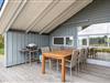 Udenfor finder I flere dejlige terrasser, hvor I kan nyde det gode vejr. Fra stuen er der direkte udgang til en store træterrasse mod vest, mens der mod syd gemmer sig en fin fliseterrasse. Fra fliseterrassen kan I nyde en dejlig frokost i solen, mens børnene spiller bold på græsplænen eller bygger sandslotte i sandkassen. Træterrassen derimod er helt perfekt til grillaftner. Træk jer tilbage under terrassens overdækning og nyd lidt koldt at drikke – en perfekt måde at afslutte dagen på.