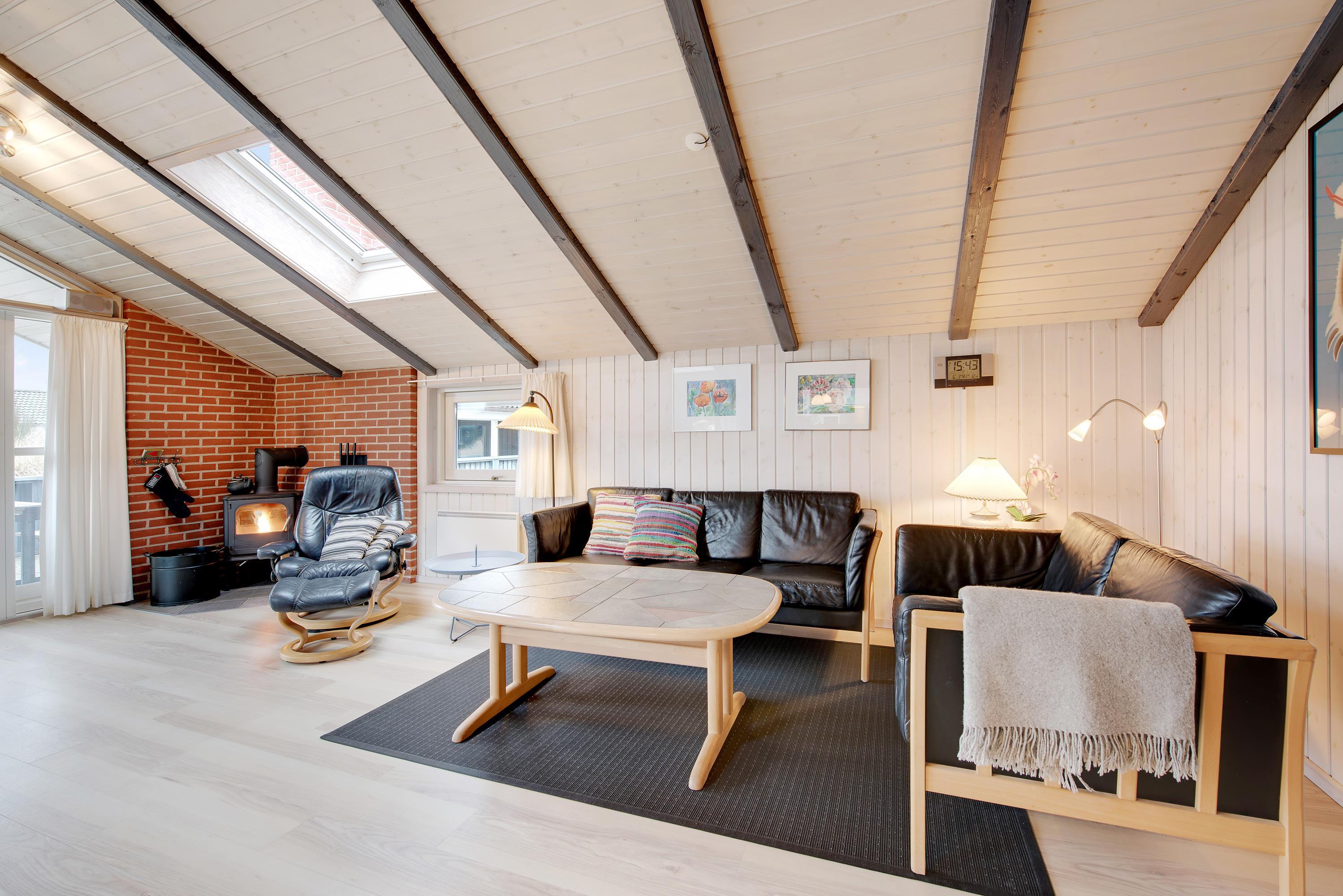 Det fine sommerhus rummer plads til 5 personer med sovepladser fordelt på 3 velindrettede soveværelser. Husets hjerte er den store og lyse stue, som er kombineret med det halvåbne køkken. Her er der lagt op til masser af familietid, og om aftenen sørger den knitrende brændeovn for både varme og feriestemning.