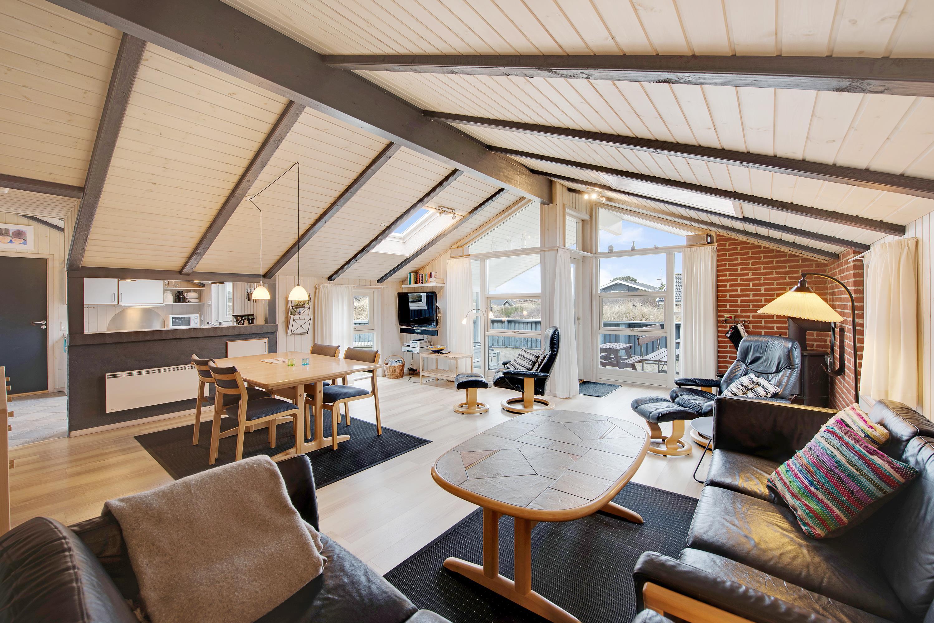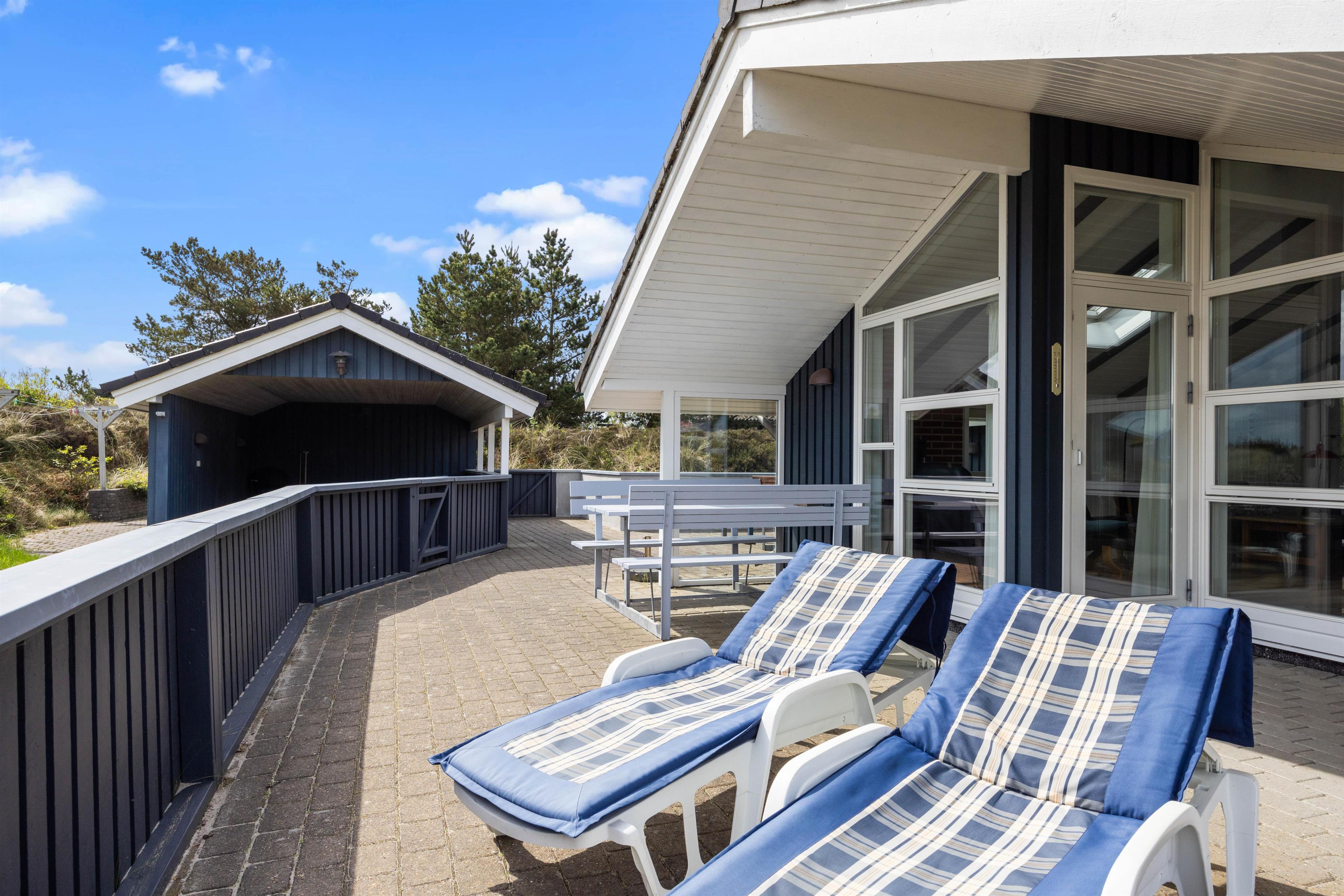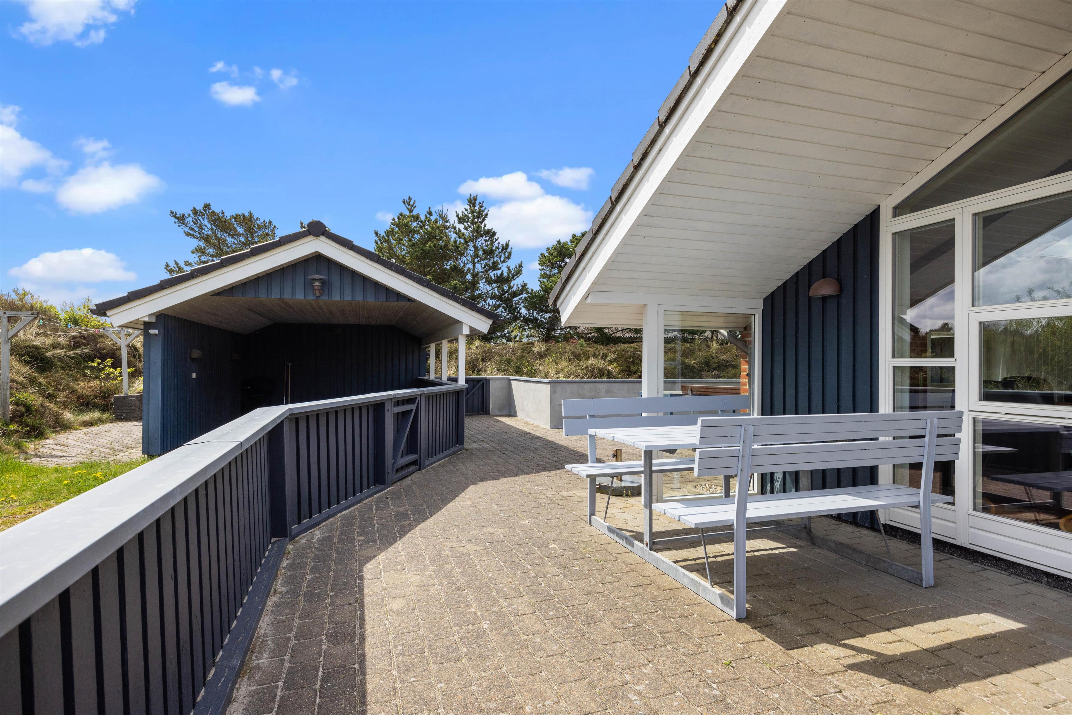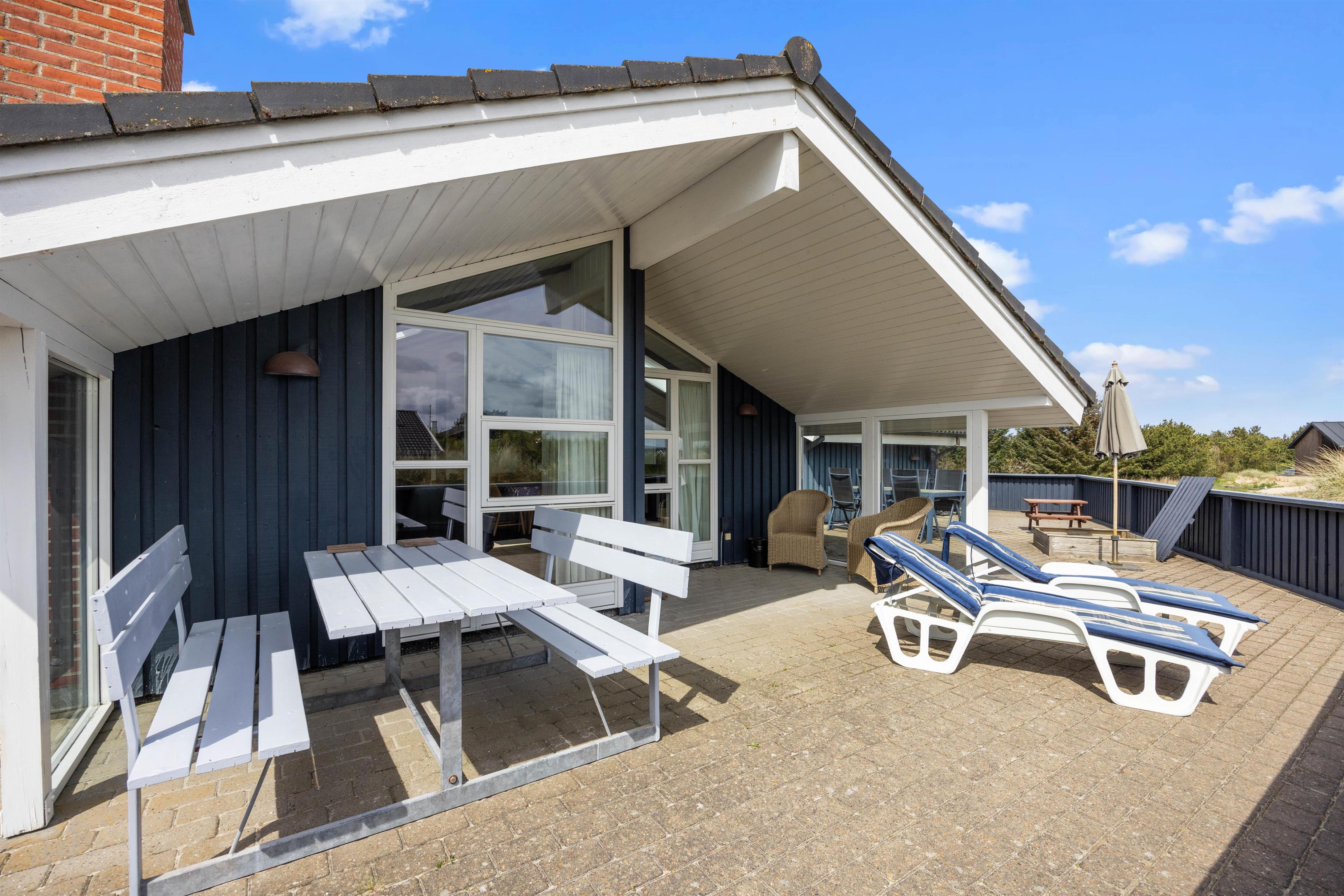 Sommerhuset ligger på en herlig naturgrund, så tæt på stranden, at I kan høre bølgernes brusen fra terrassen. En kort gåtur gennem klitlandskabet fører jer direkte ned til den børnevenlige badestrand, som året rundt byder på nye og spændende oplevelser.
