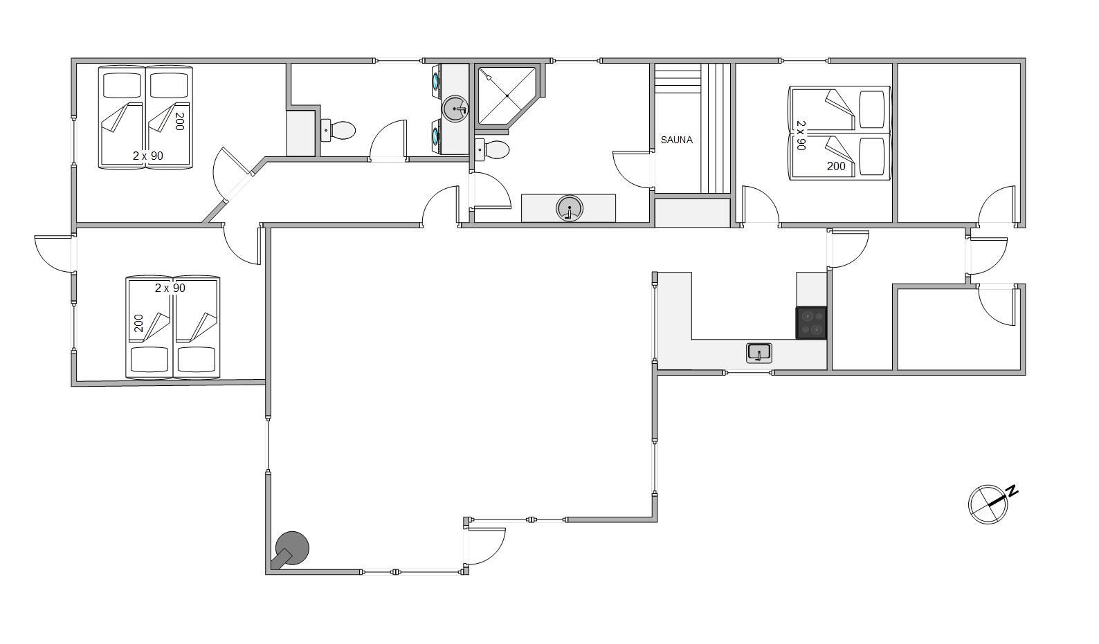 Sommerhuset er udstyret med 2 badeværelser, og det ene gemmer på en sauna, så I kan forkæle jer selv og hinanden lidt.