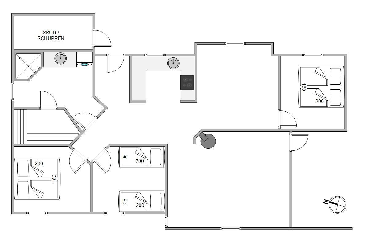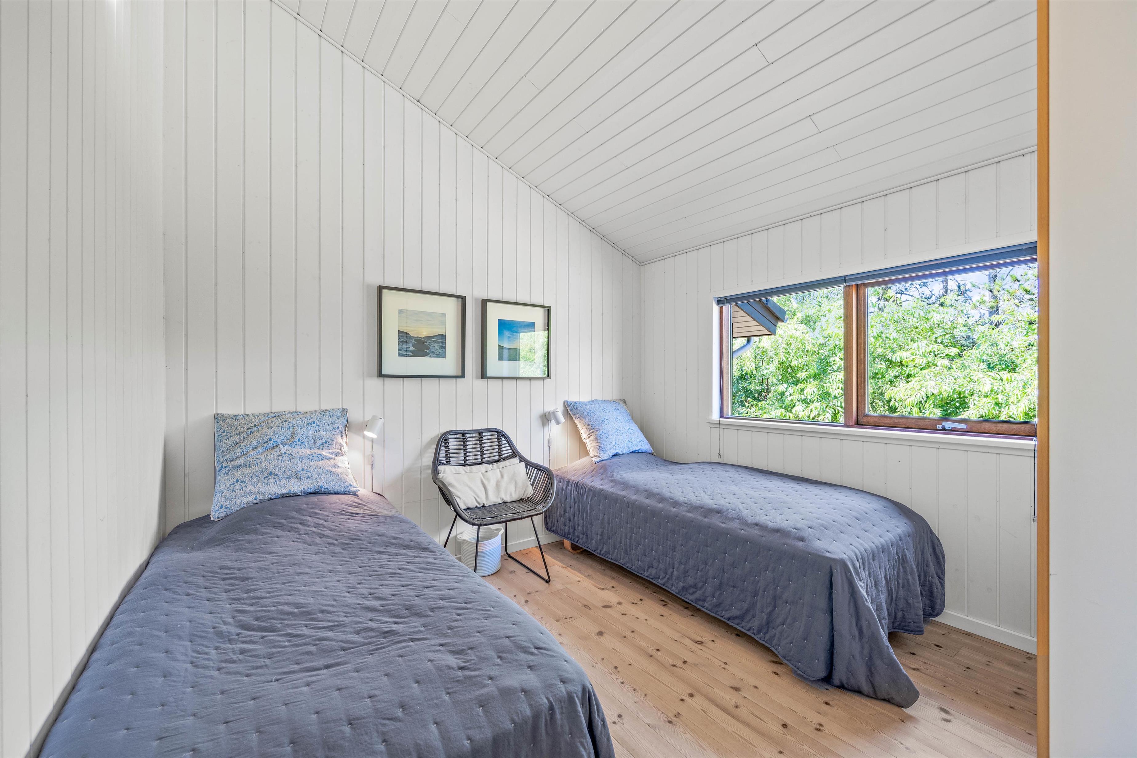 Når det er tid til at gå til køjs, kan I søge mod sommerhusets 3 soveværelser. 2 af soveværelserne er indrettet med en dobbeltseng hver, og på det tredje soveværelse er der 2 enkeltsenge.