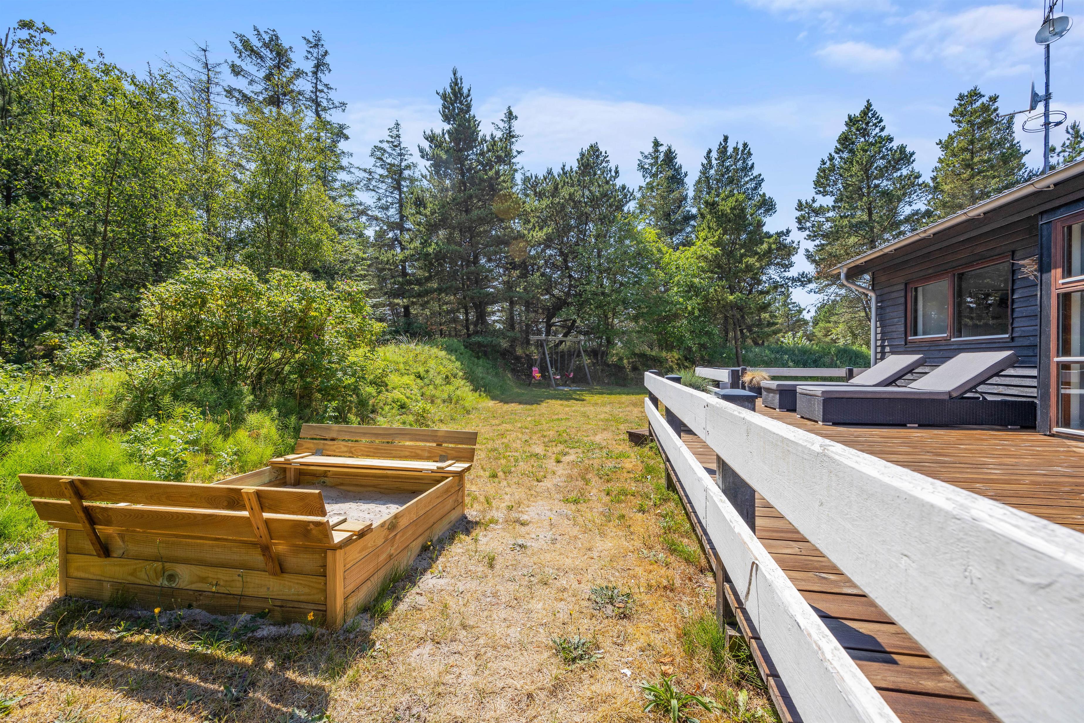 Mens I slapper af og nyder ferien på terrassen, kan børnene lege i haven. Her er der en sandkasse til dem, hvor de kan bygge store, flotte sandslotte i løbet af dagen. Mens dagens sidste sandslot bliver bygget, kan I gøre klar til aftenens middag, som I kan tilberede på gasgrillen på terrassen.