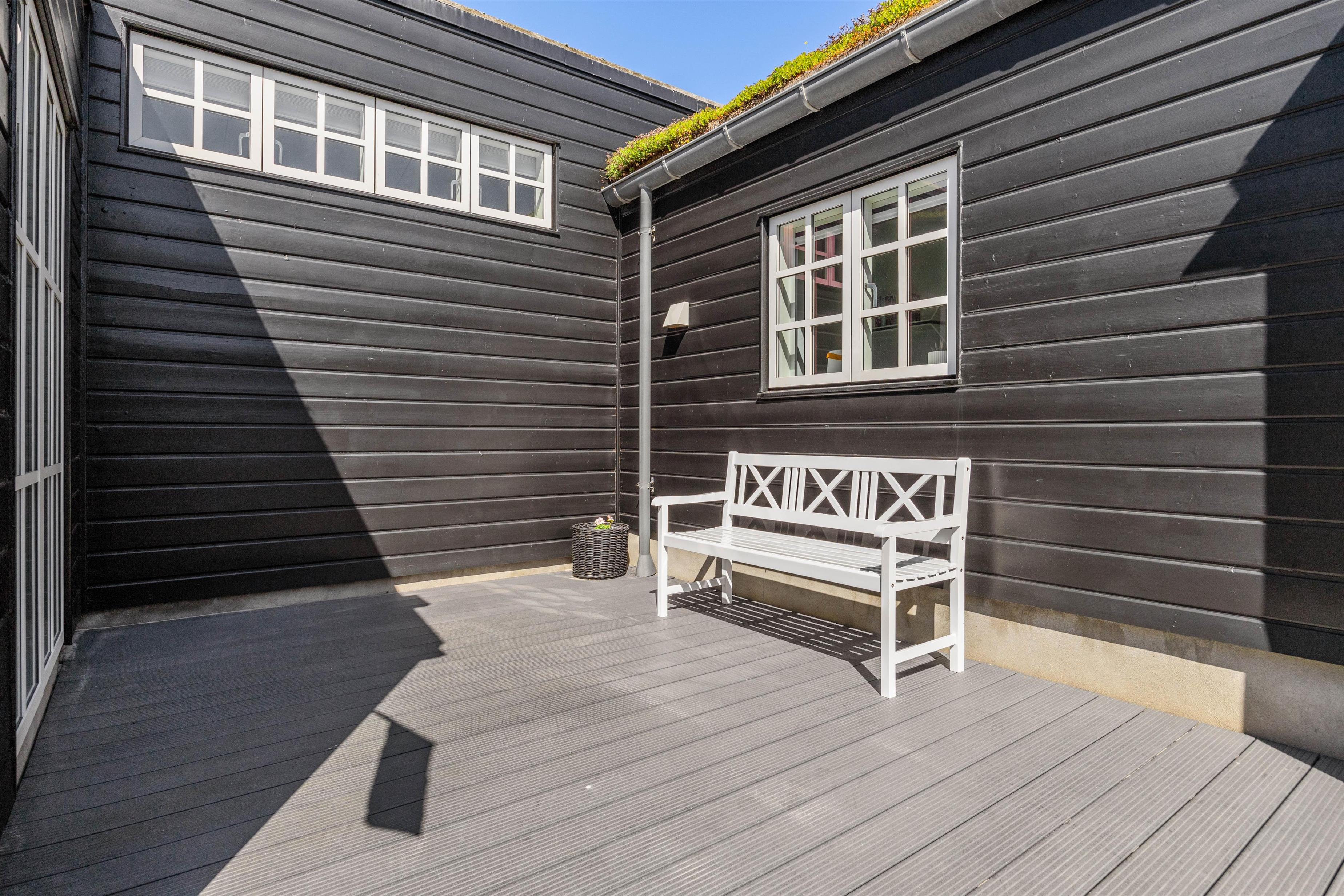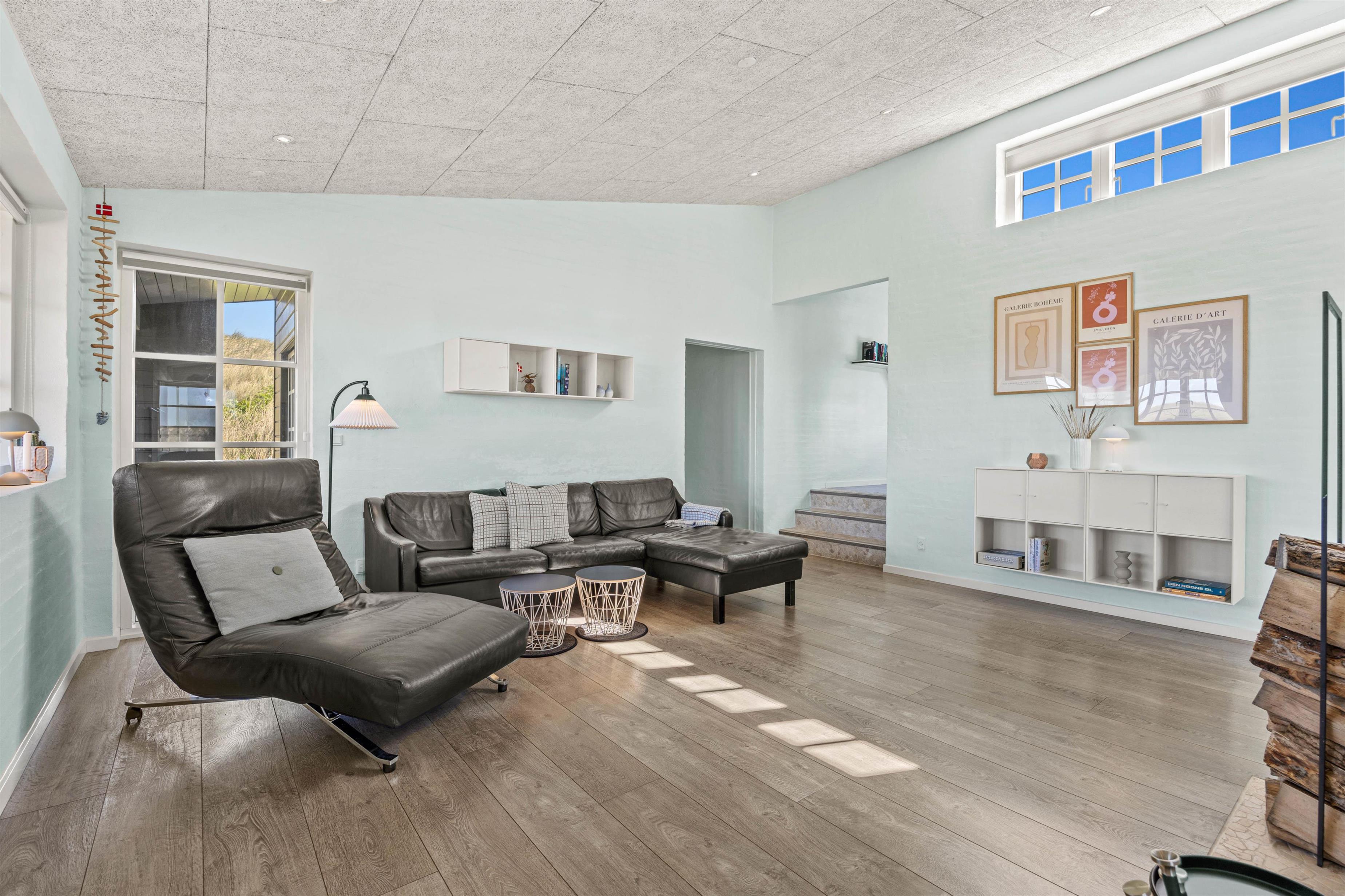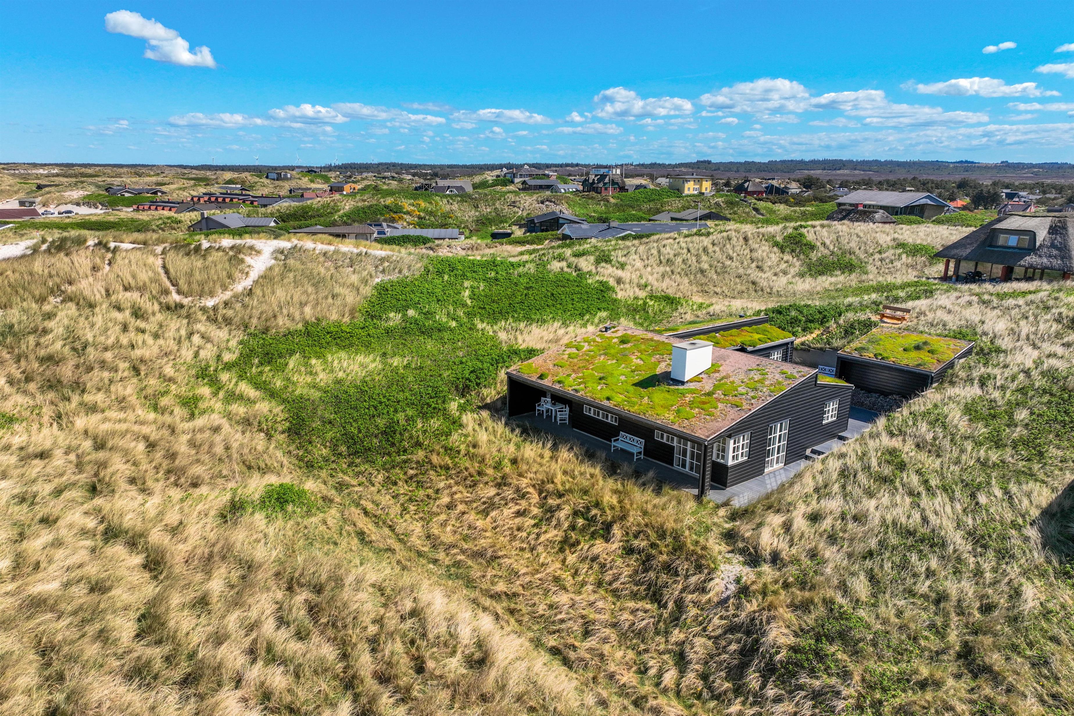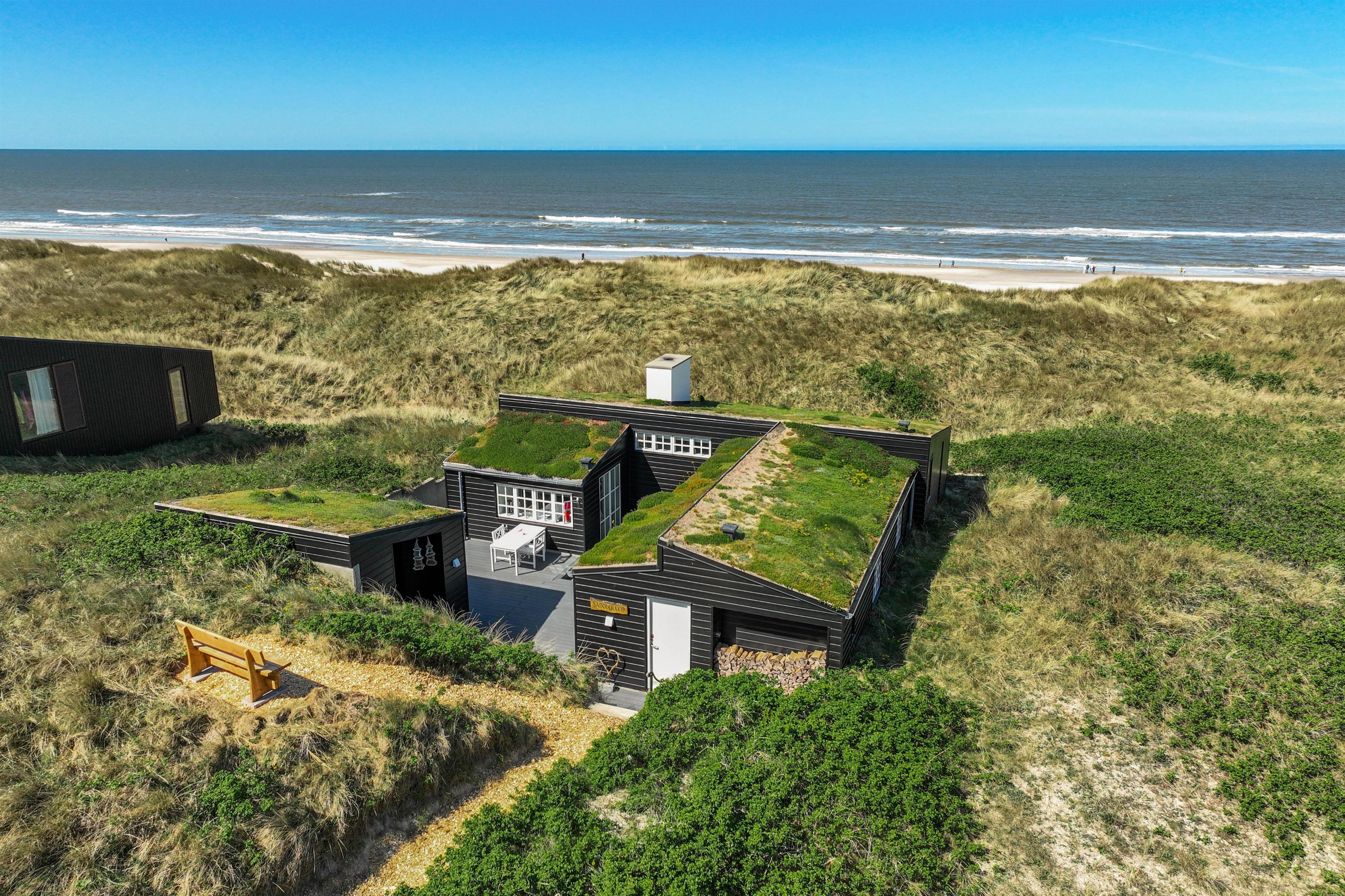 Rundt omkring dette skønne sommerhus findes der adskillige steder på terrassen, hvor I kan nyde en afslappende stund med en bog eller en kop kaffe, mens I læner jer tilbage i enten de komfortable havestole eller på solvognene og nyder den friske luft samt lyden af de brusende bølger. Det smukke Vesterhav kan – enkelte steder - også iagttages herfra.