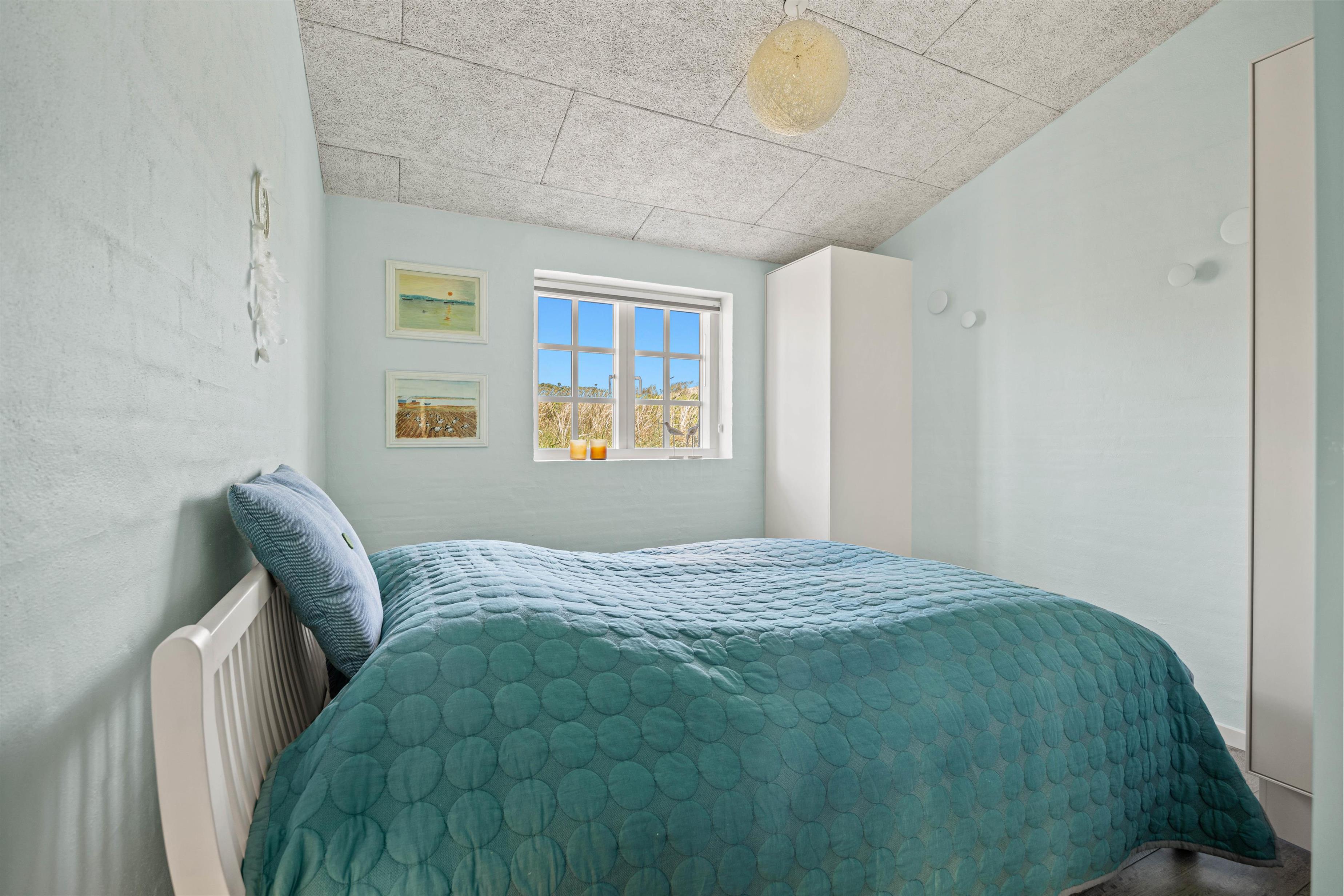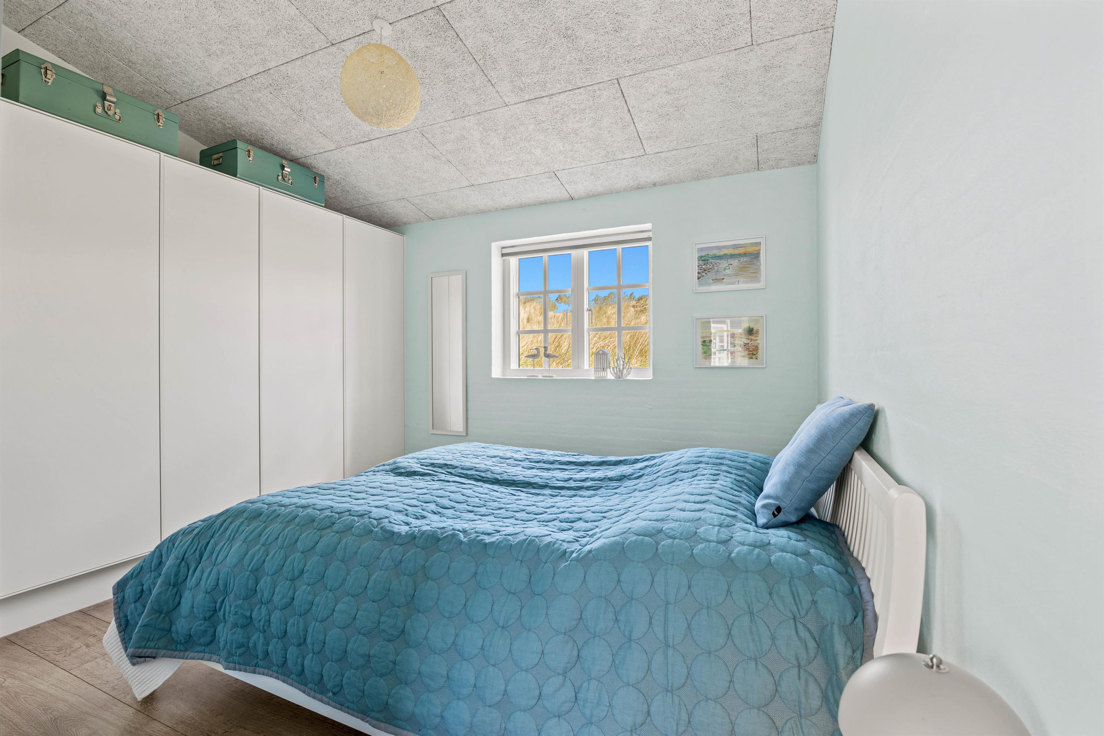 Begge soveværelser er rummelige, og udstyret med komfortable dobbeltsenge samt gulvvarme, der gør dem yderst behagelige at få en god nats søvn i efter en skøn dag ved stranden.