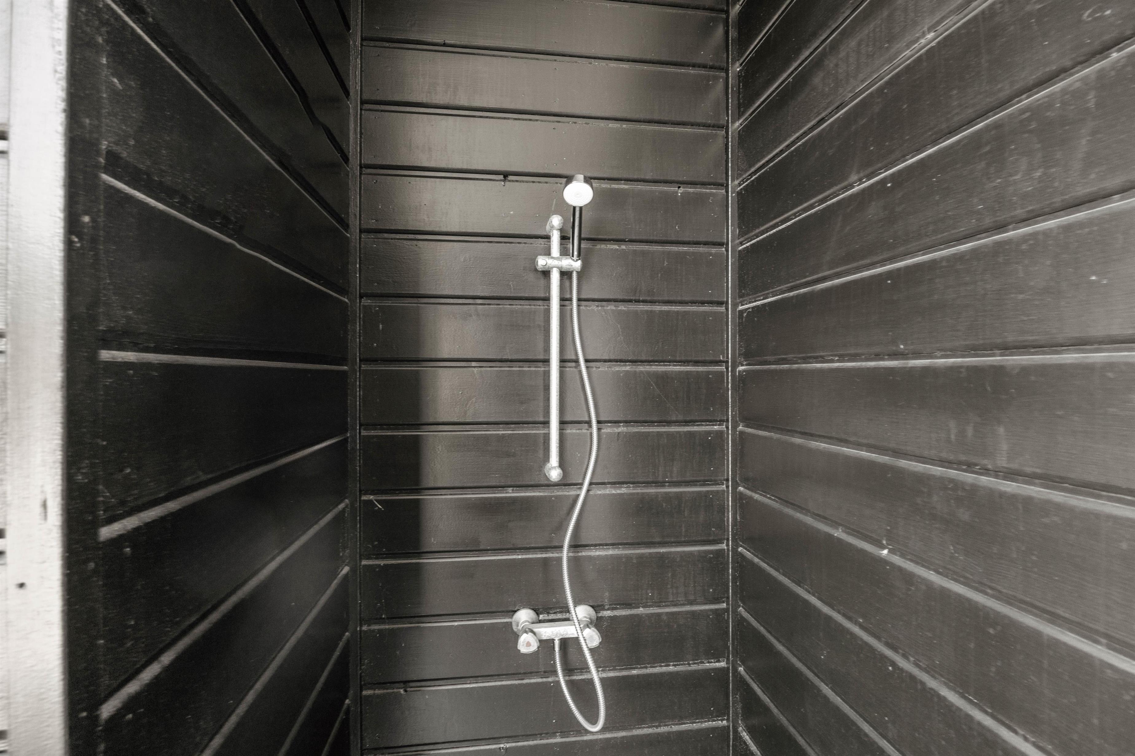 Efter en dukkert i Vesterhavet kan I nyde et opfriskende bad under udebruseren, før I slapper af på den overdækkede terrasse, hvor I kan grille og nyde jeres måltider i det fri.