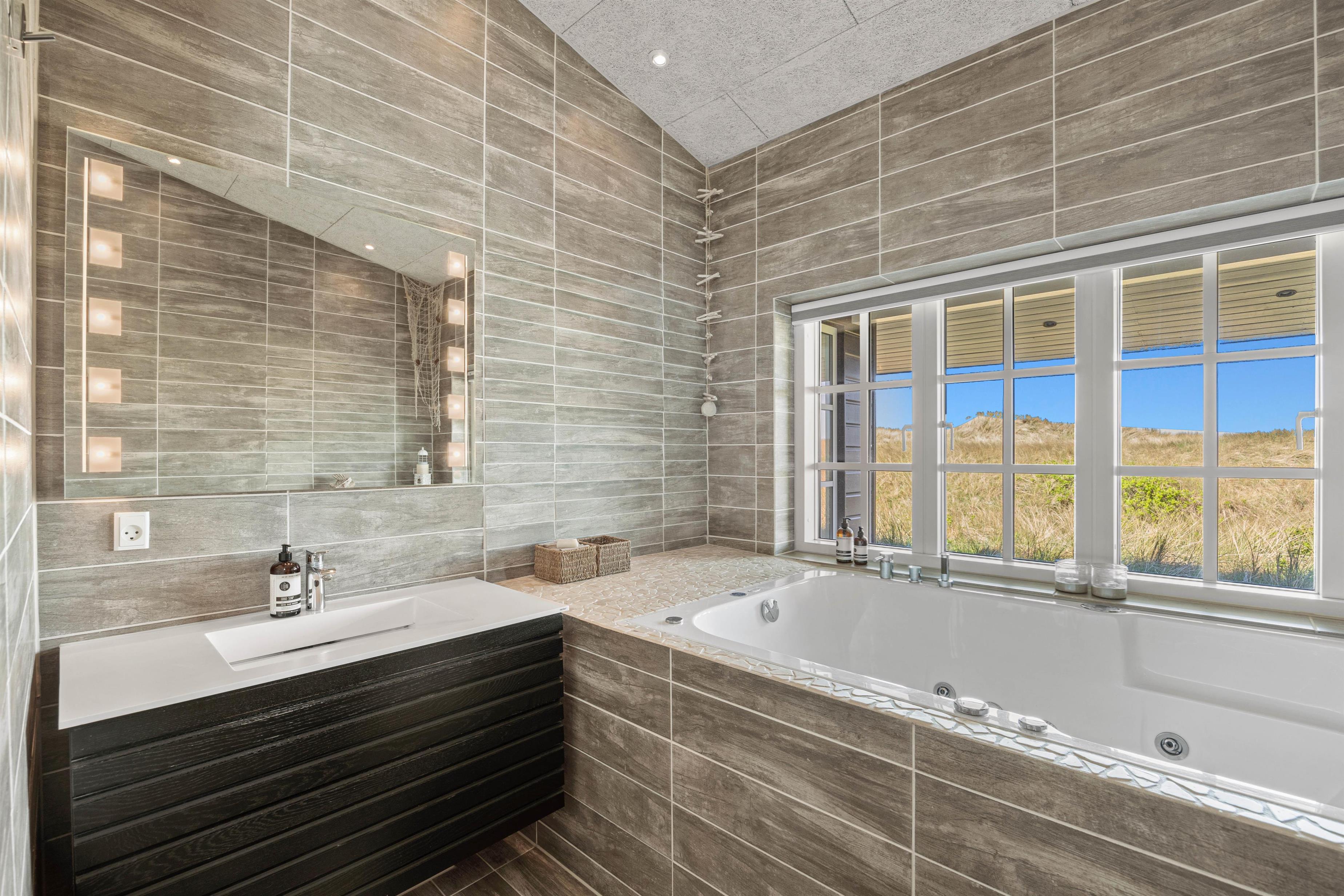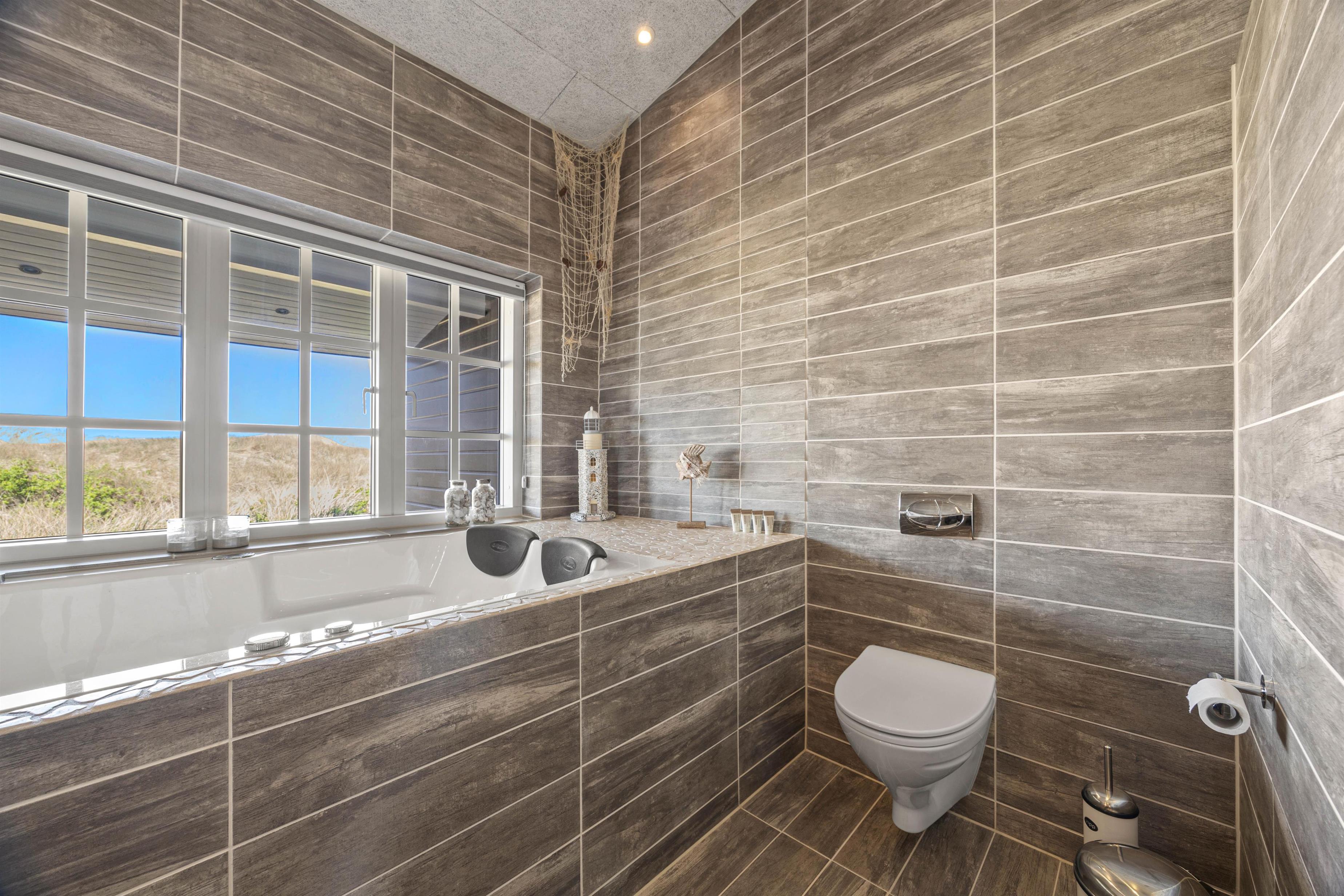Trænger I til lidt ekstra forkælelse og velvære, kan I blot tænde for spaen i det rummelige badeværelse: her vil I kunne nyde spaens varme, og få skulderne helt ned, mens I kigger ud på den omkringliggende natur.