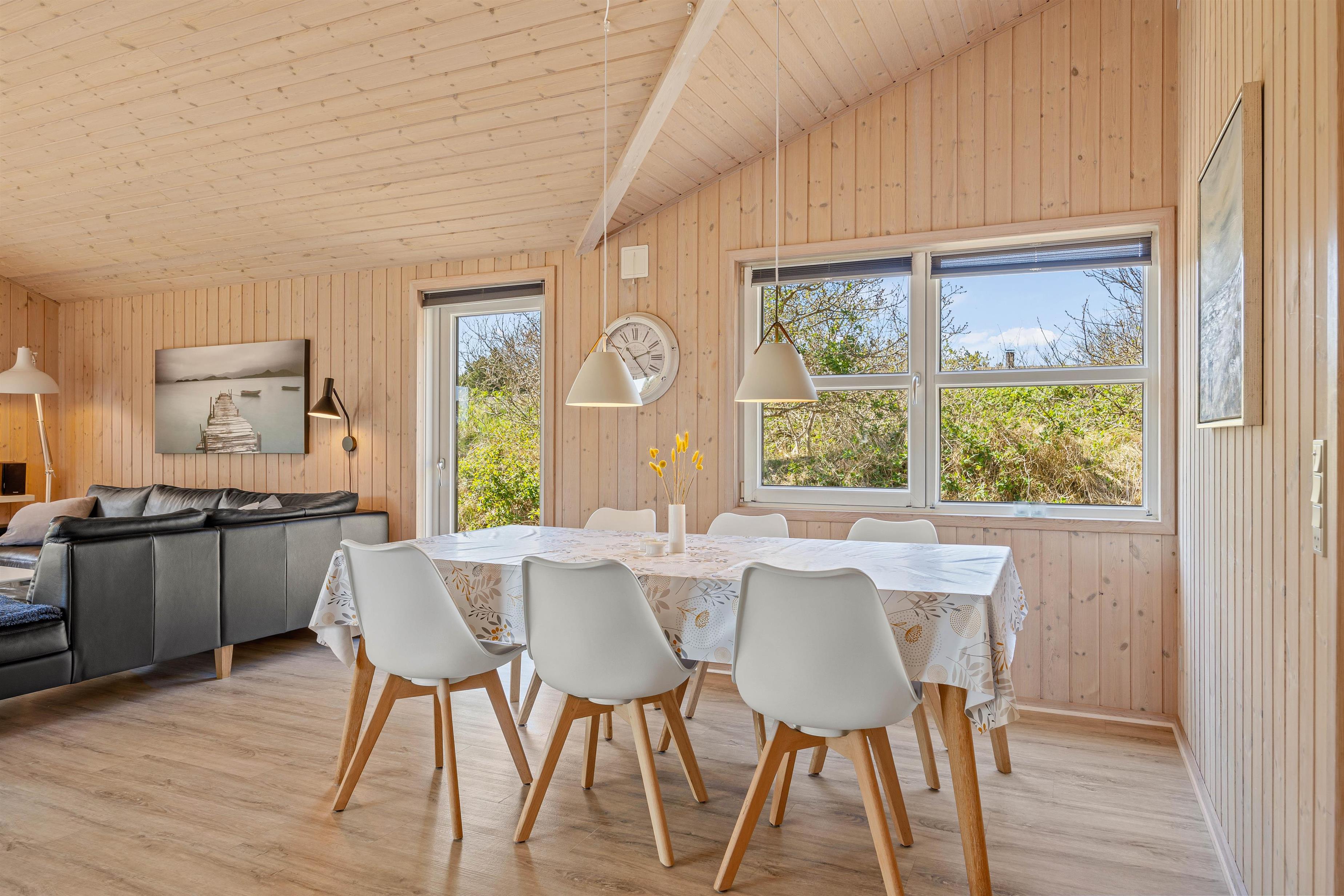 Velkommen indenfor i dette dejlige sommerhus. Sommerhuset er 101 m2 og er hyggeligt indrettet. Her er en god loftshøjde, og de store vinduer giver et godt lysindfald. Hjerterummet er det store alrum, hvor stue og køkkenafdelingen smelter sammen. Her inviteres I indenfor til afslappende stunder på sofaen, brætspilsaftner eller læs en god bog foran den knitrende brændeovn. Til fjernsynet hører et Chromecast, så I har mulighed for at streame film og serier, når det passer jer.