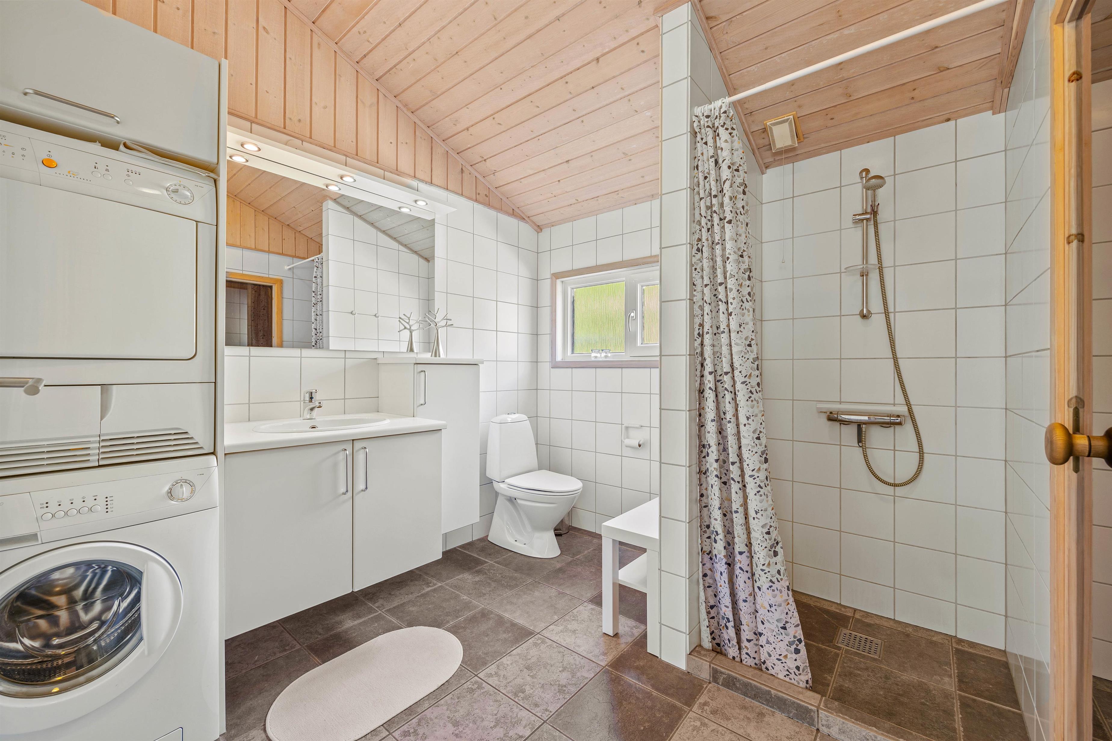Efter en lang gåtur på de køligere dage, findes der intet bedre end den varme sauna. Tænd op og glem alt om den travle hverdag. Saunaen kan tilgås fra det ene af sommerhusets 2 badeværelser. Begge er med gulvvarme og på det ene finder I også vaskemaskine samt tørretumbler – særlig praktisk ved længere ophold eller for jer med småbørn.
