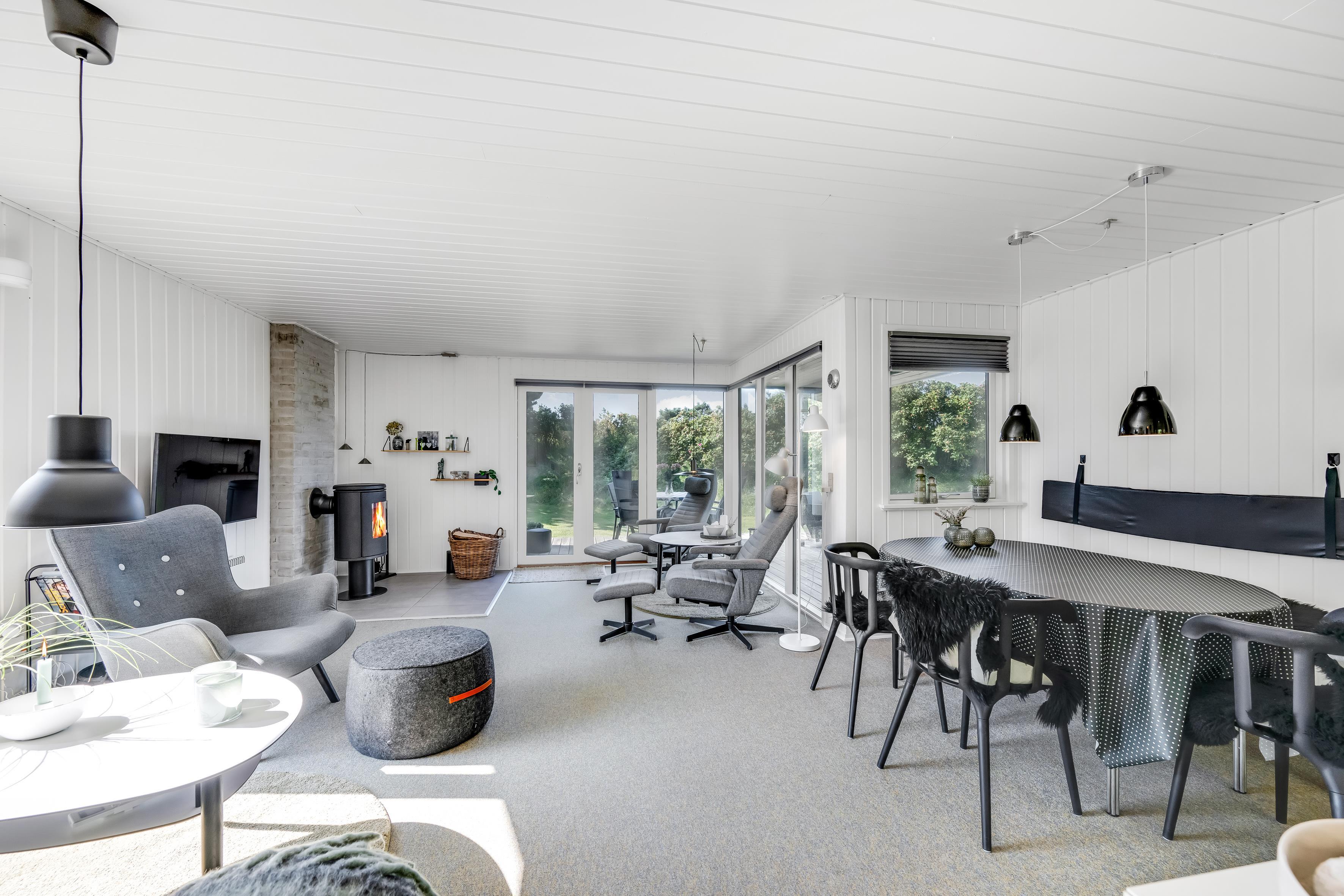 Om aftenen kan I nyde den hyggelige varme fra brændeovnen, som skaber en magisk stemning på køligere aftener. Med varmepumpens smarte teknologi kan I nemt justere temperaturen i sommerhuset, mens gulvvarmen på badeværelset tilføjer ekstra komfort.