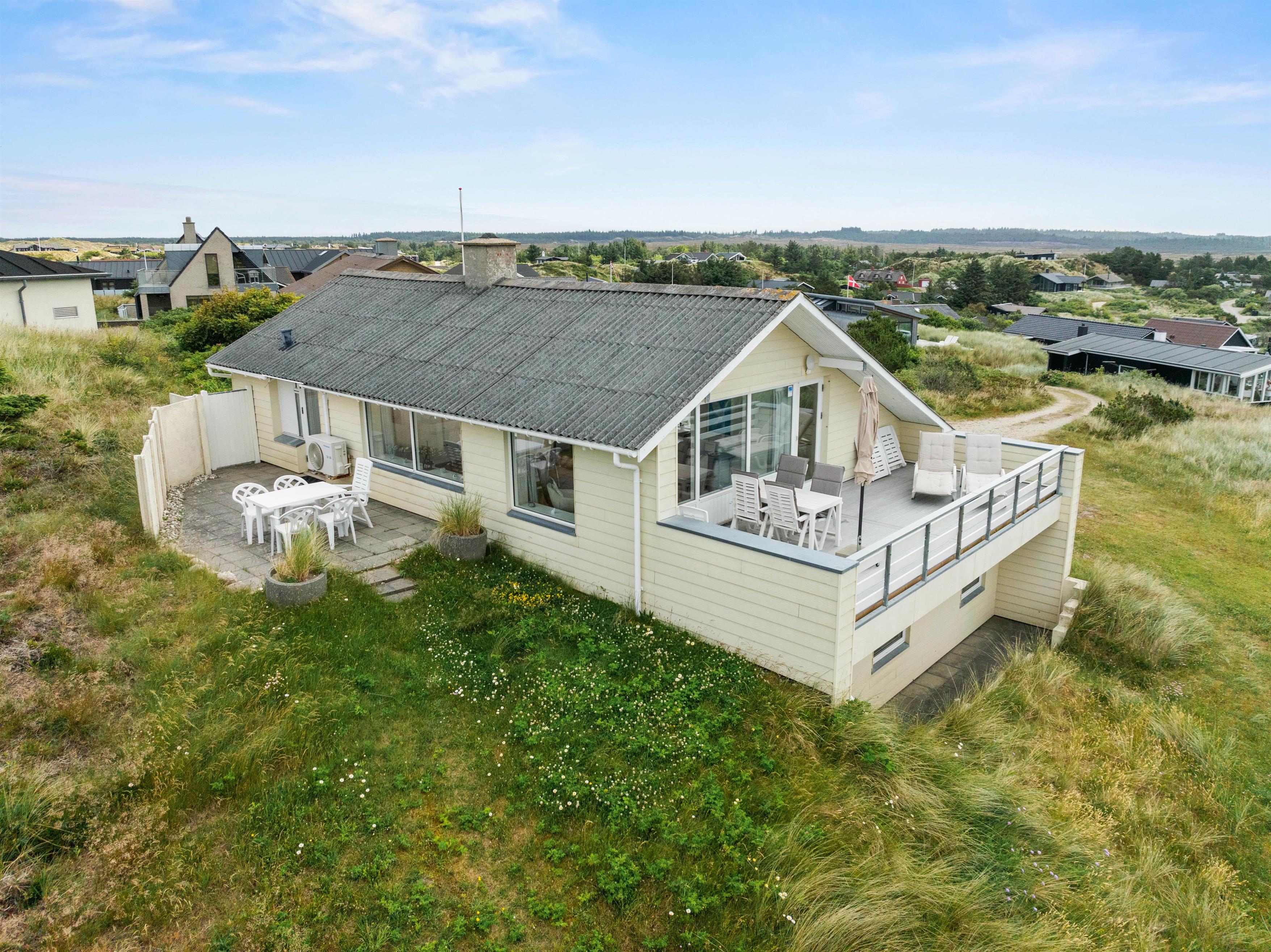 Elsker du det særlige lys ved Vesterhavet og drømmer du om en fantastisk udsigt? Så er dette charmerende sommerhus på Falkevej 15 perfekt til dig. Her kan du bo på toppen af en klit, -med kun 300 meter til stranden og samtidigt tæt på indkøbsmulighederne i den charmerende ferieby Henne. Feriehuset er delvist renoveret i 2020, men sommerhusets oprindelige 50ér-charme er skånsomt bibeholdt. Ved sommerhuset er der desuden ladestik til elbil og på husets 2. plan finder du praktiske detaljer som opvaskemaskine, vaskemaskine og tørretumbler.