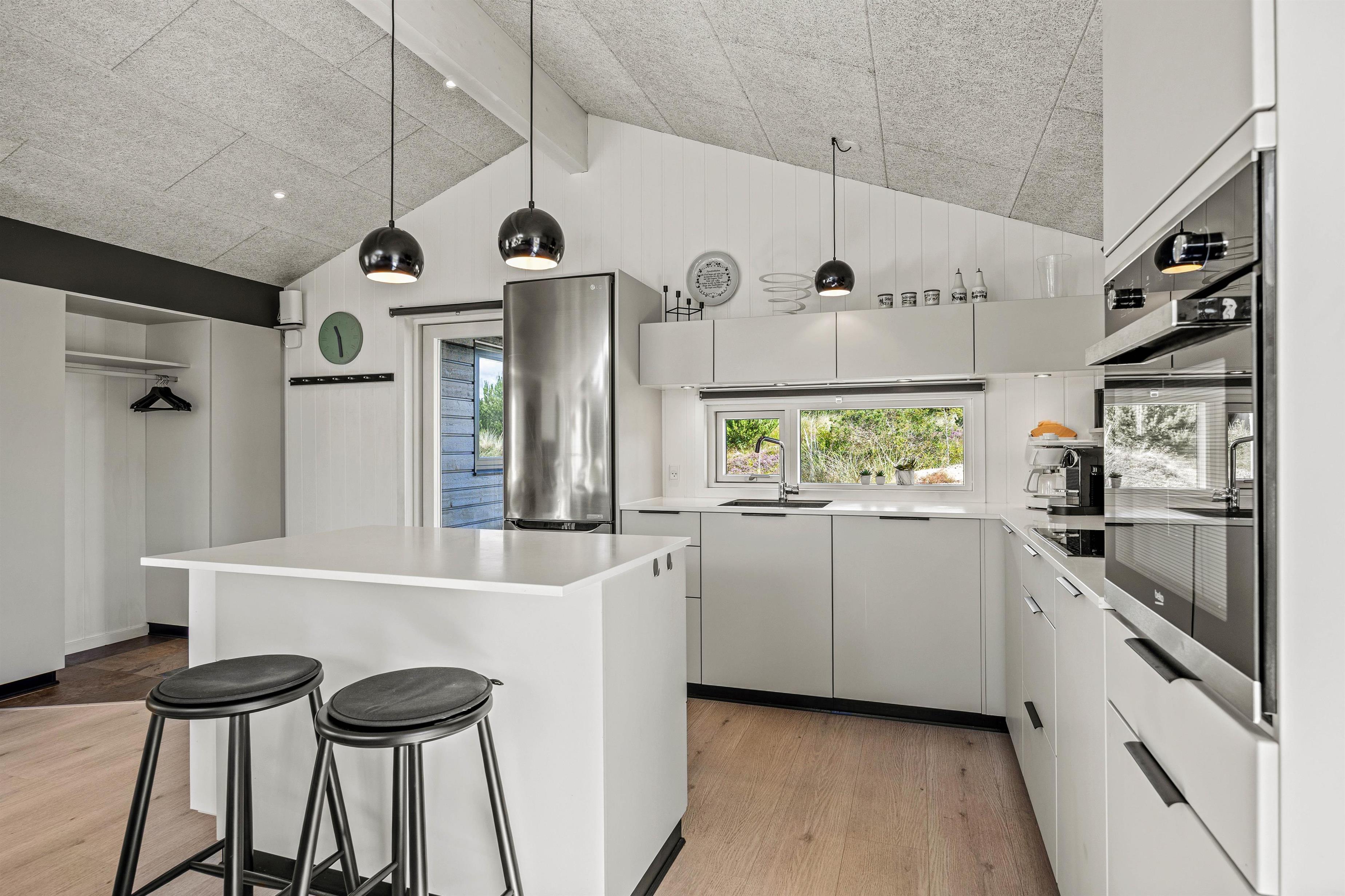 På Tjursvej 18 er der simpelthen hyggegaranti – for familien på op til 6 personer med to hunde eller bare til parret, der gerne vil bo skønt. Det lækre fællesrum med det moderne og godt indrettede køkken, det lange spisebord og den bekvemme store sofa er optimalt indrettet til ferien med familien eller vennepar, hvor også den hyggelige varme samt et gyldent skær fra brændeovnen kan brede sig. I åben forbindelse med køkken-alrummet kan der dystes med spil i aktivitetsrummet – her er wii, dart og bordfodbold.