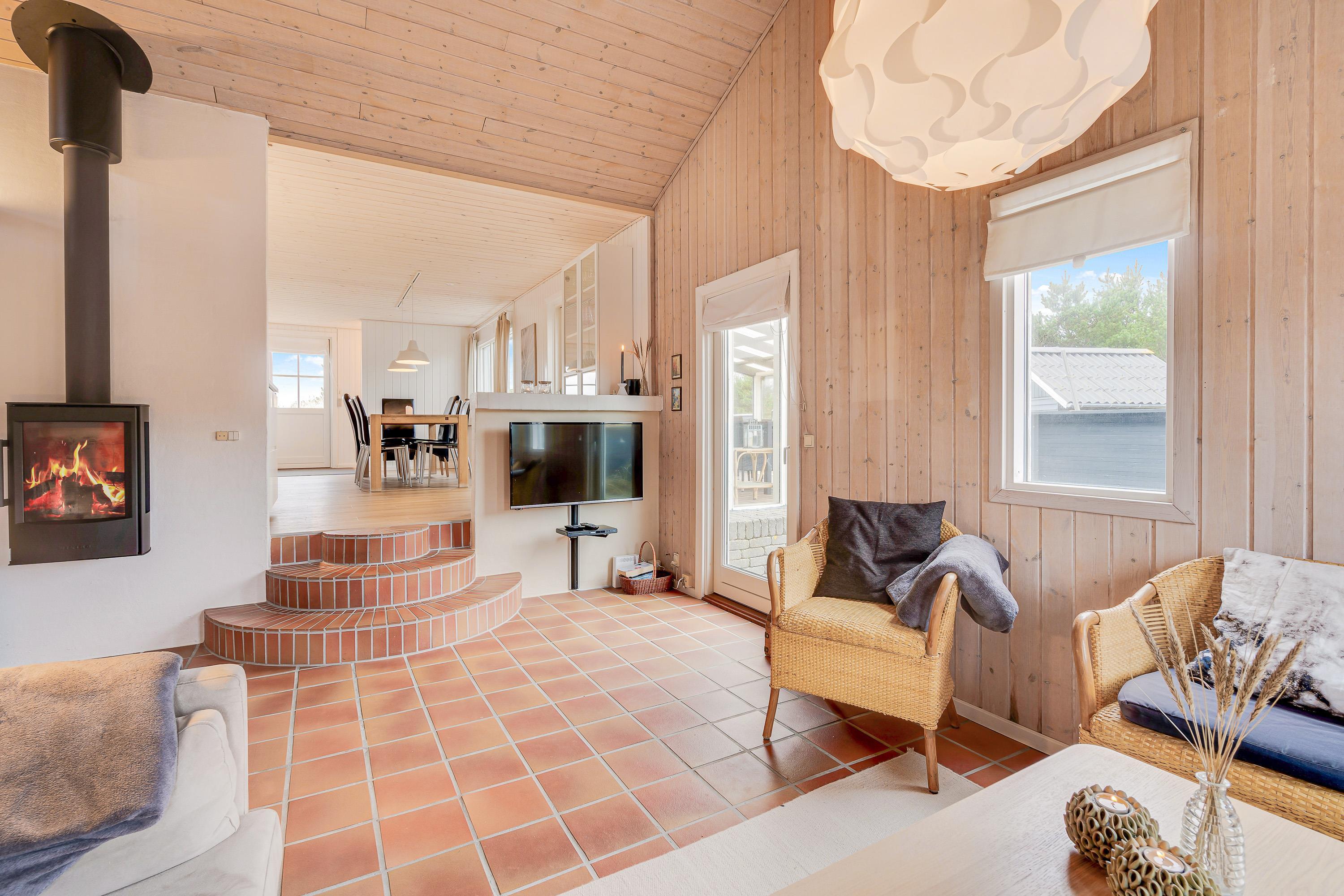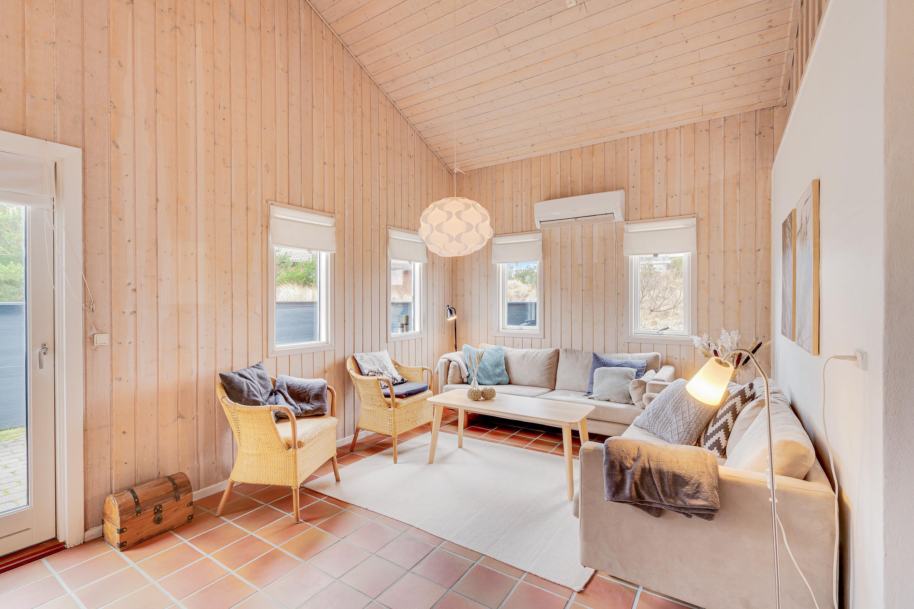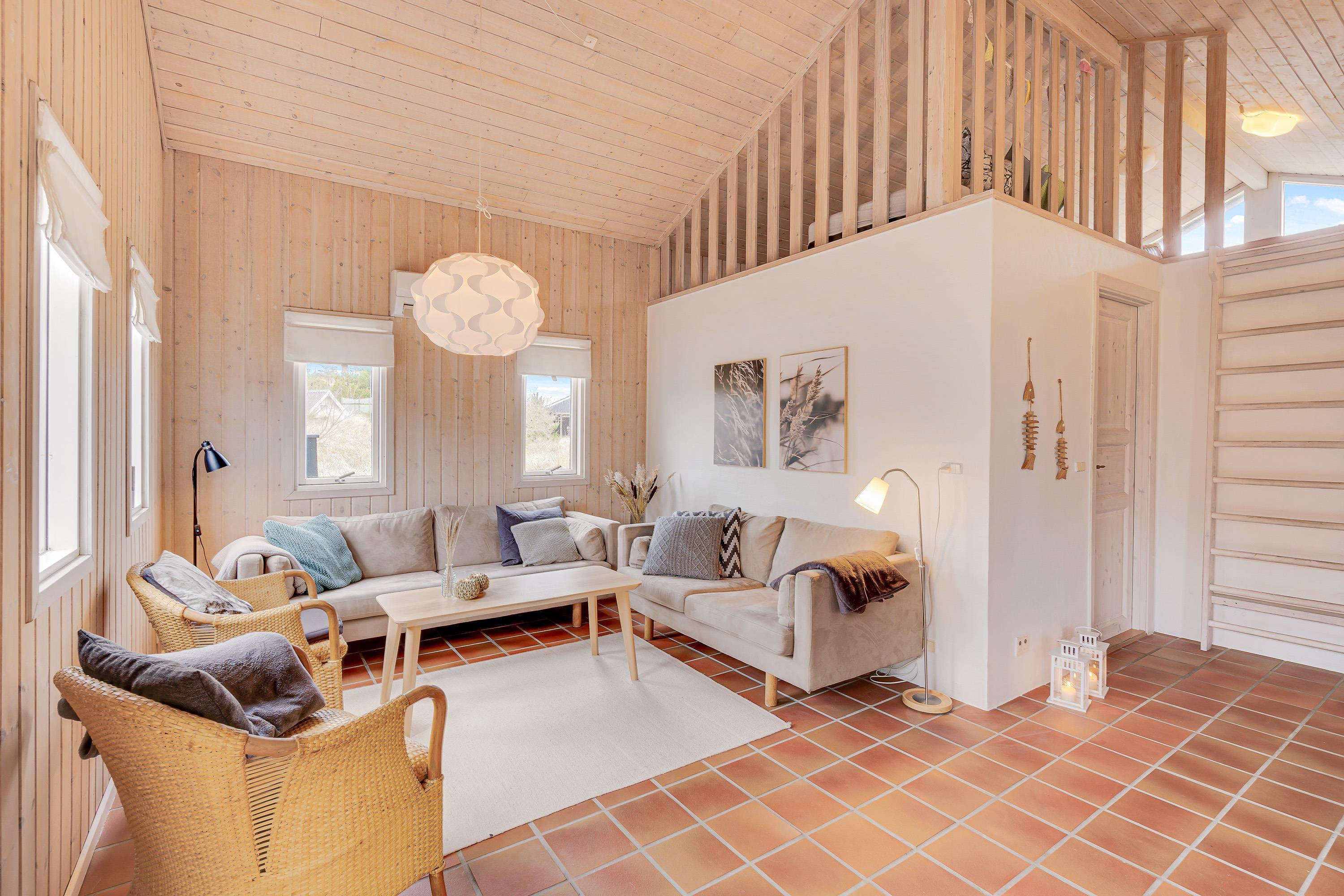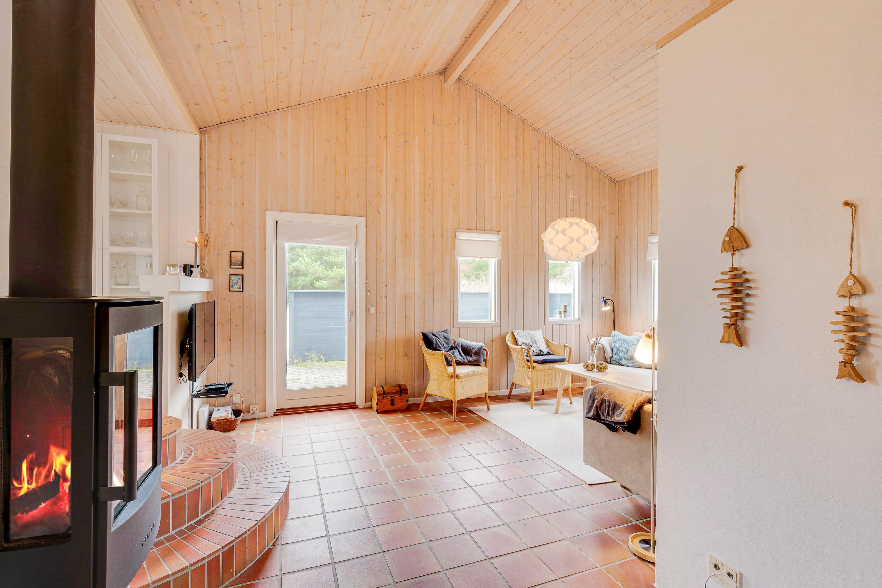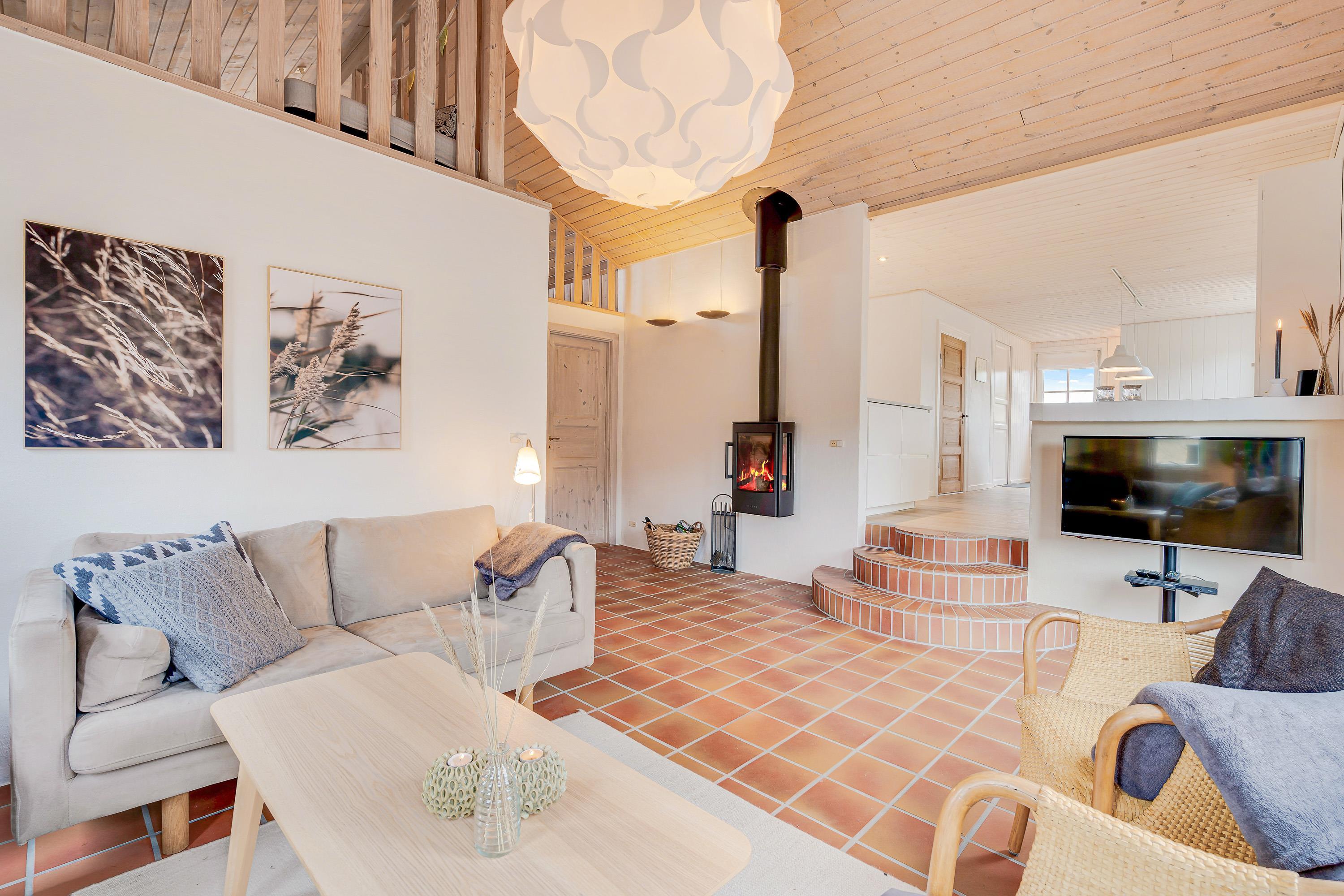 Den hyggelige stue er den perfekte afslapningsoase, især på de kolde feriedage, hvor en god bog og en friskbrygget kop kaffe på sofaen kalder, mens vinden suser uden for vinduerne og varmen fra brændeovnen spreder sig.