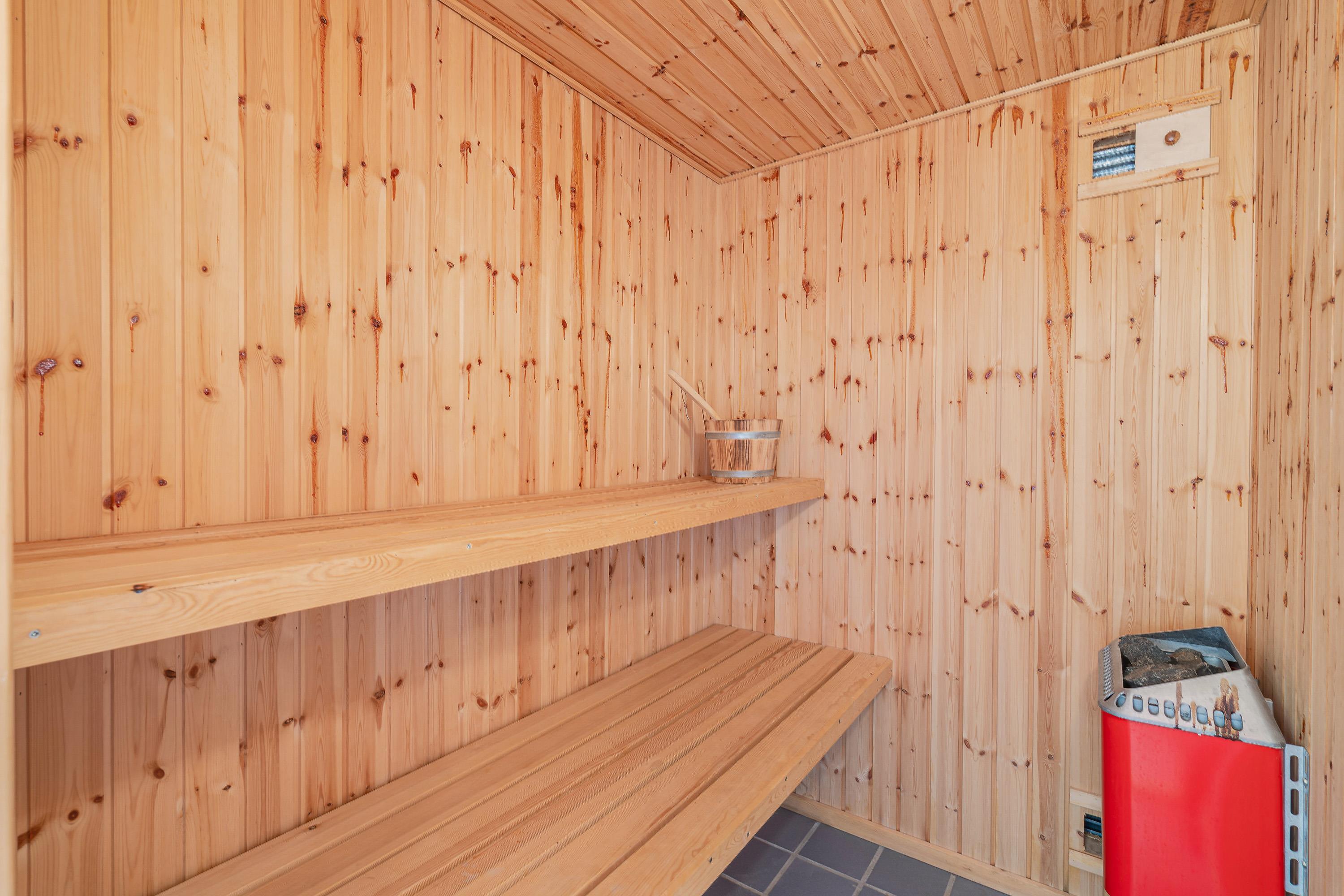 Har I brug for lidt ekstra wellness, gemmer badeværelset på en ekstra overraskelse. Herfra har I nemlig adgang til en dejlig sauna, som med garanti vil blive brugt flittigt i løbet af ferien. I skal ikke bekymre jer om kolde fødder, da der er gulvvarme på badeværelset.