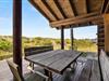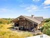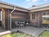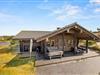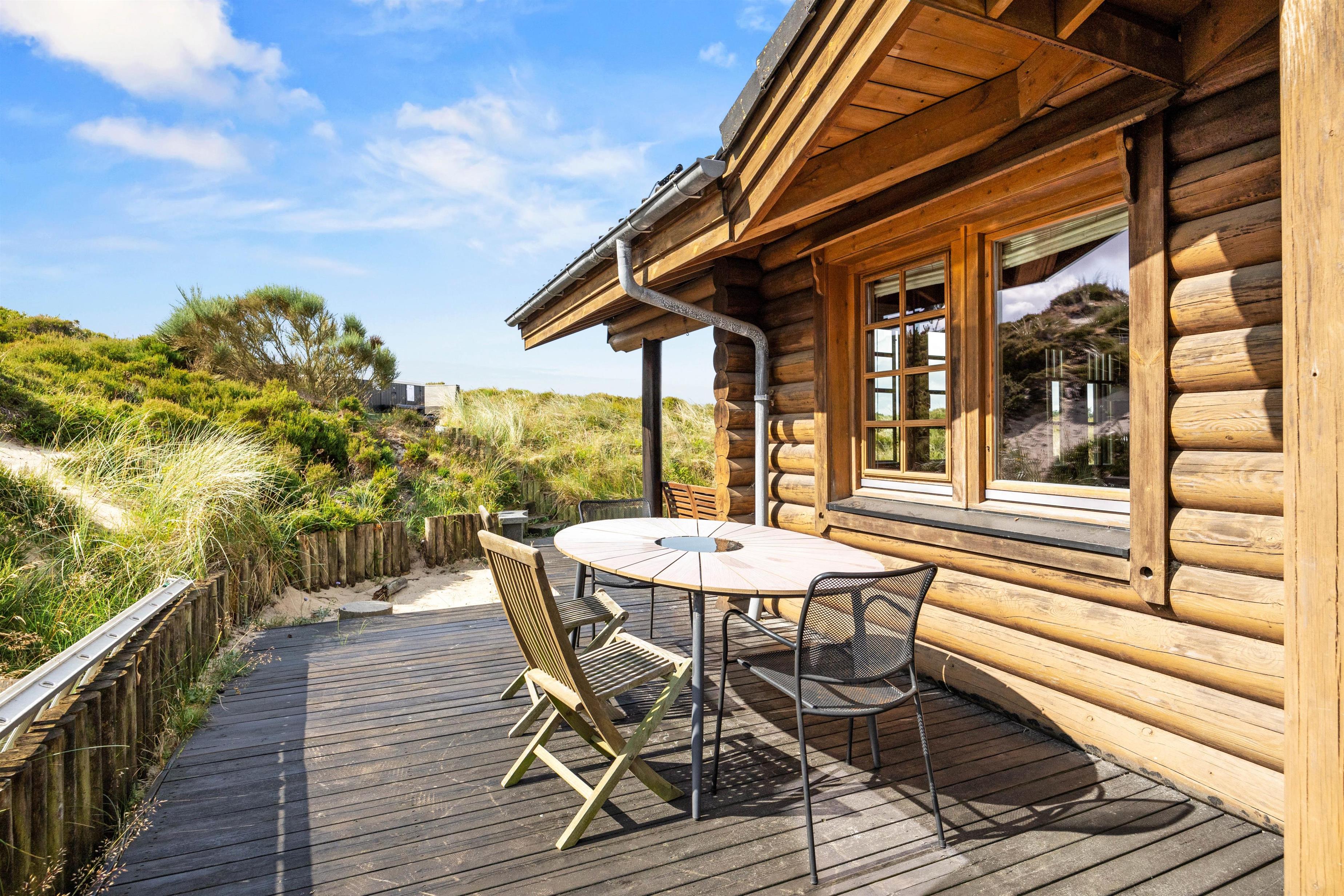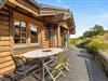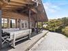 Fra stuen har I adgang til den fine træterrasse, der omkredser feriehuset i midten. På den måde kan I nemt rykke jer og finde et behageligt sted, hvor I kan nyde vejret. Her er plads til afslapning med solbadning, og børnene kan udforske den store naturgrund. Til de yngste finder I desuden også gynger og en sandkasse. Mens der leges, kan der tændes op i grillen. Tilbered en ægte sommermenu og dæk op under terrassens overdækning, hvor I kan nyde maden og den friske luft.