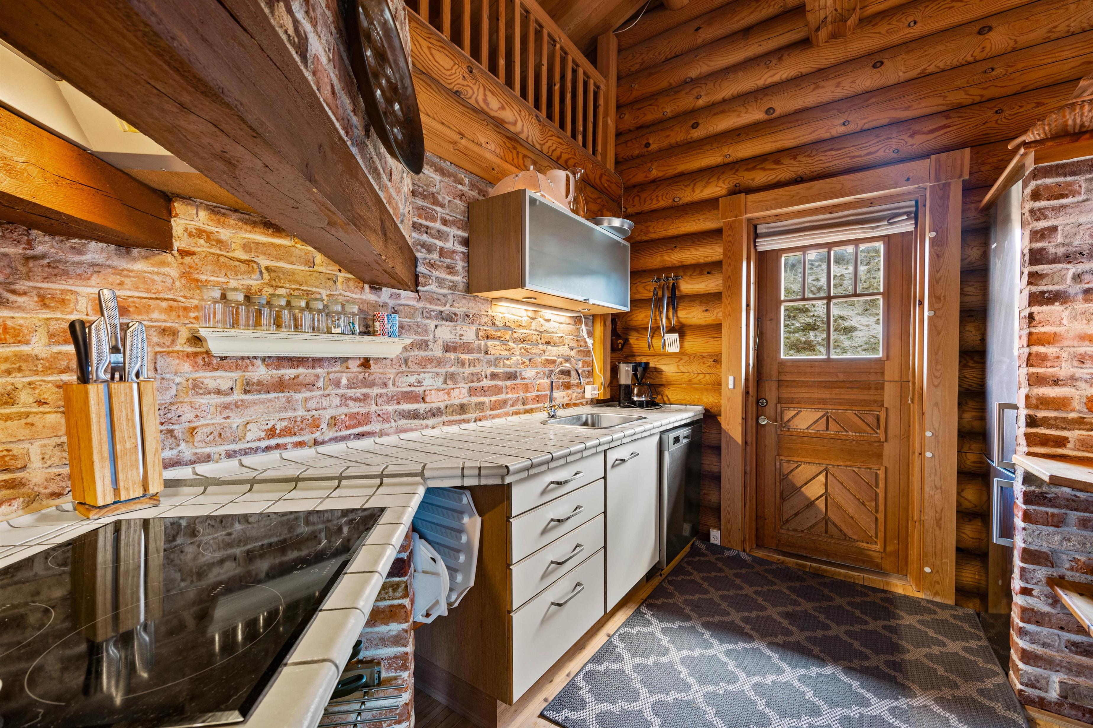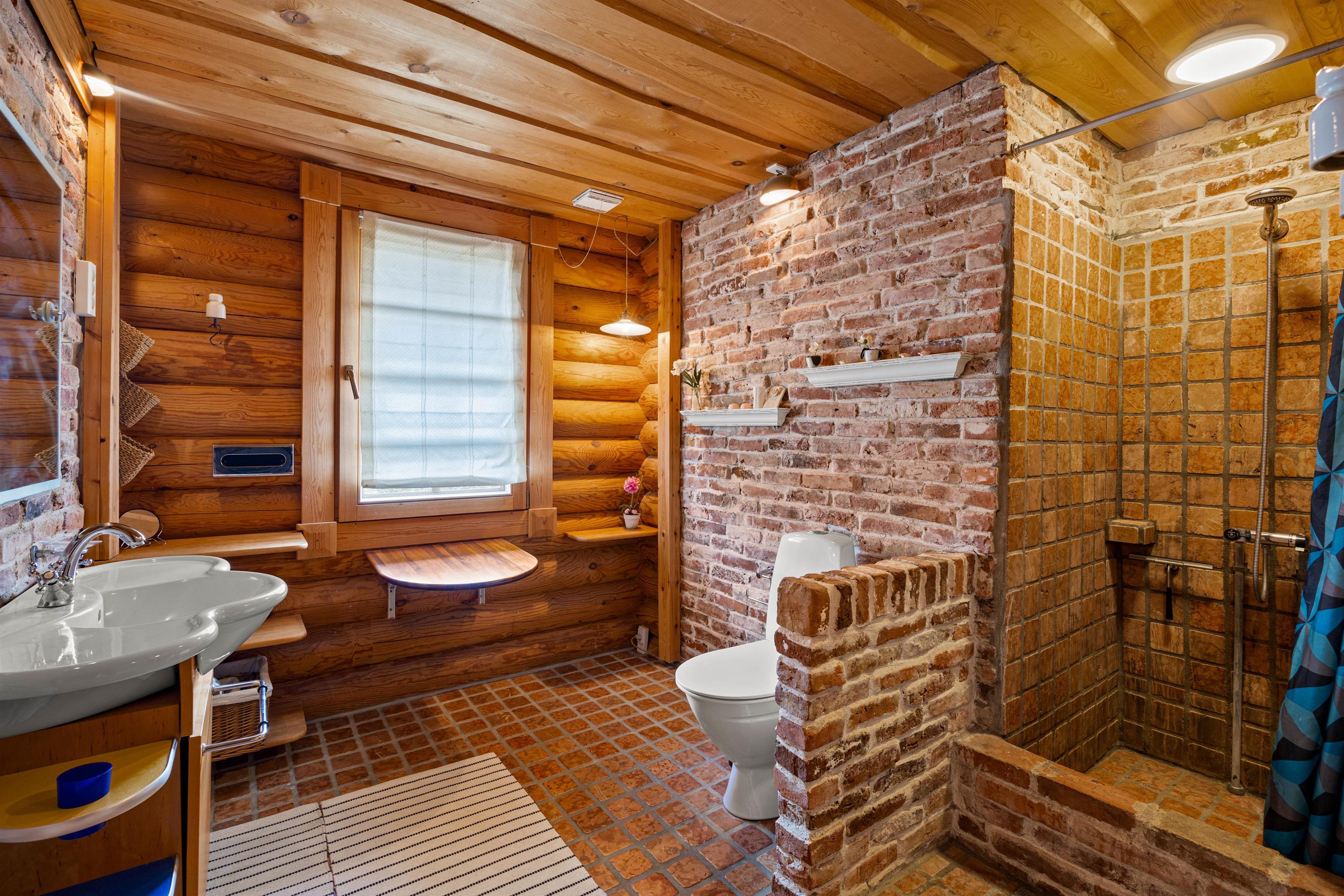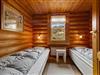 Når timerne bliver sene, kan I fordele jer på de 3 soveværelser. På det ene er der en køjeseng, hvilket helt sikkert bliver et hit hos familiens mindste. På badeværelset er der installeret gulvvarme, så I ikke skal fryse tæerne. Praktisk gemmer bjælkehytten også på en vaskemaskine, så håndklæderne kan blive frisket op under ferien.