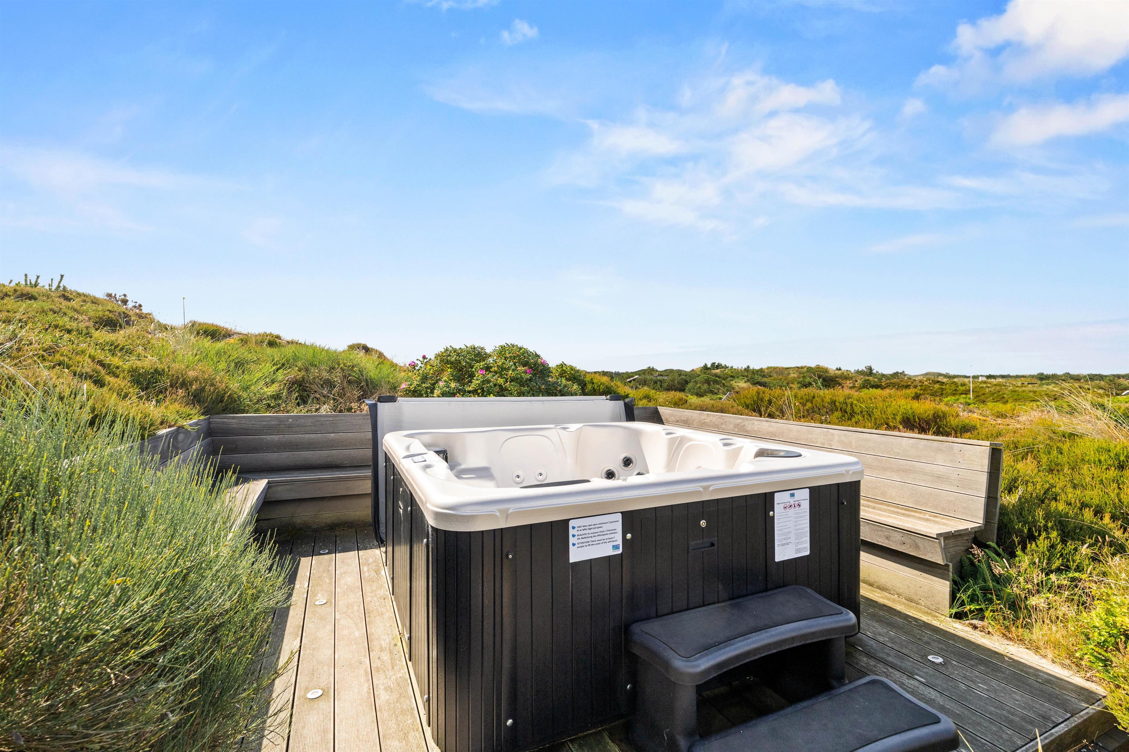 Følg trappen op til udebruseren* og udespaen. Her kan I komme helt ned i gear, mærke de varmer bobler mod huden og se udover klitterne. Nyd roen og afbrækket fra hverdagen netop her, mens solen maler himlen i de smukkeste farver. Udebruseren kan benyttes fra april til november.