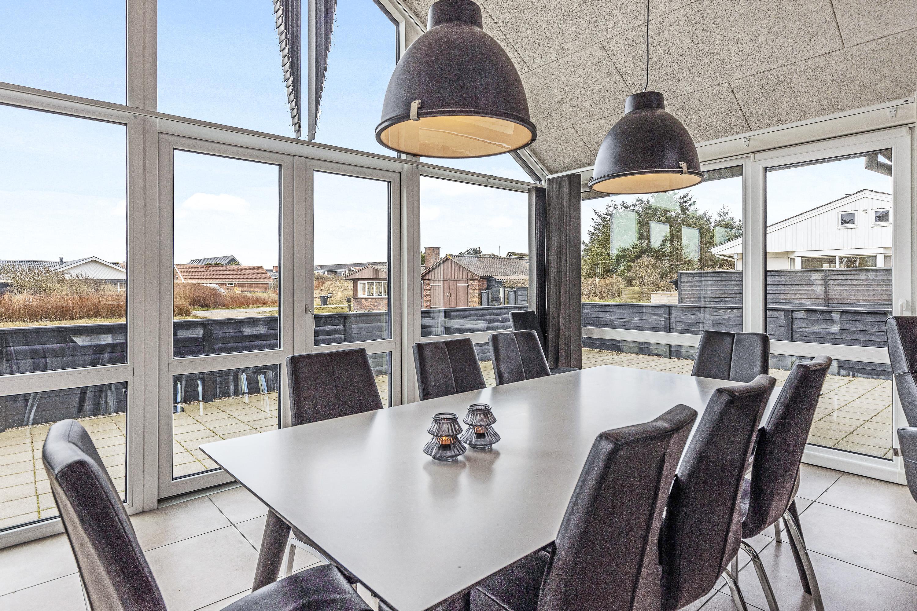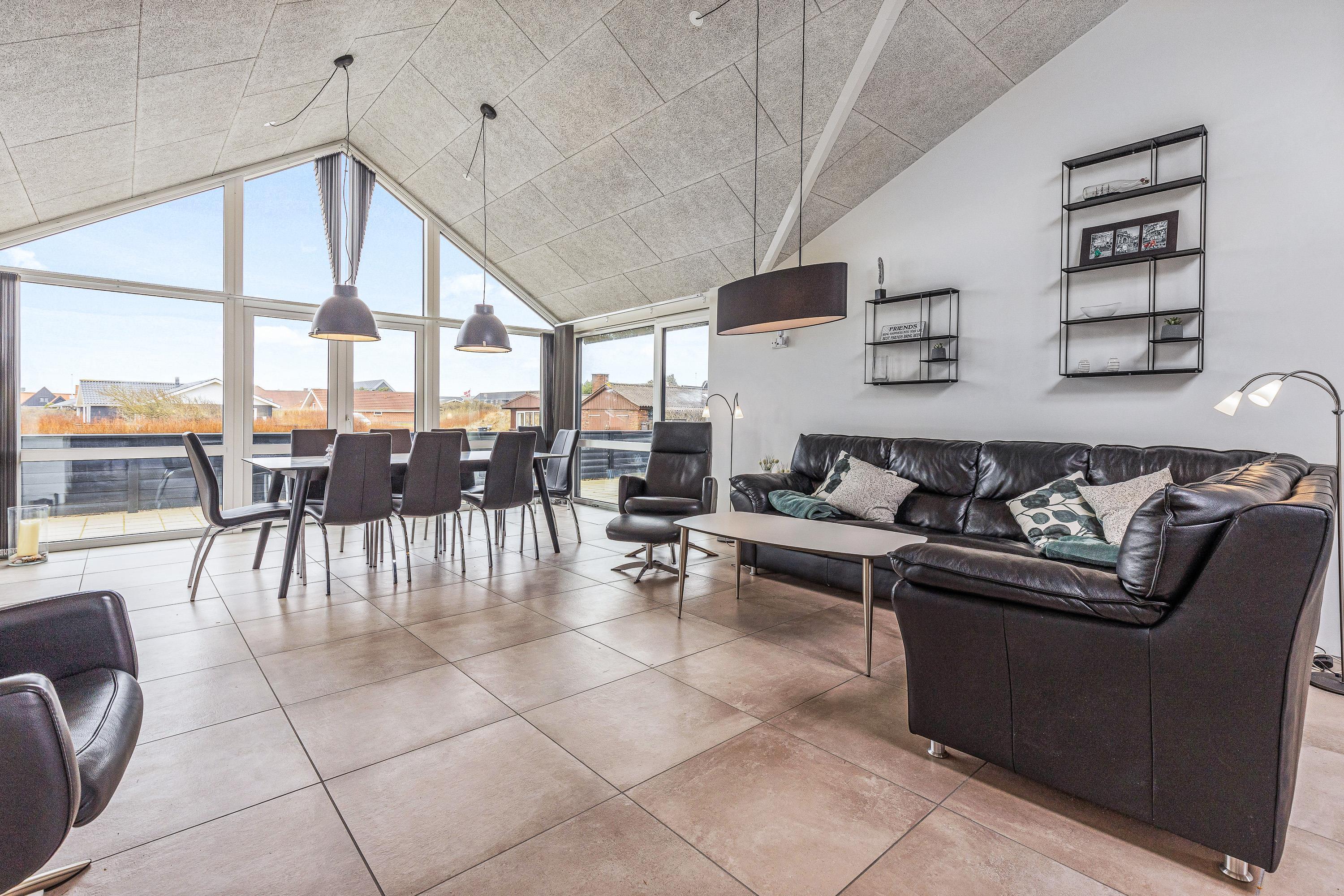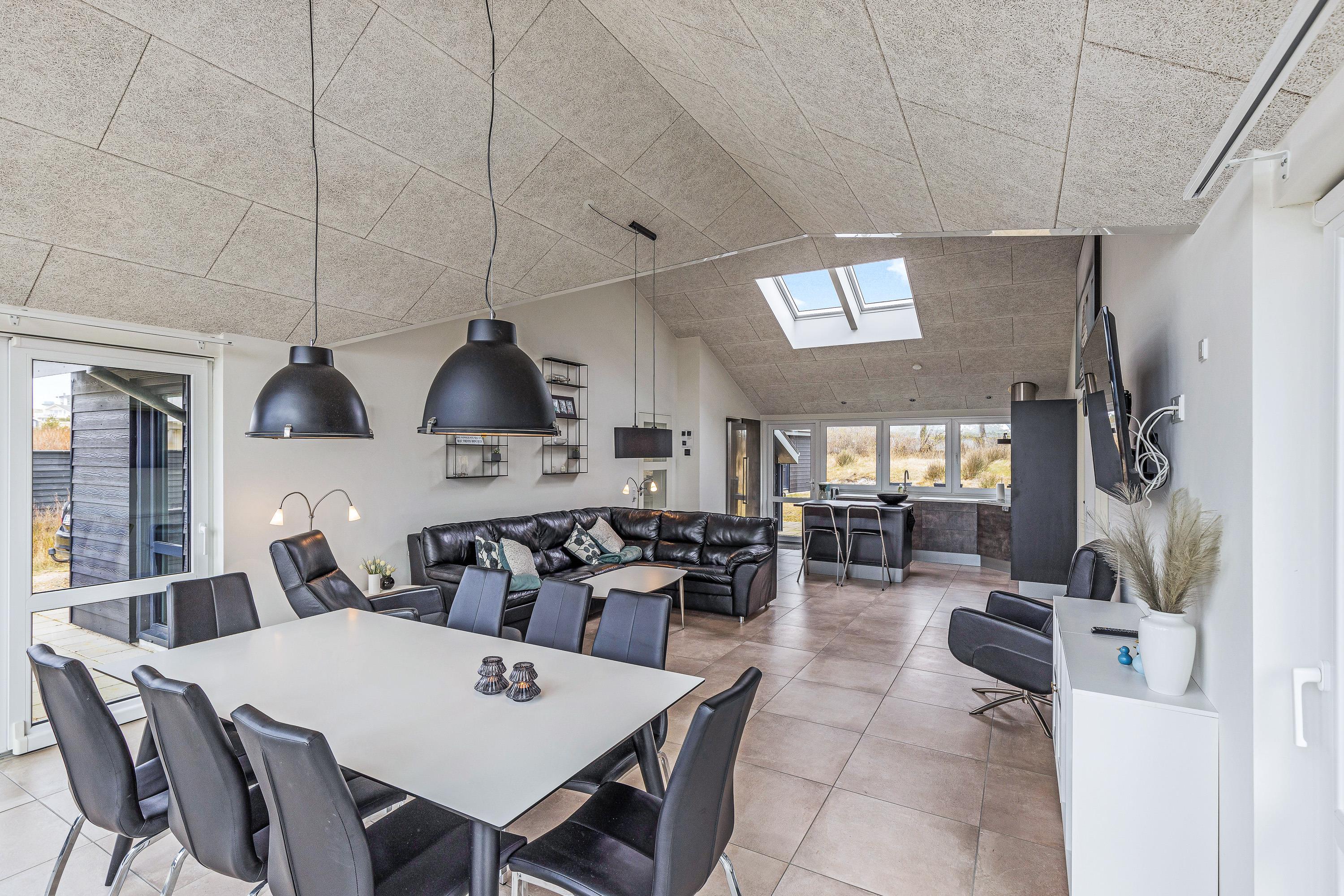 På Rylevej 16 bor I i skønne og bekvemme omgivelser. Sommerhuset er velindrettet med bekvemme møbler, mørke fliser og elementer, som er fint afstemt til de lyse vægge og store vinduespartier, der giver masser af lysindfald.