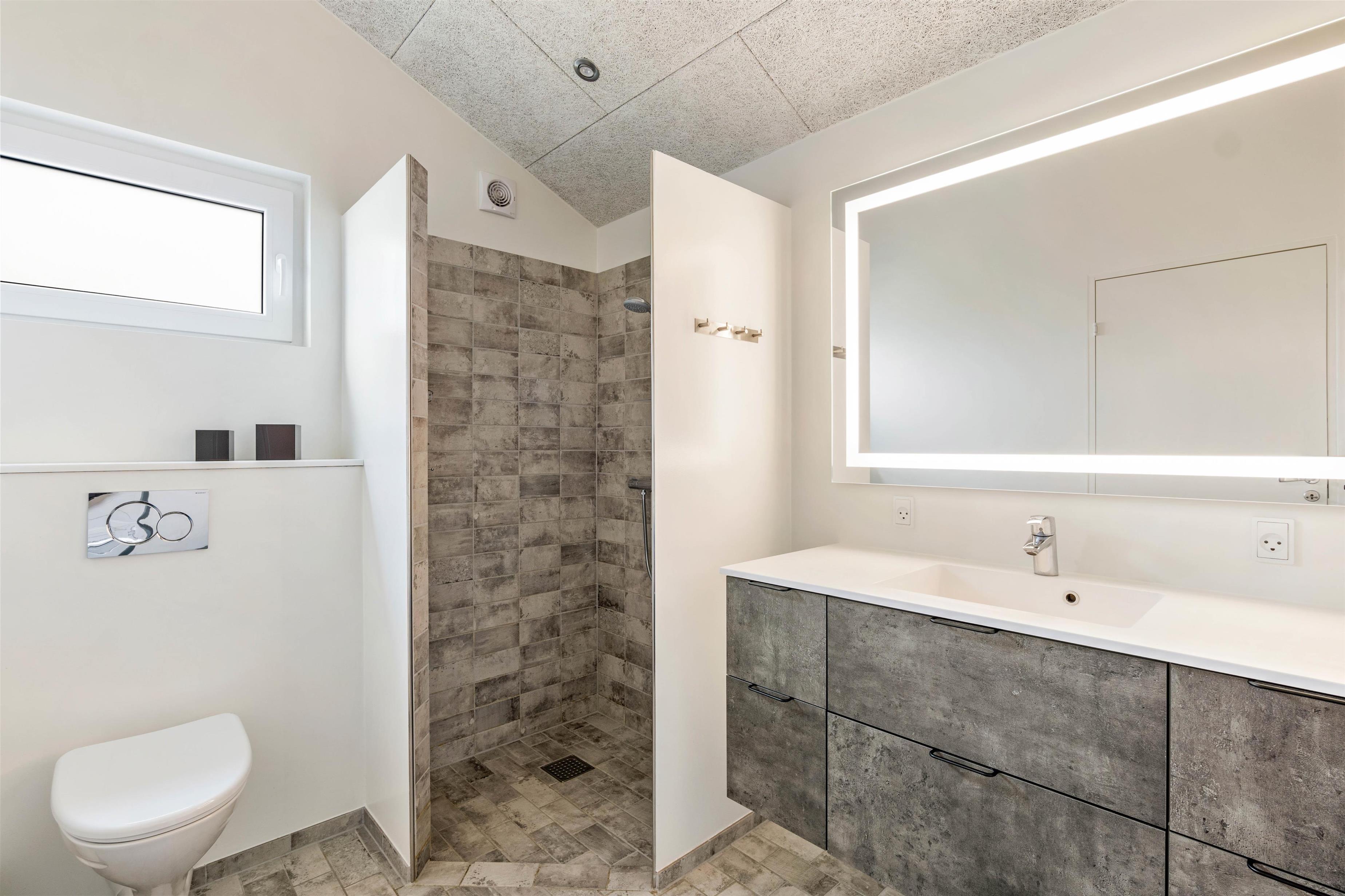 I det moderne køkken er opvaskemaskinen og ovnen sat i arbejdshøjde, og i badeværelset finder du både vaskemaskine og tørretumbler. Et jordvarmeanlæg sørger gennem gulvvarme under de flotte fliser for et skønt og miljøvenligt indeklima. Fryser i højskab i køkken. På grunden er også et skur.